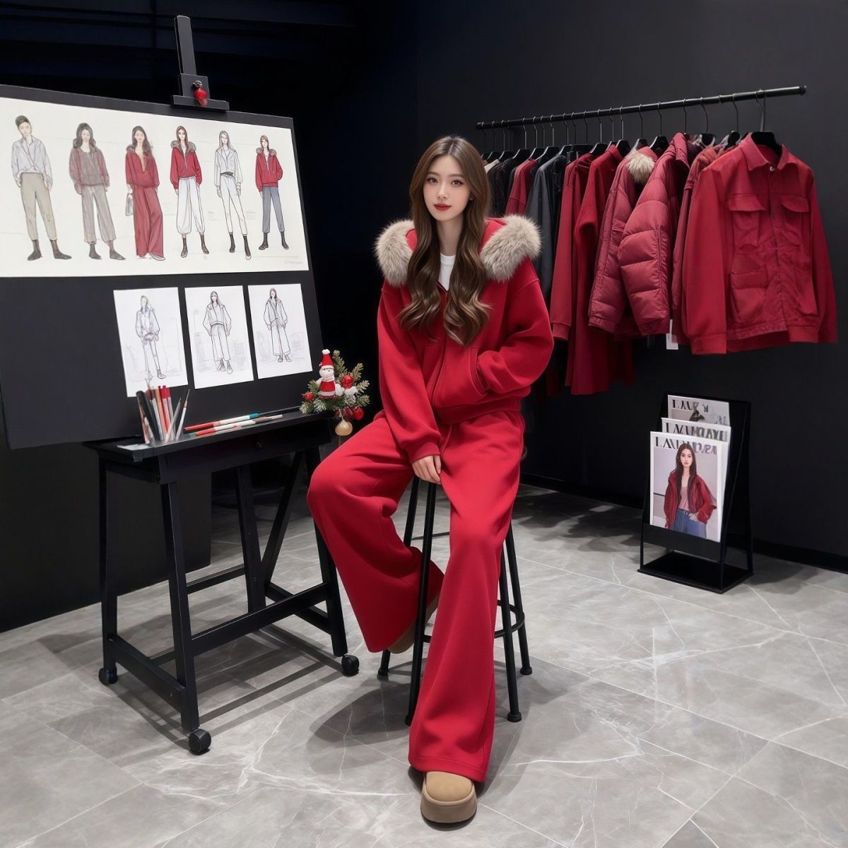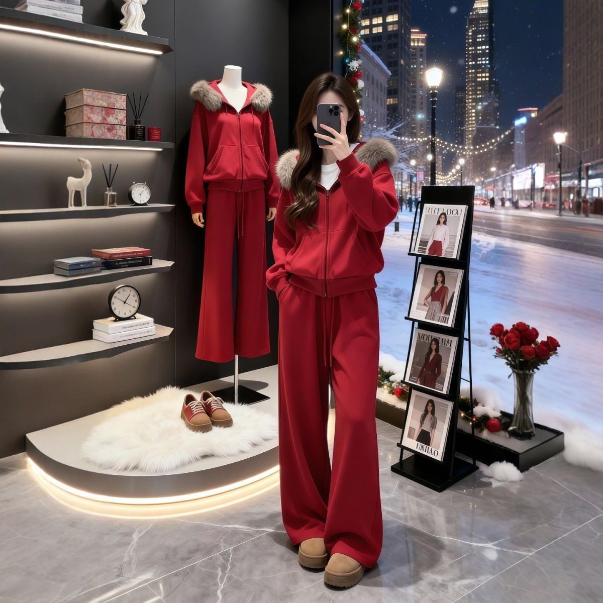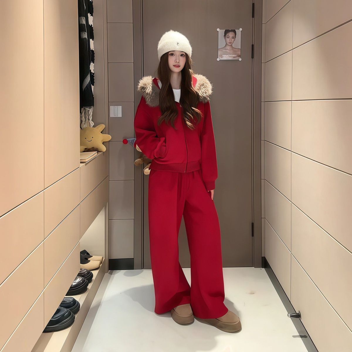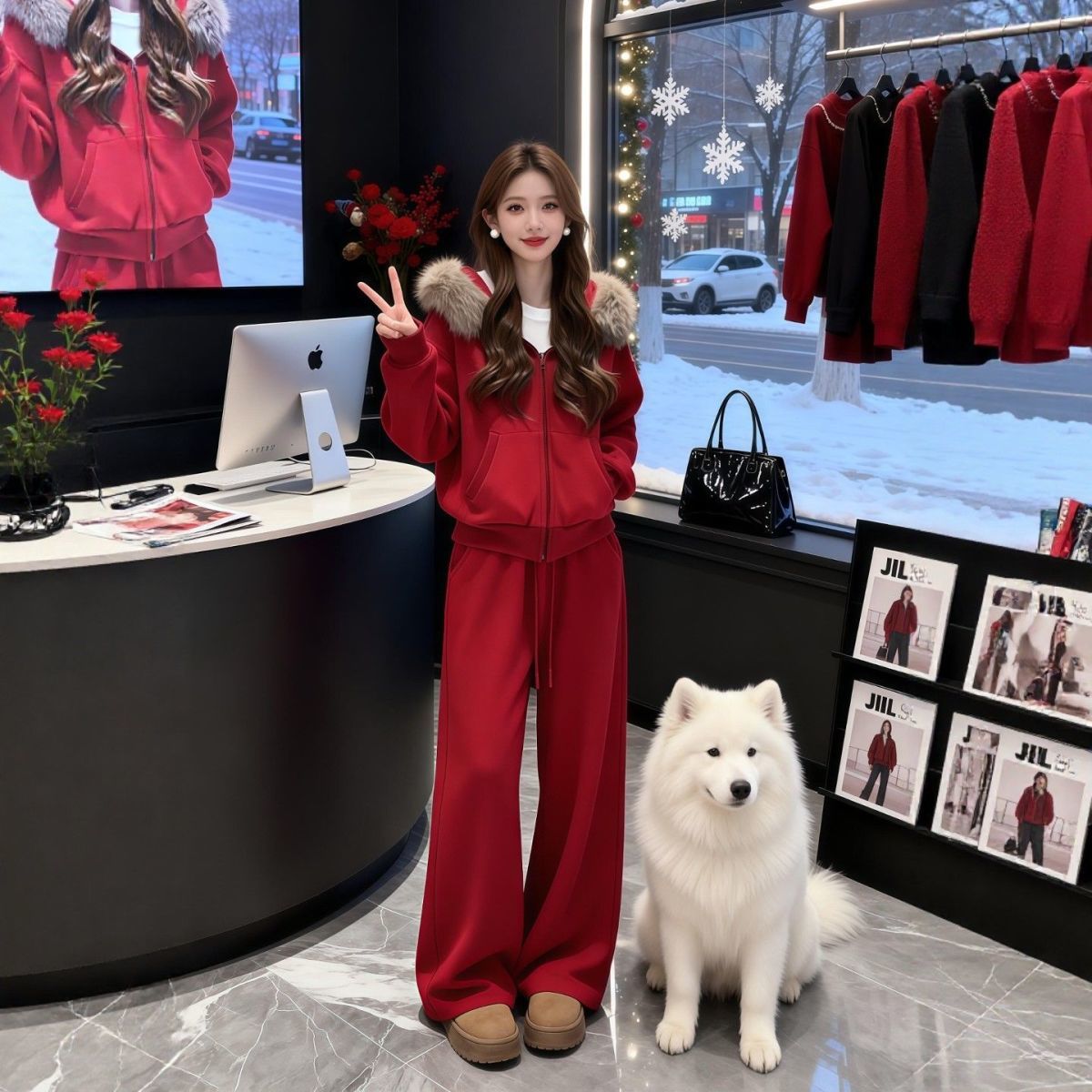 MY17440# 运动套装巨好看加绒连帽卫衣外套阔腿裤子一整套女裝貨源服裝批發