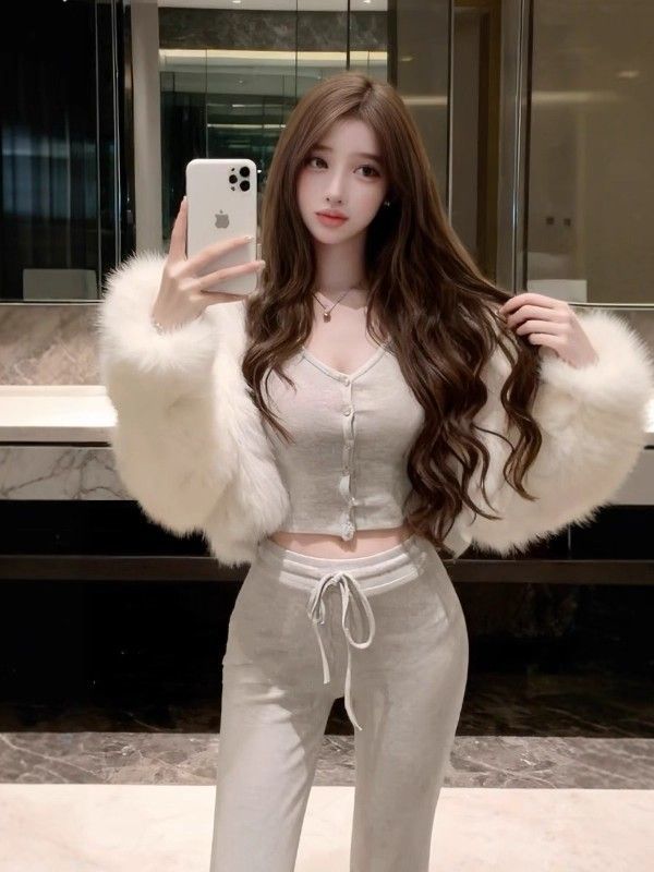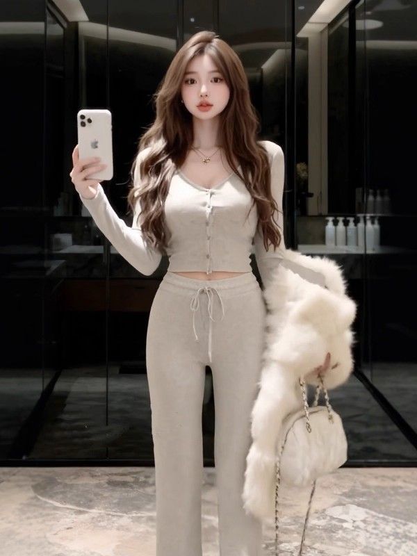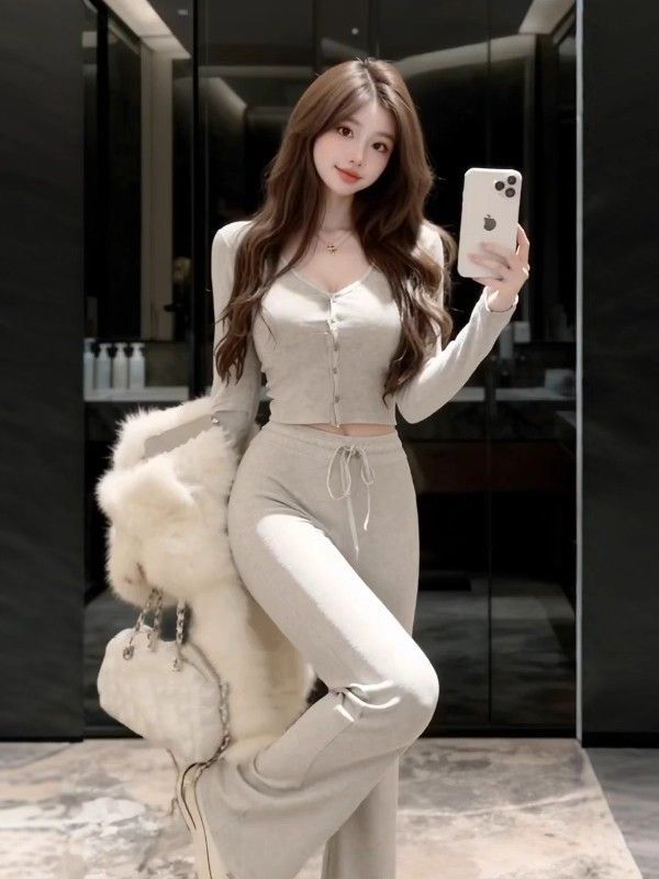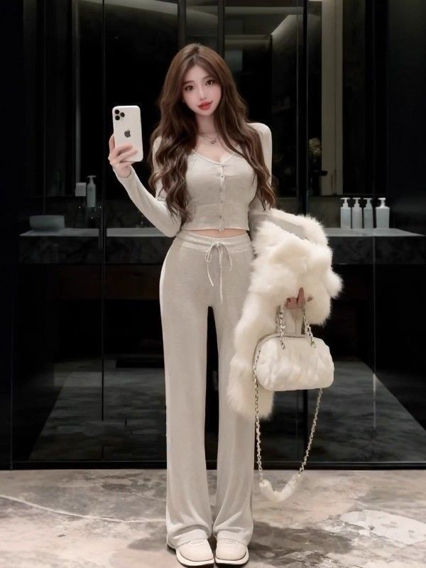 MY17446# 慵懒风甜辣妹上衣阔腿裤两件套女裝貨源服裝批發