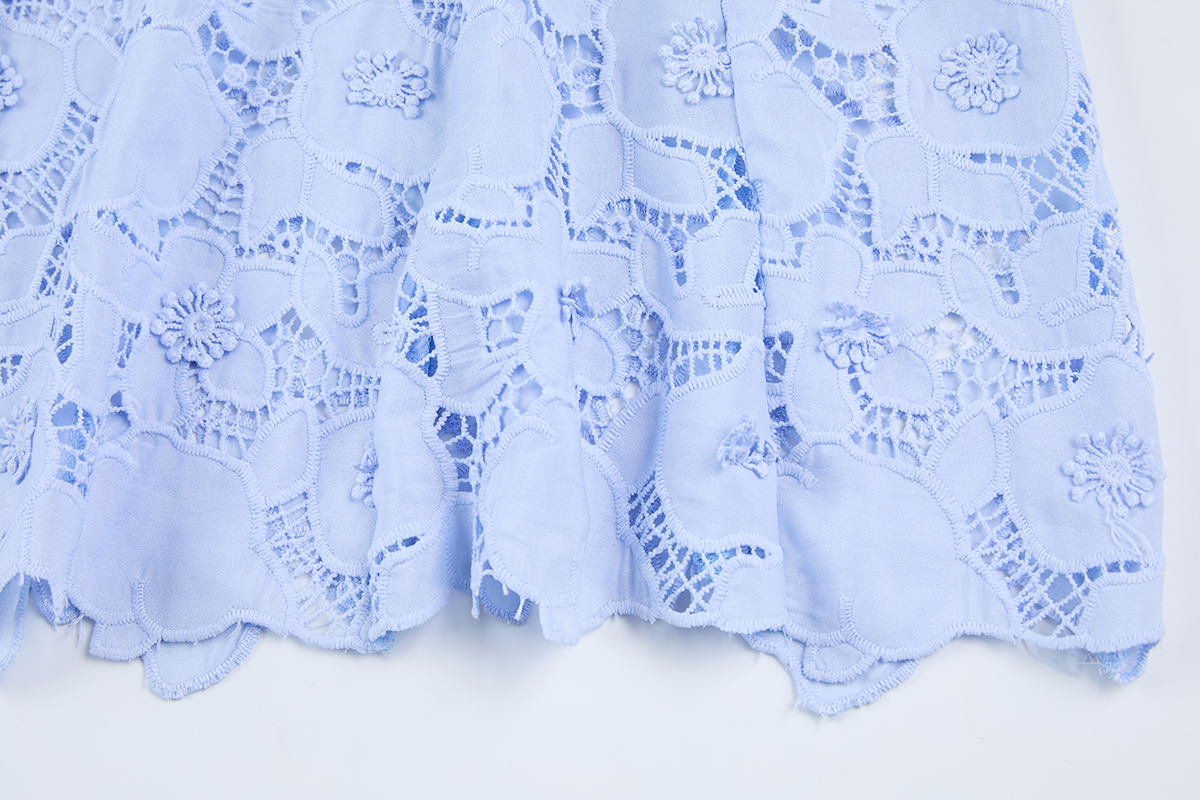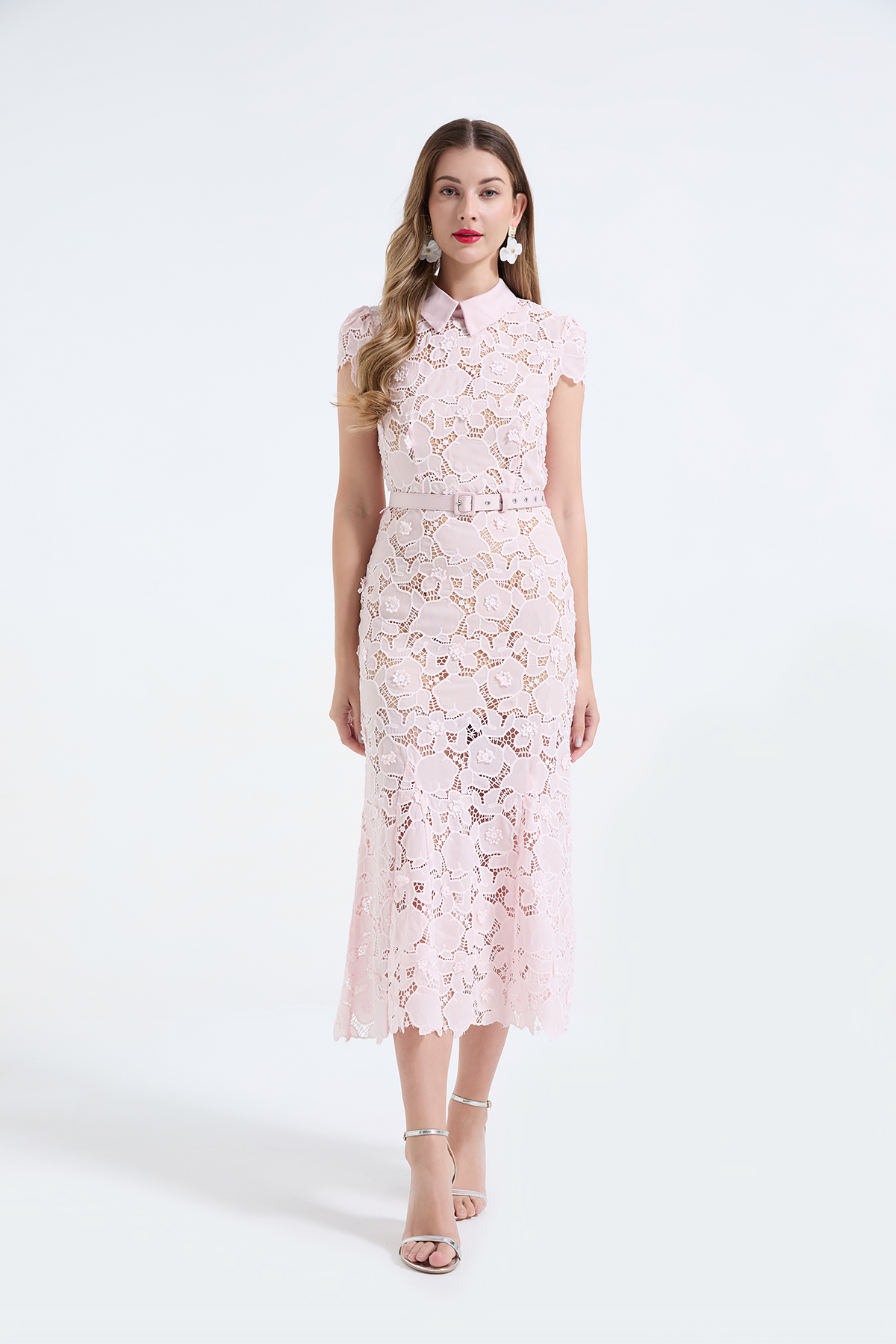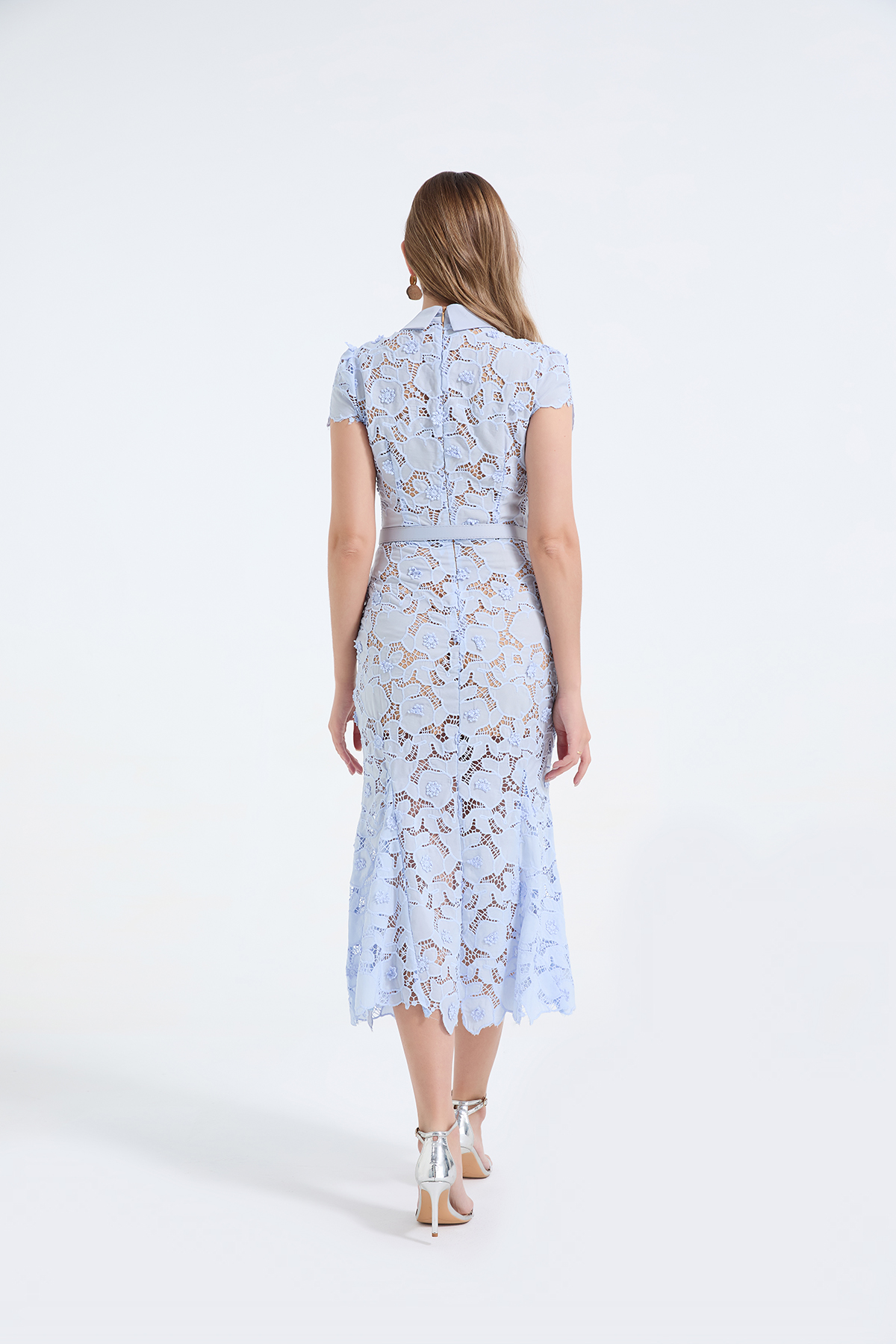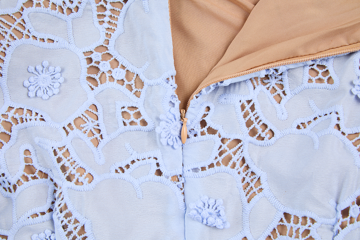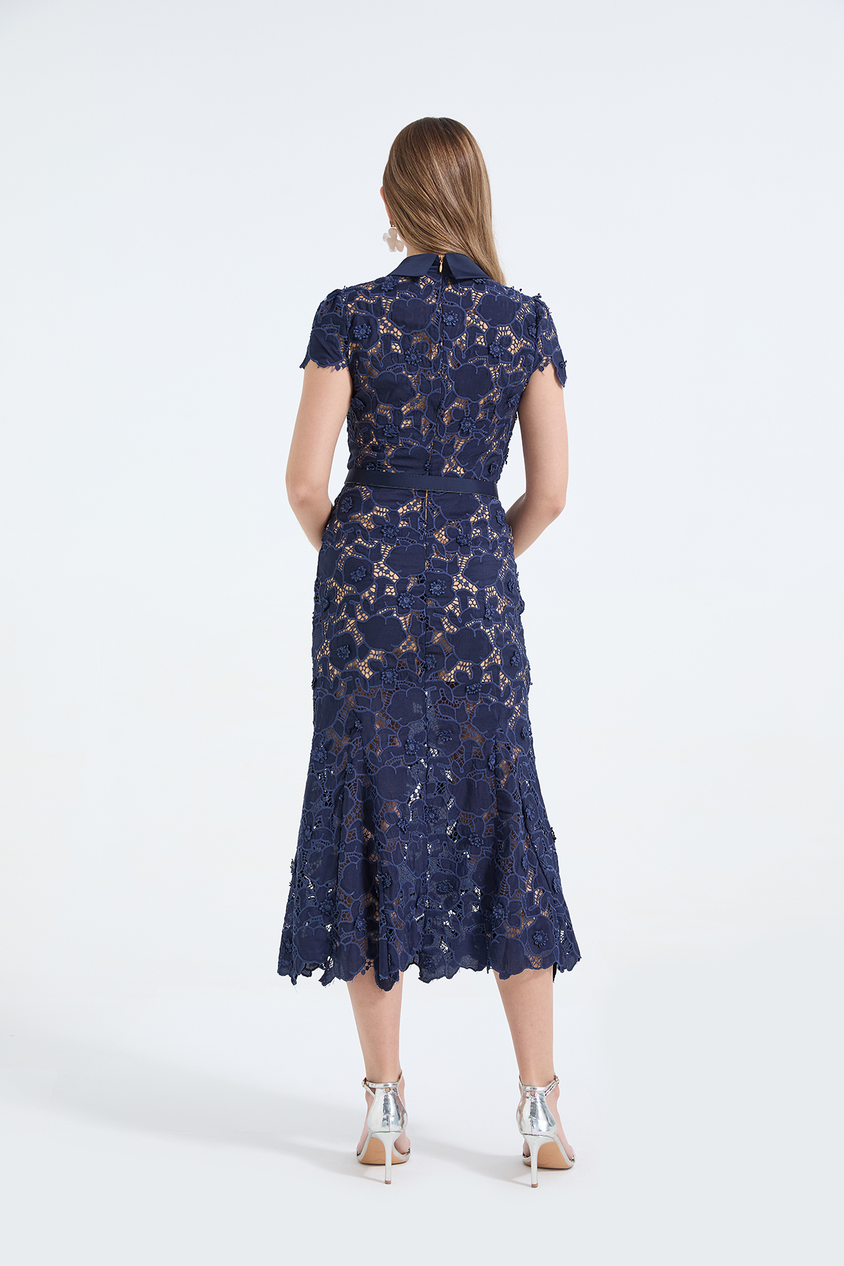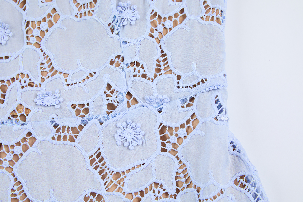 MY17621# 重工蕾丝立体镂空花朵蕾丝拼接衬衫领修身鱼尾连衣裙女裝貨源服裝批發