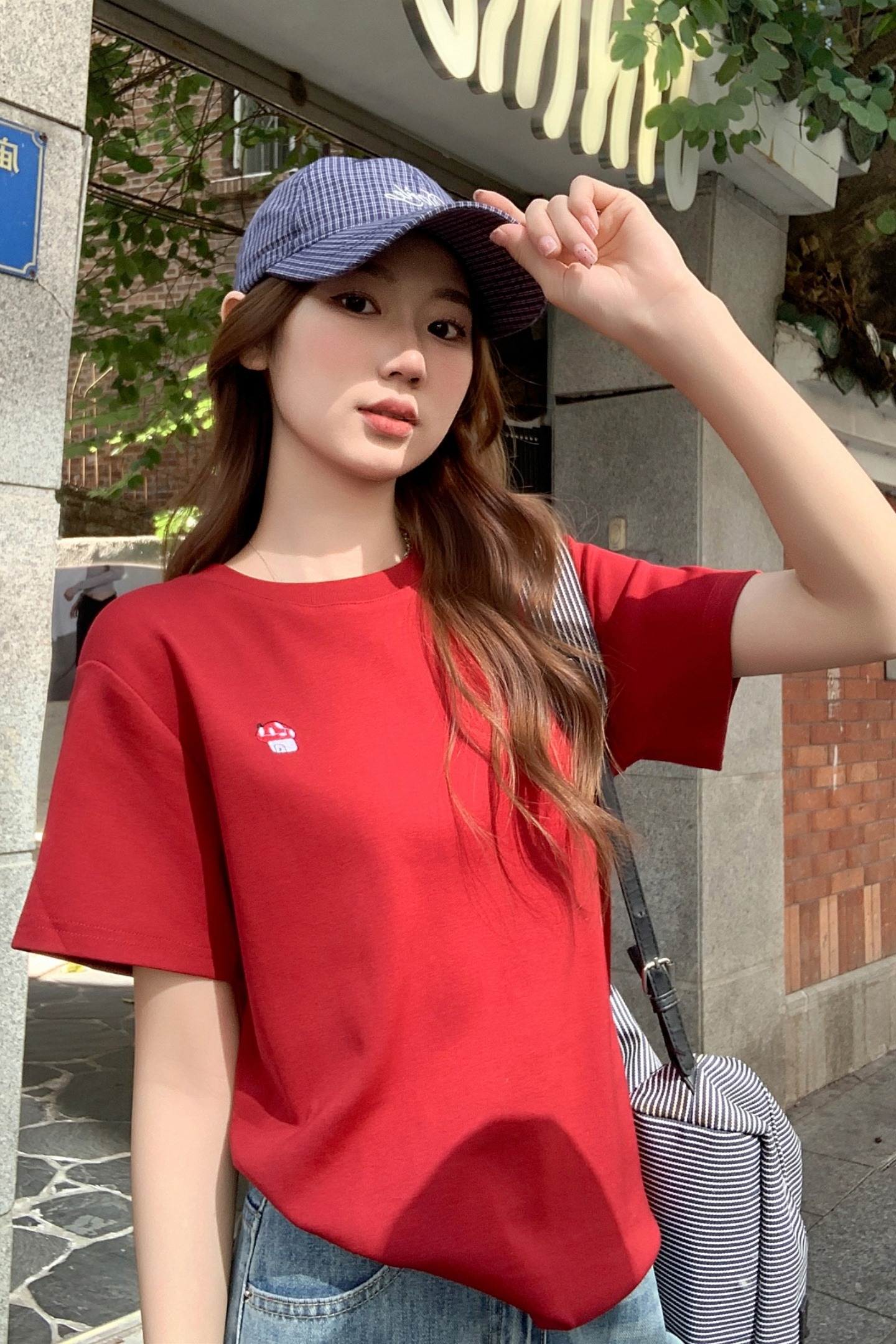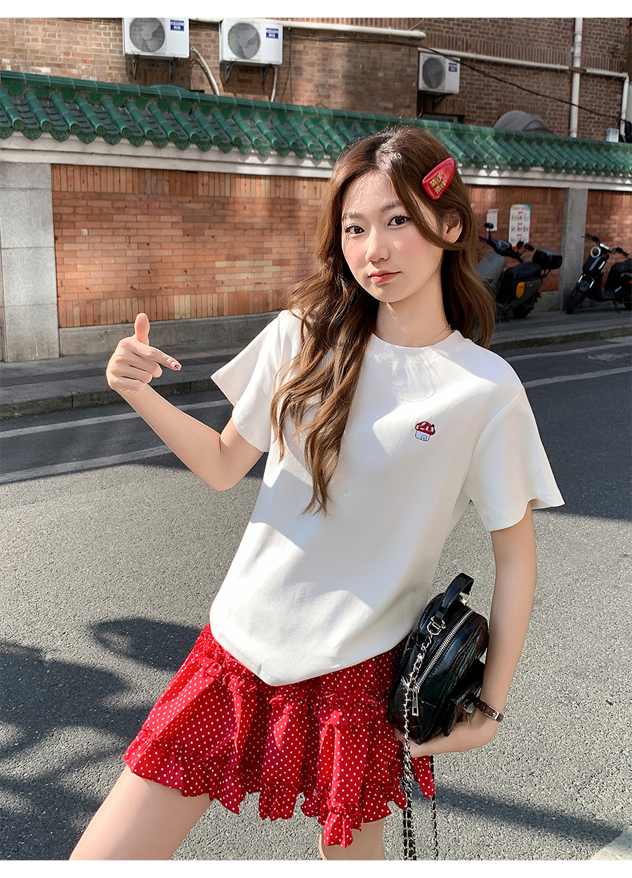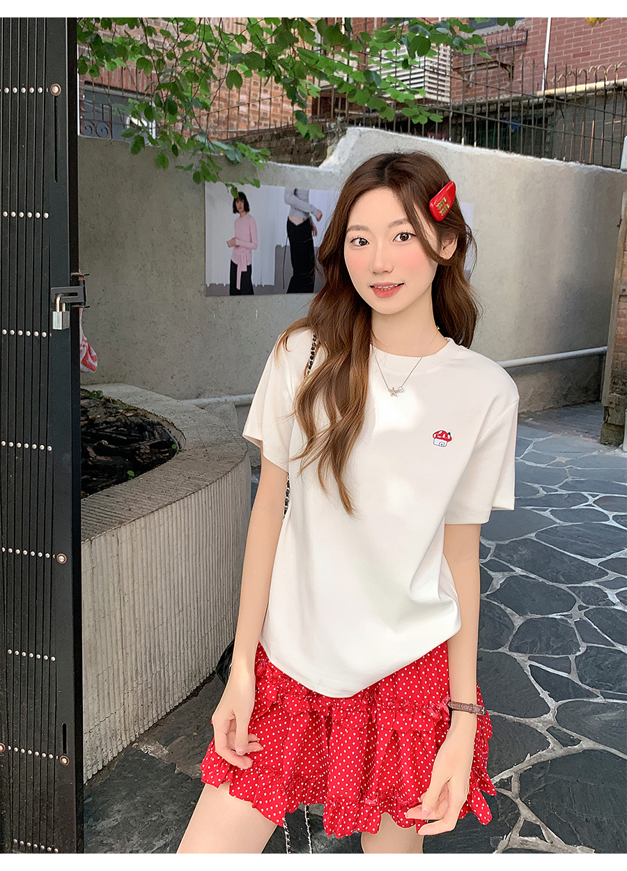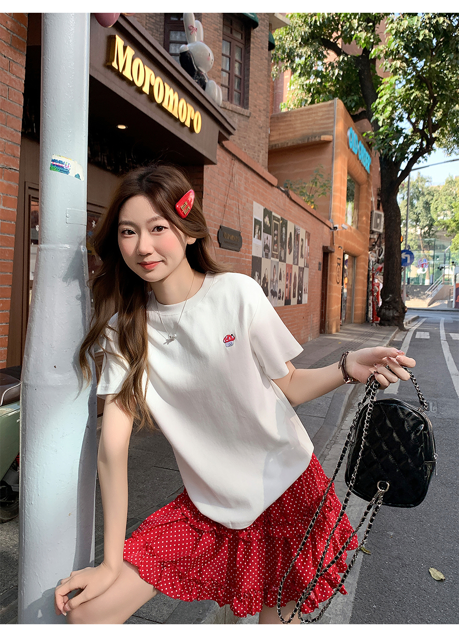 MY17639# 简约百搭圆领刺绣短袖t恤新款设计高级感修身打底小衫上衣女裝貨源服裝批發