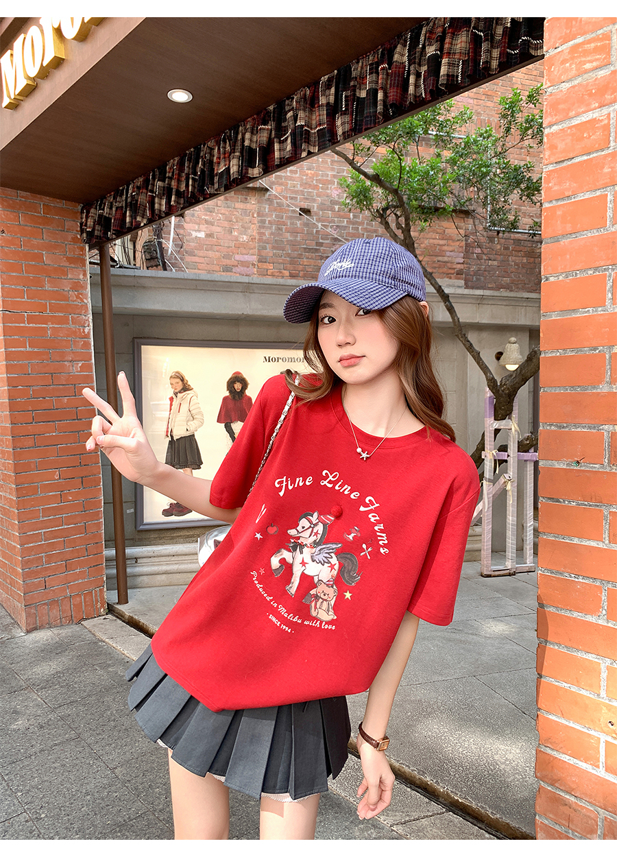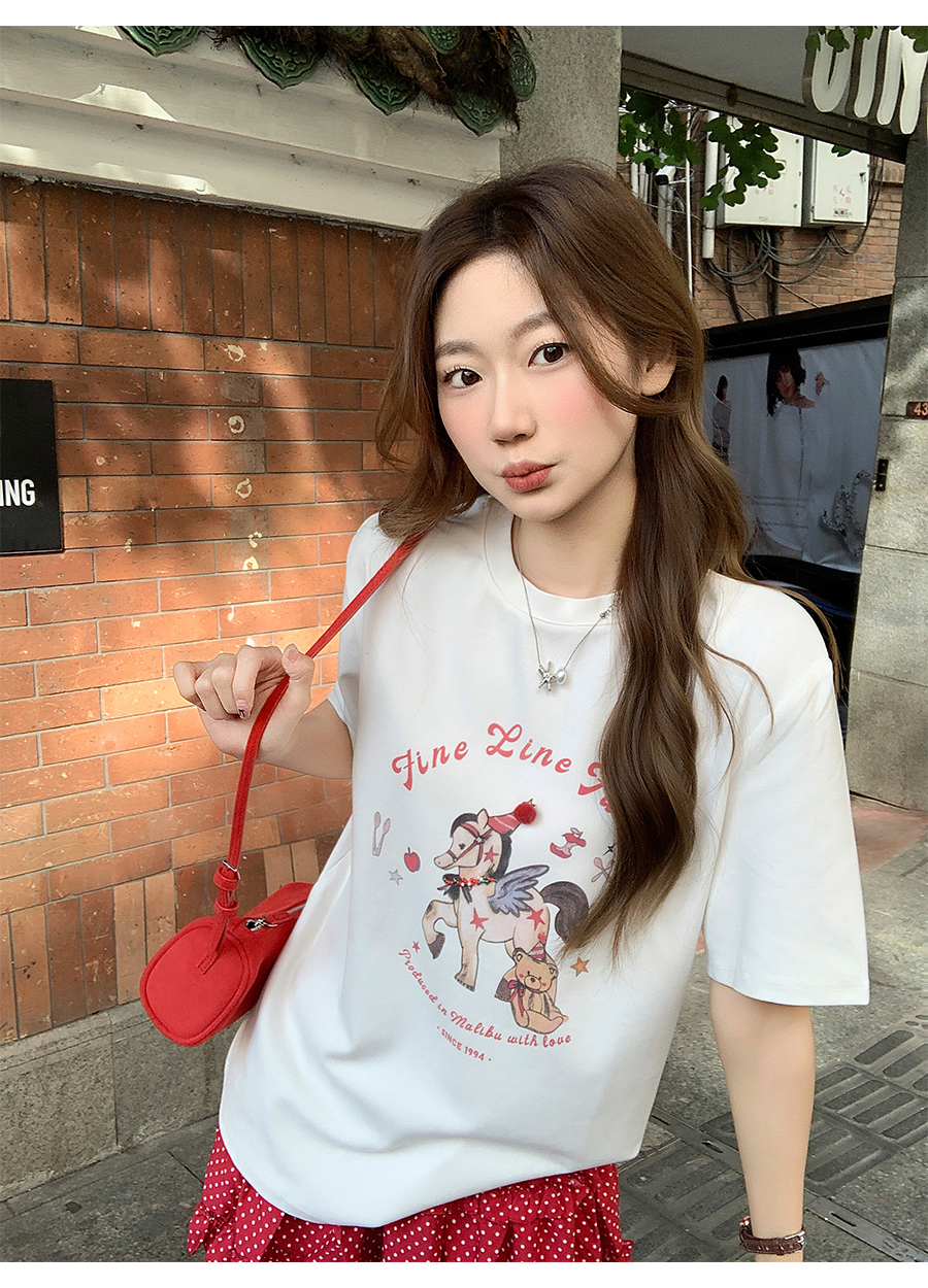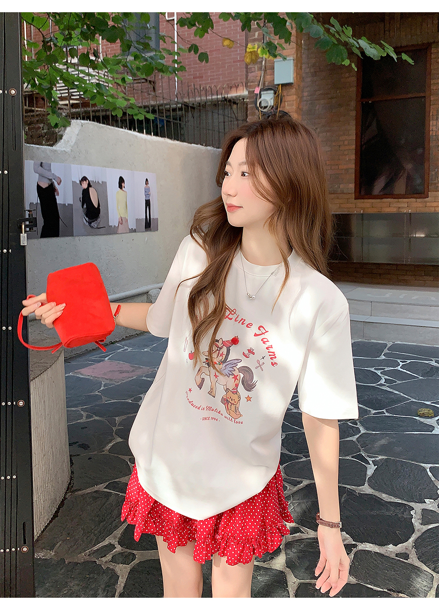 MY17640# 卡通印花圆领正肩短袖t恤新款宽松显瘦休闲慵懒风上衣女裝貨源服裝批發