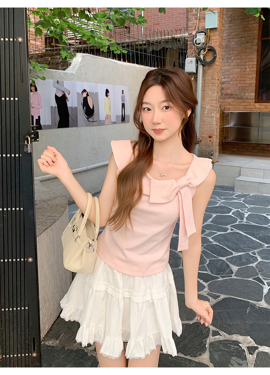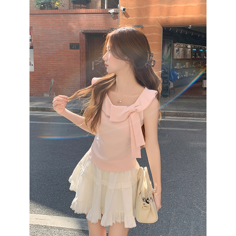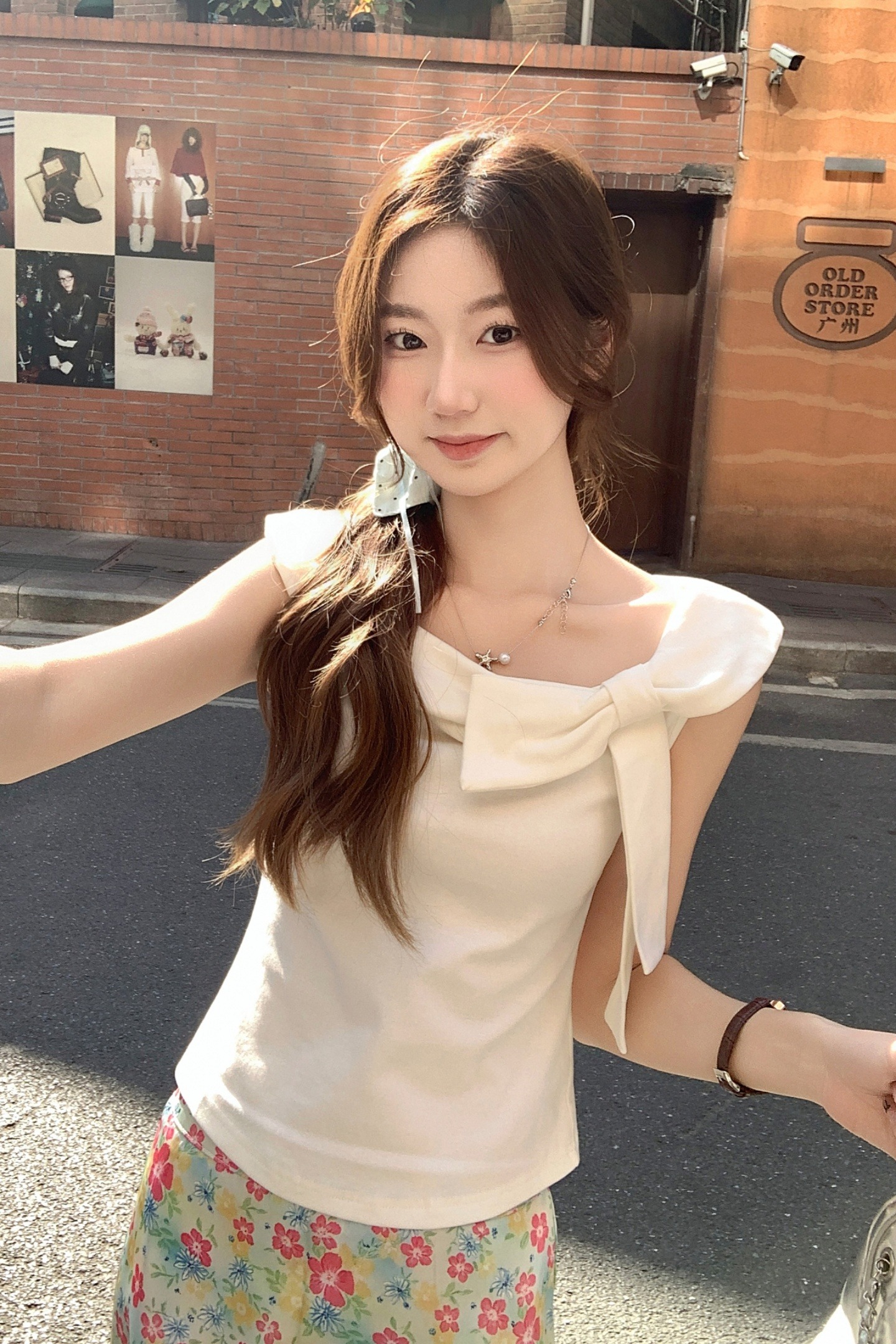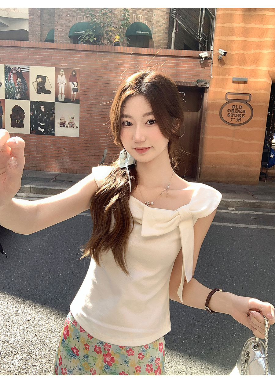 MY17644# 纯欲风蝴蝶结一字肩短袖t恤新款辣妹修身露肩短款上衣女裝貨源服裝批發