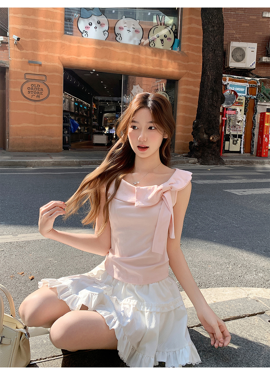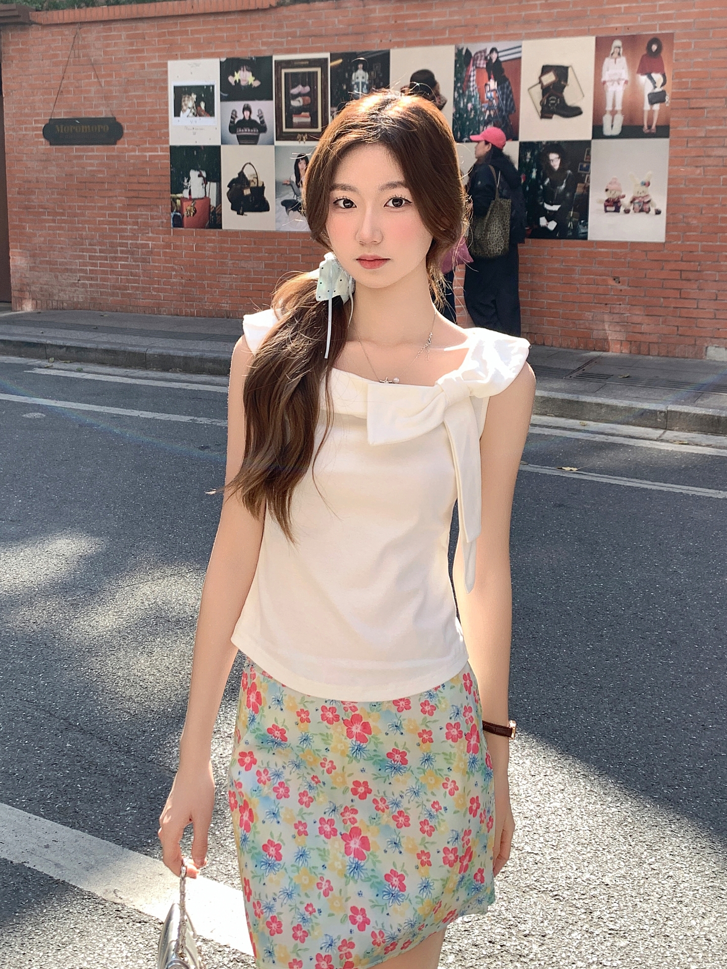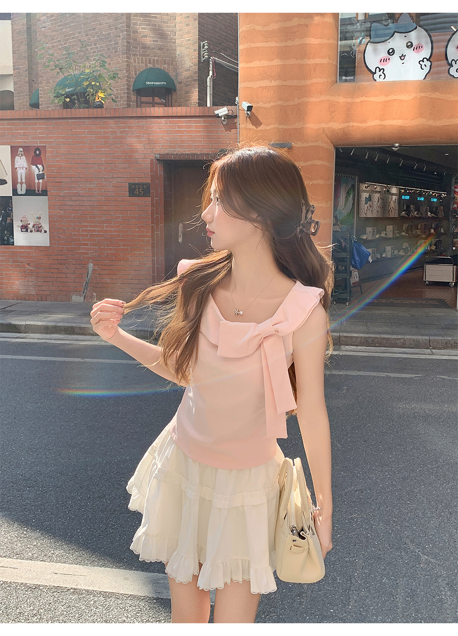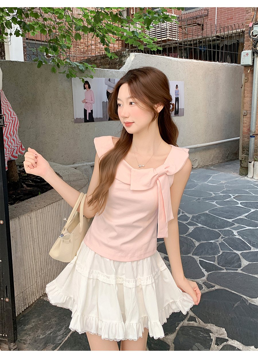 MY17644# 纯欲风蝴蝶结一字肩短袖t恤新款辣妹修身露肩短款上衣女裝貨源服裝批發