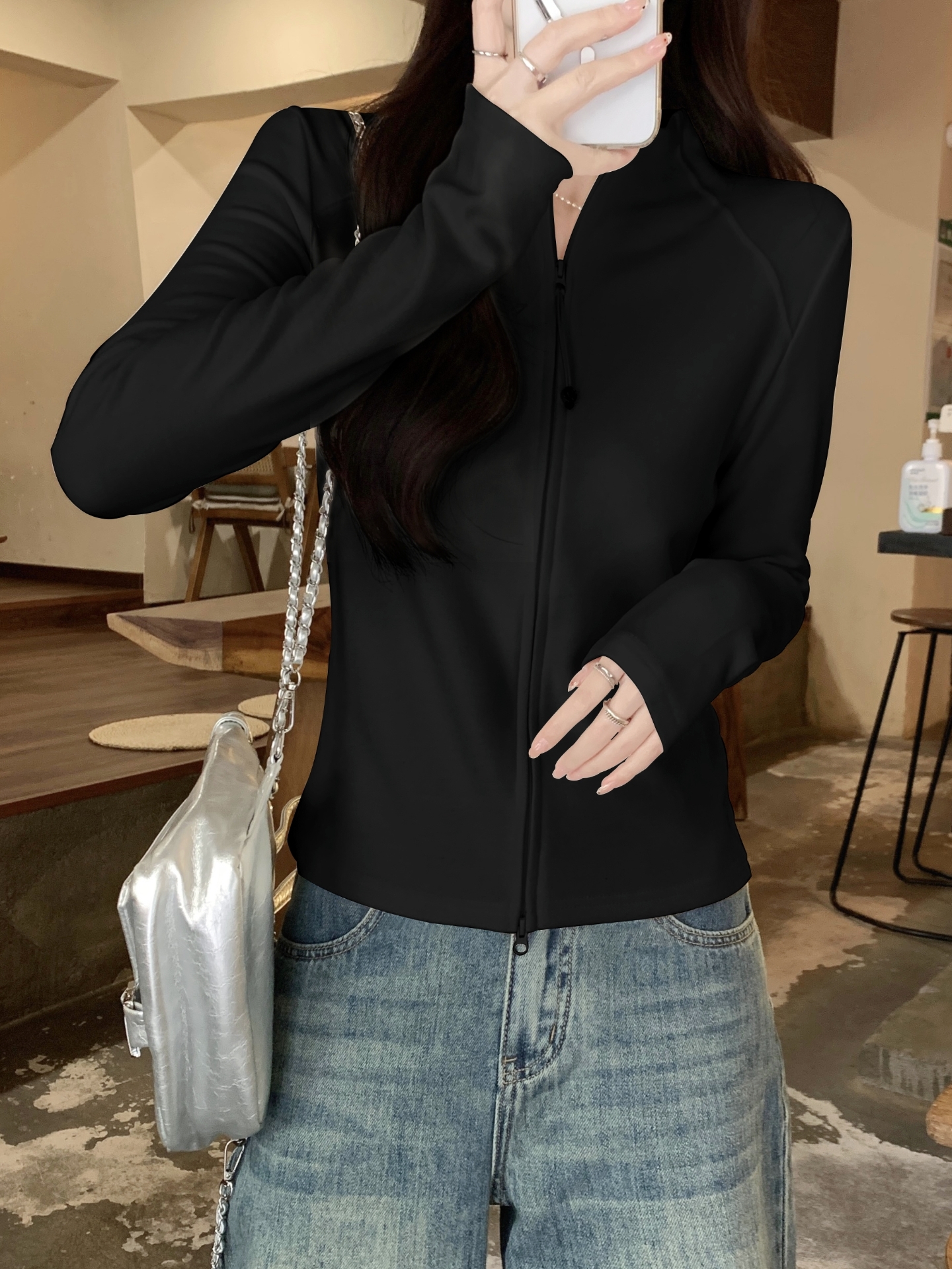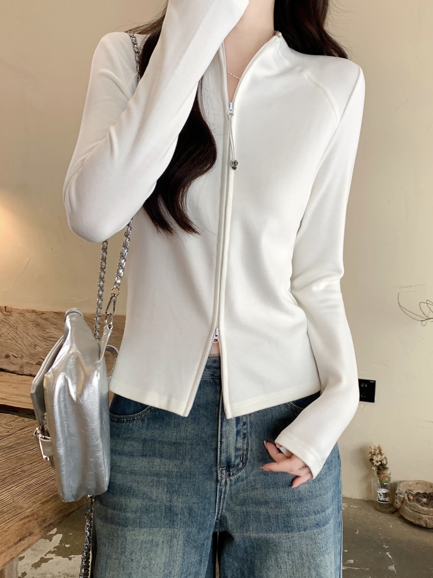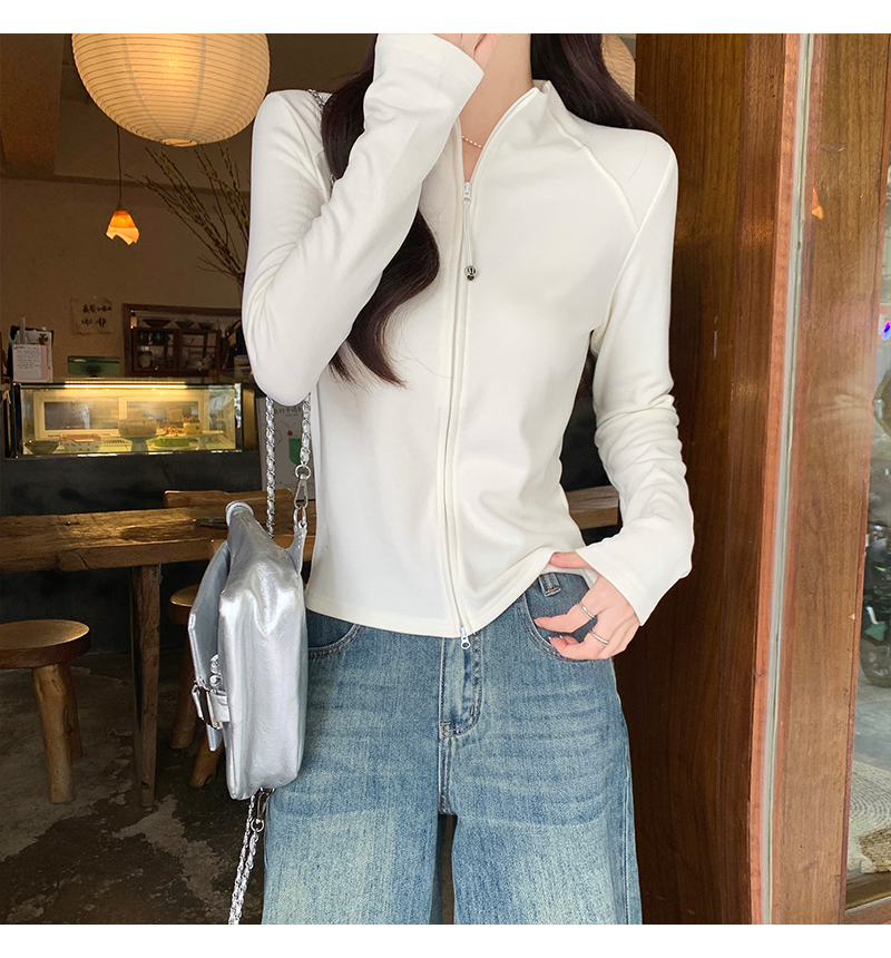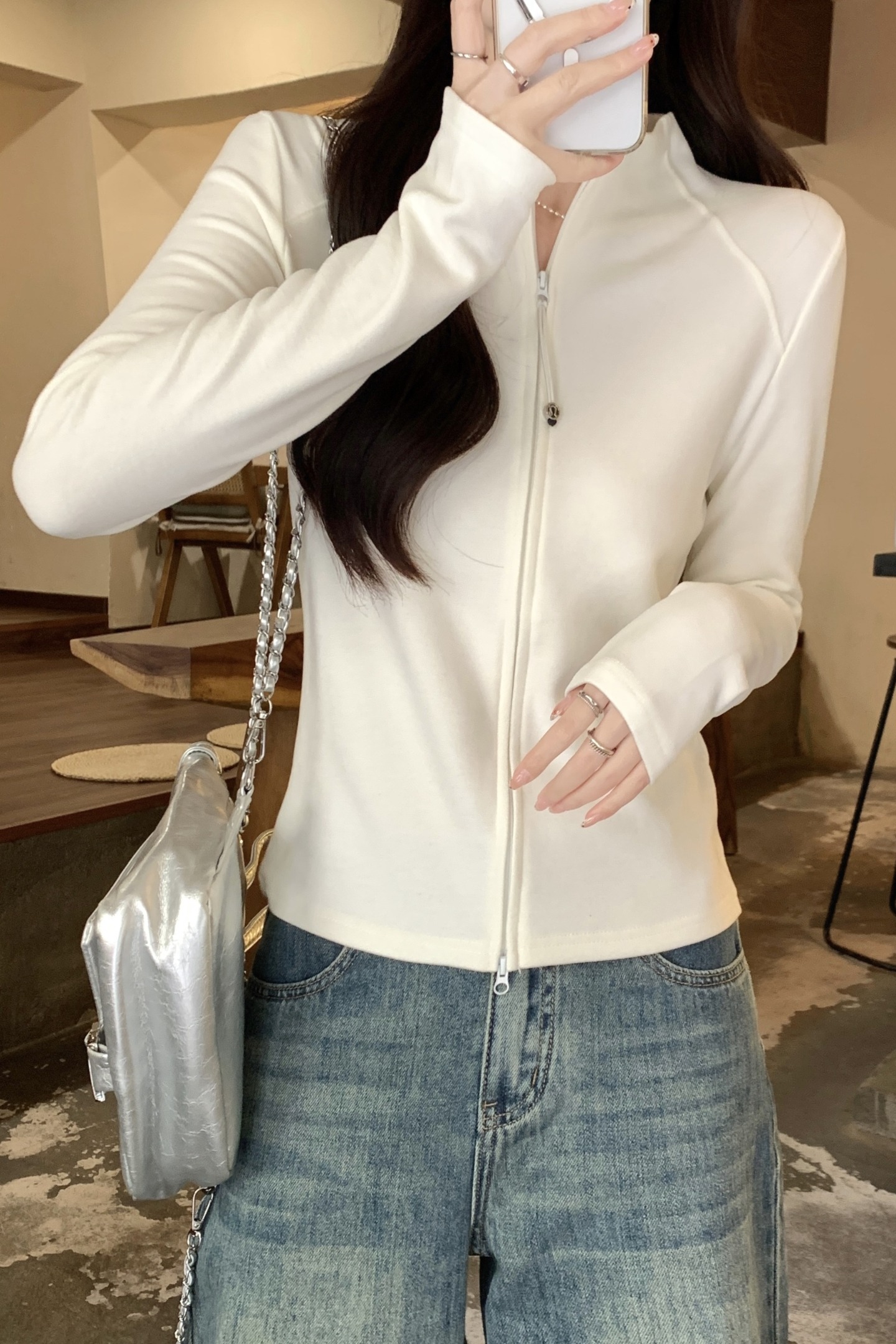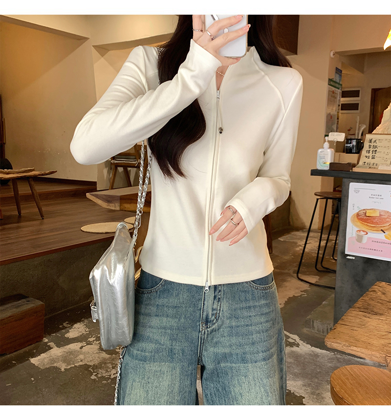 MY17649# 半高领双拉链德绒长袖开衫外套女冬季新款修身显瘦内搭打底衫上衣女裝貨源服裝批發