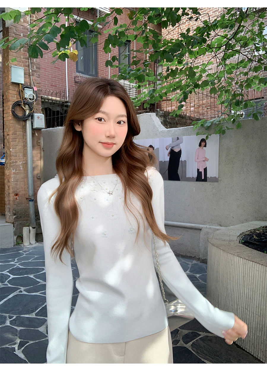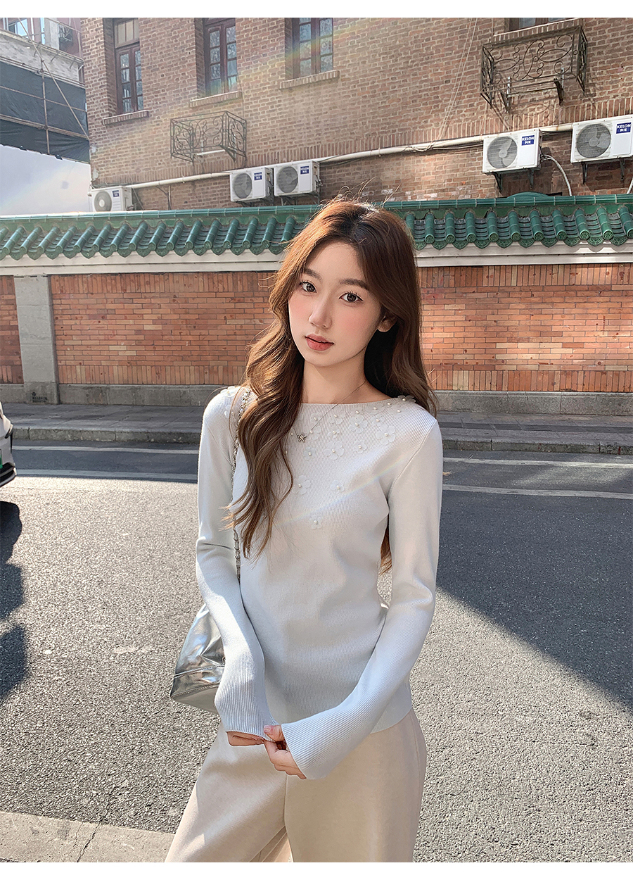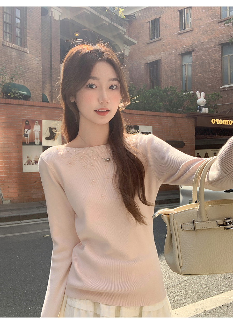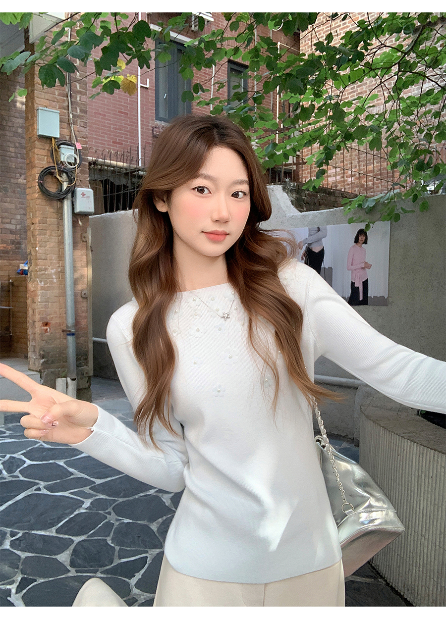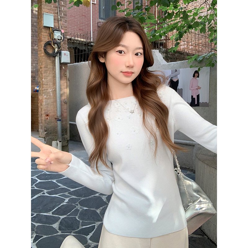 MY17651# 韩系修身立体花朵钉珠针织毛衣新款设计感显瘦绝美打底上衣女裝貨源服裝批發