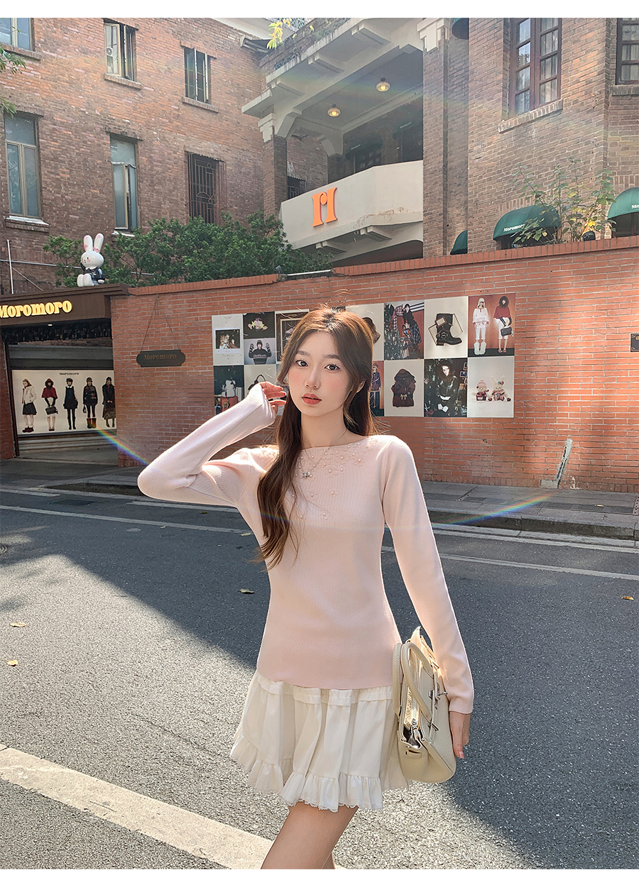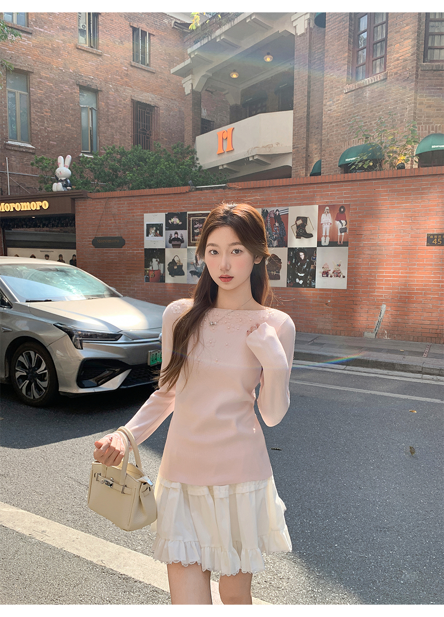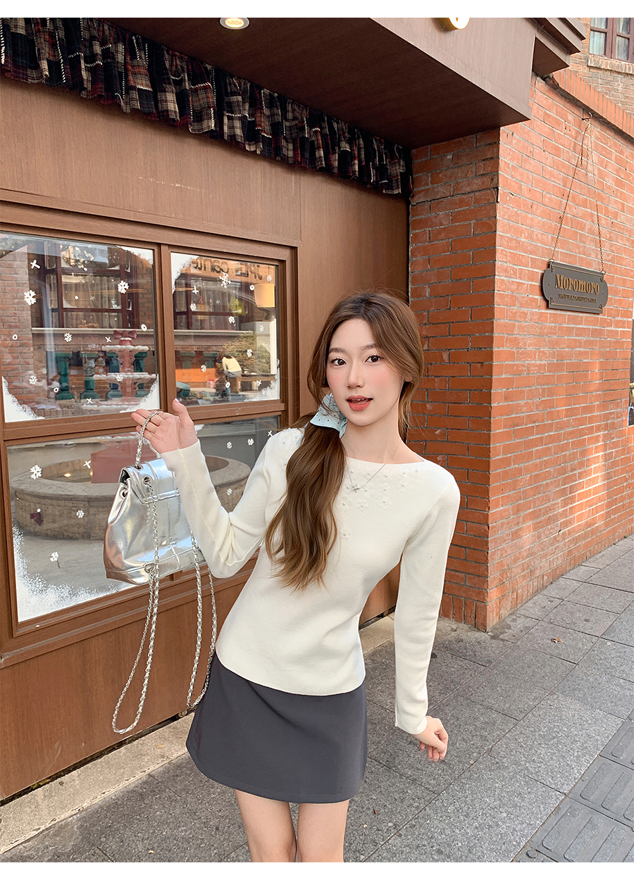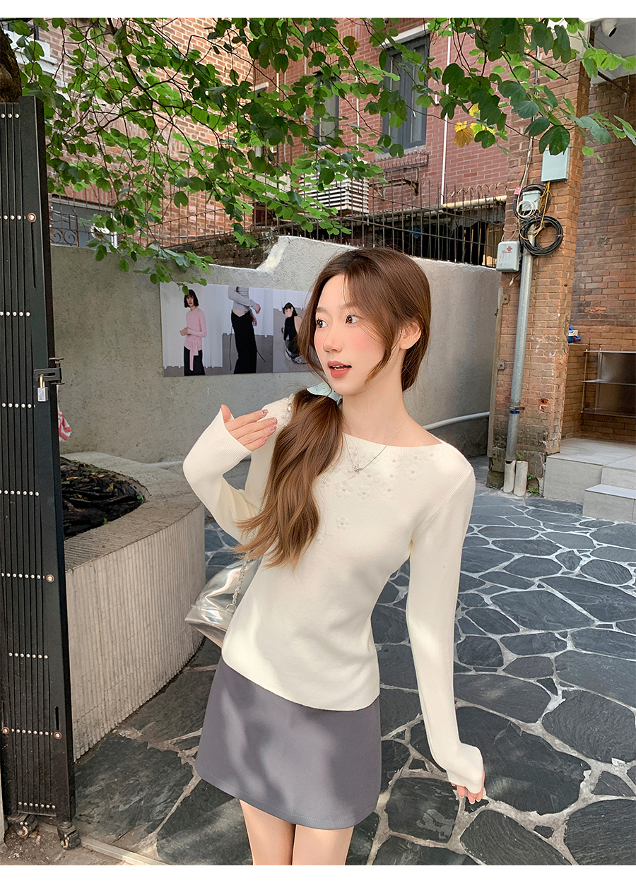 MY17651# 韩系修身立体花朵钉珠针织毛衣新款设计感显瘦绝美打底上衣女裝貨源服裝批發