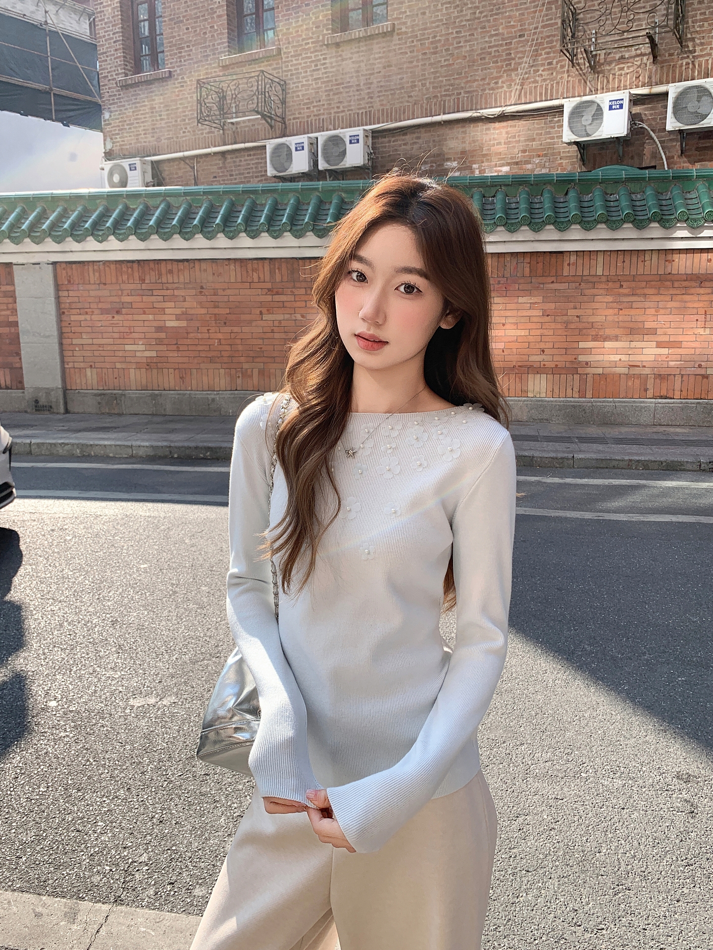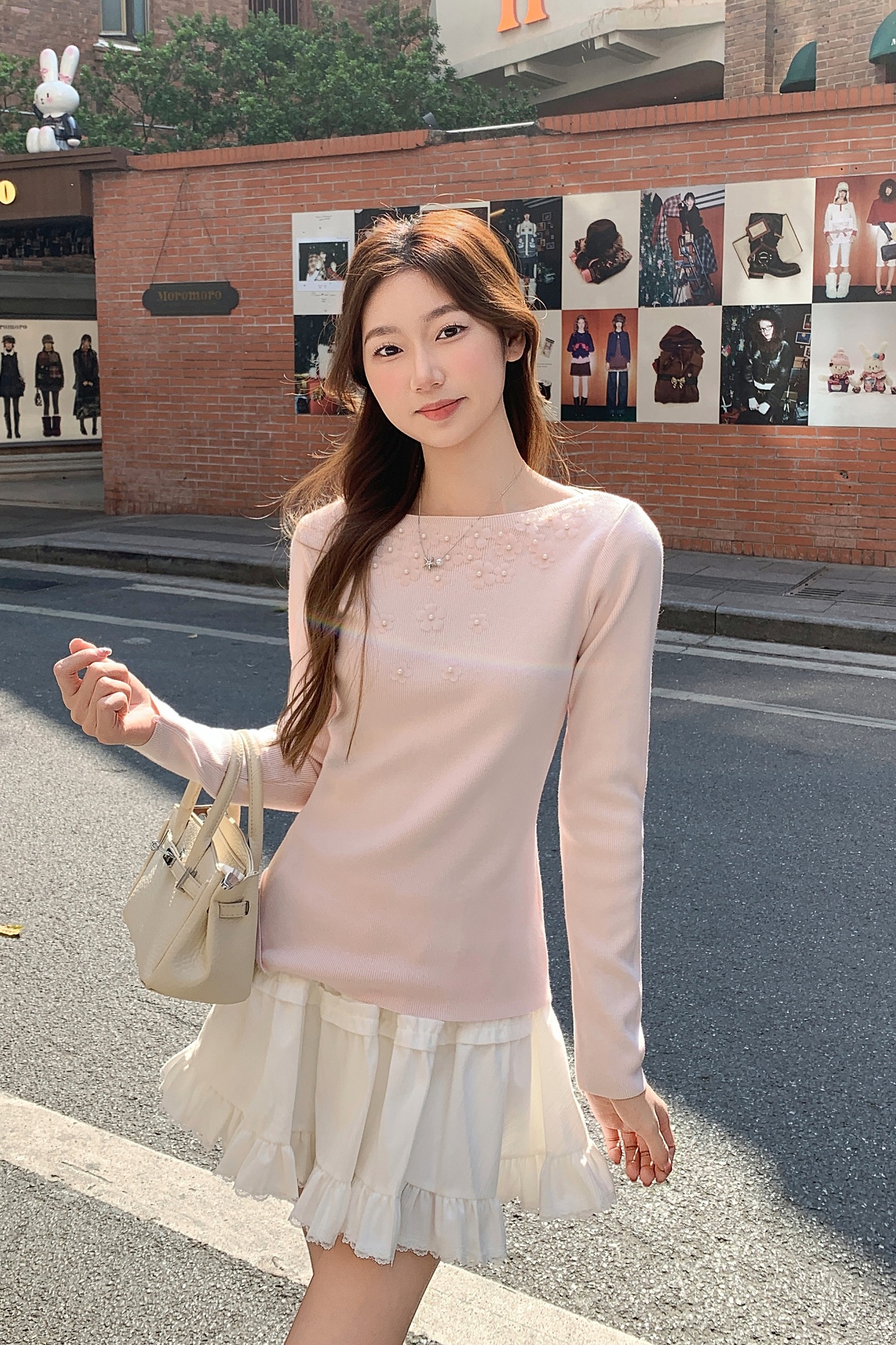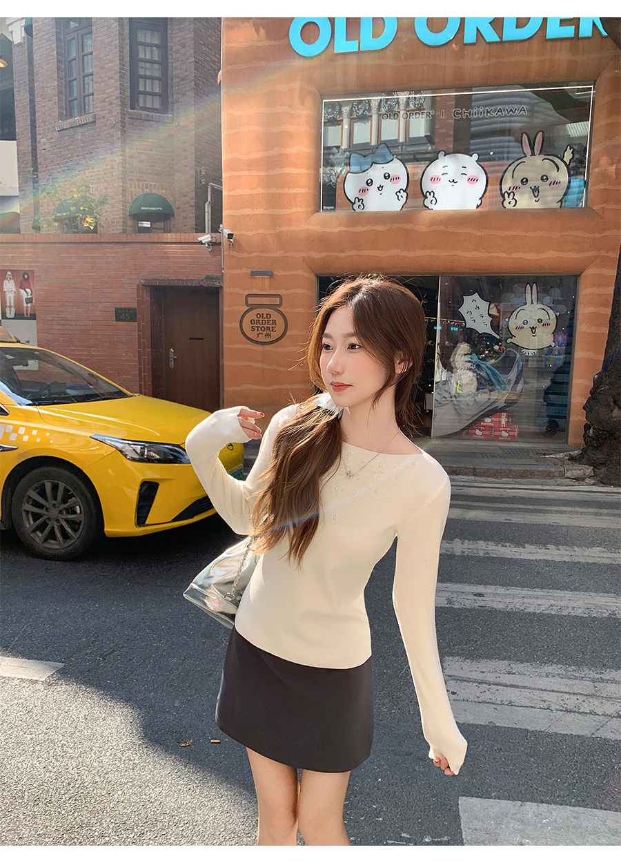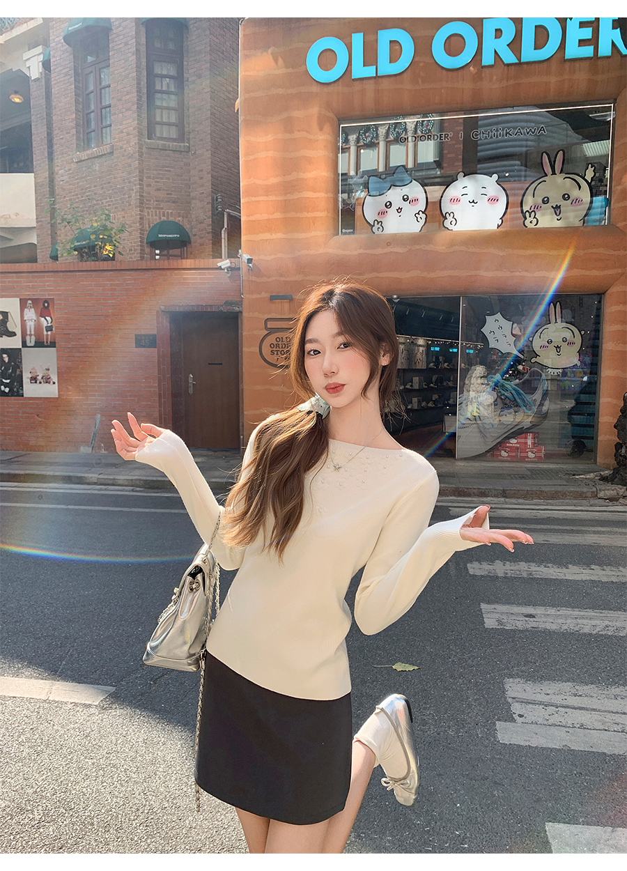 MY17651# 韩系修身立体花朵钉珠针织毛衣新款设计感显瘦绝美打底上衣女裝貨源服裝批發