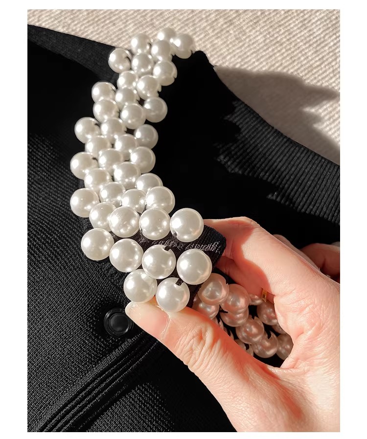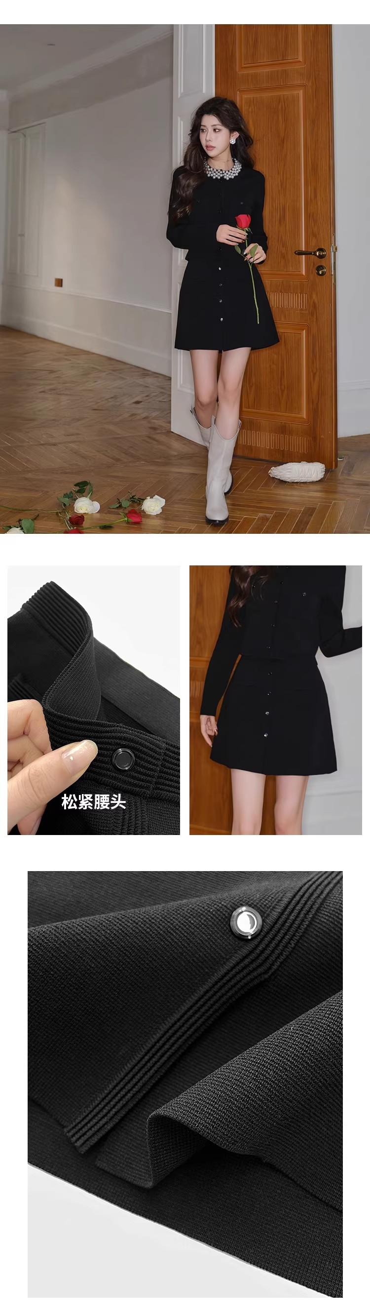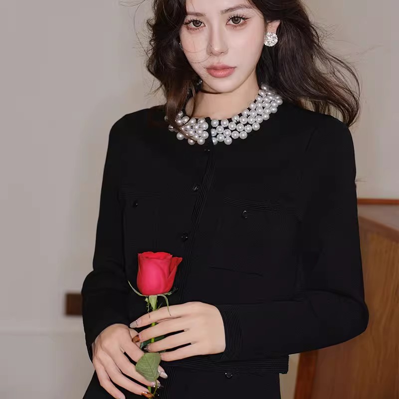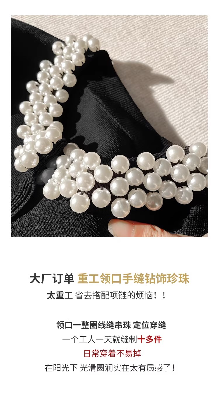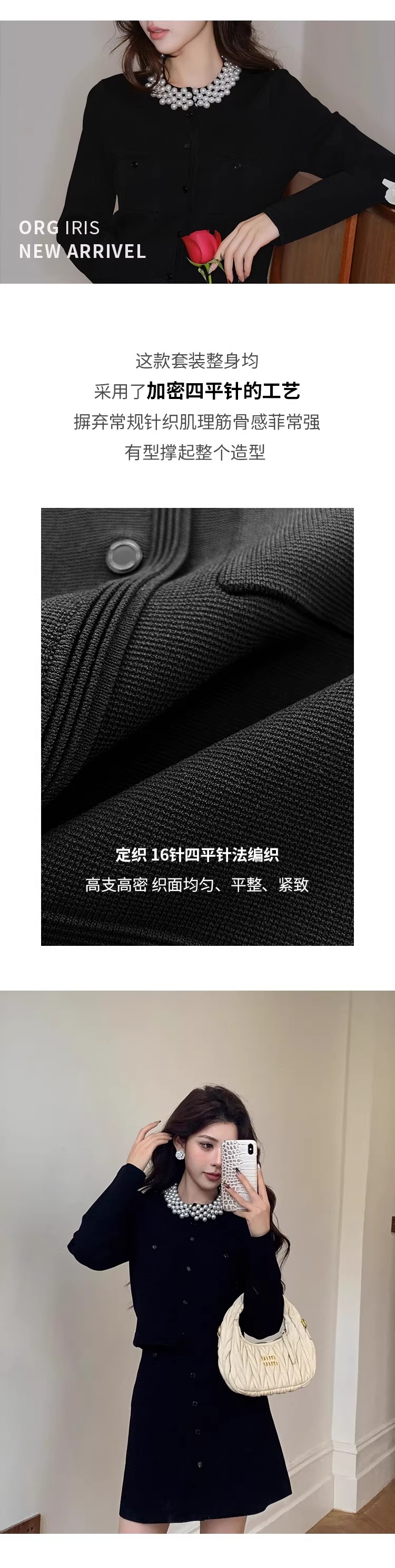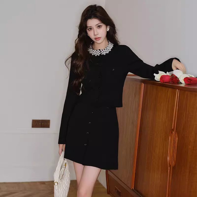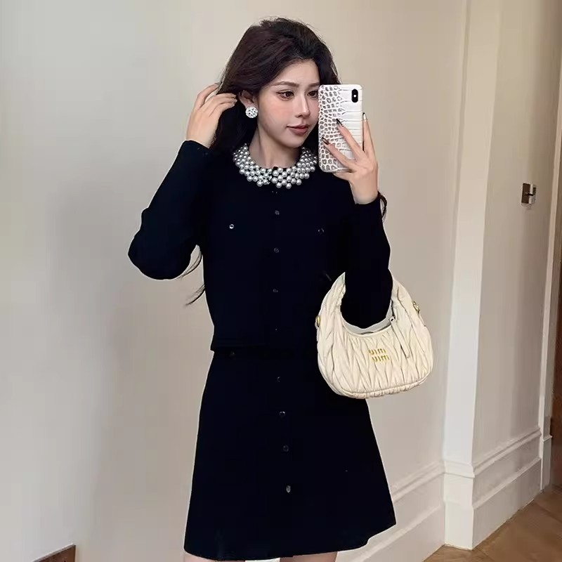 MY17664# 高腰显瘦设计感百搭两件套小香风套装女法式钉珠针织开衫女裝貨源服裝批發