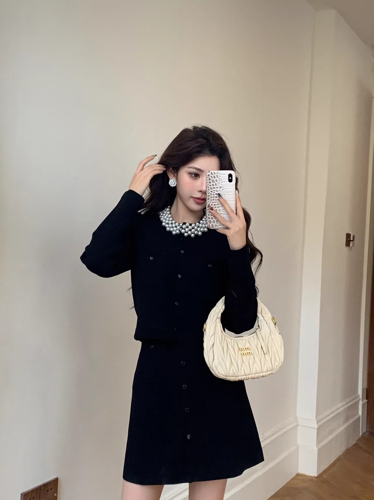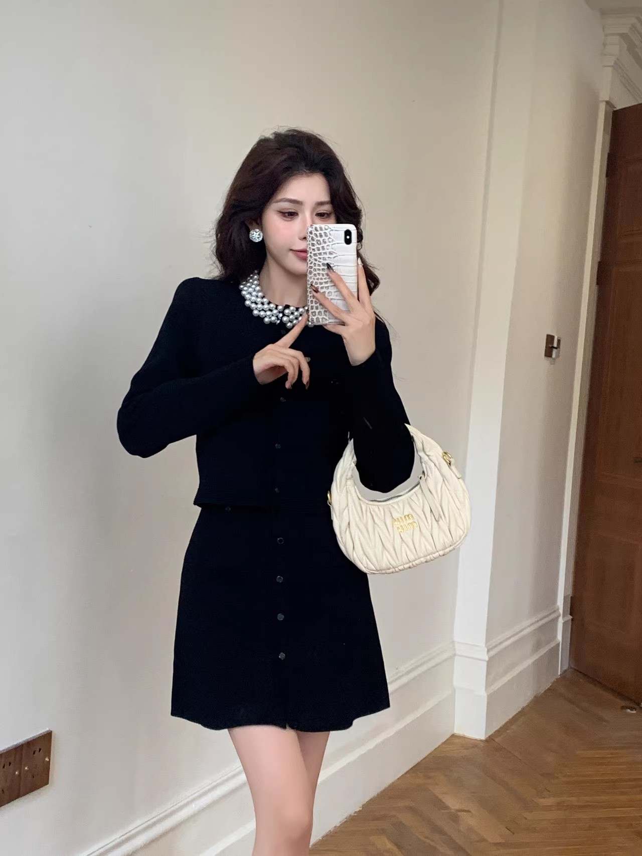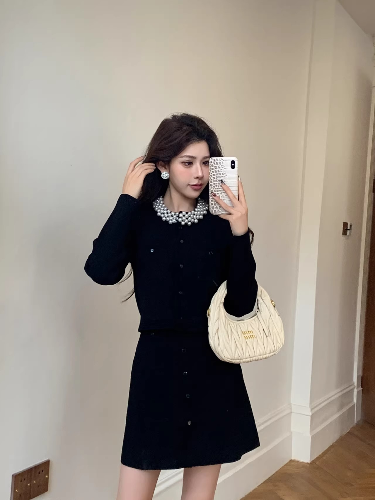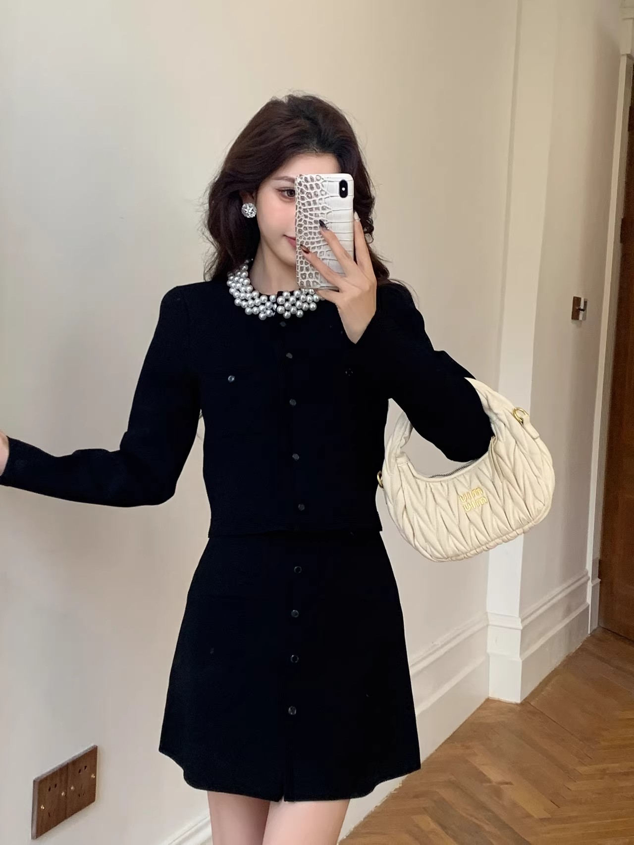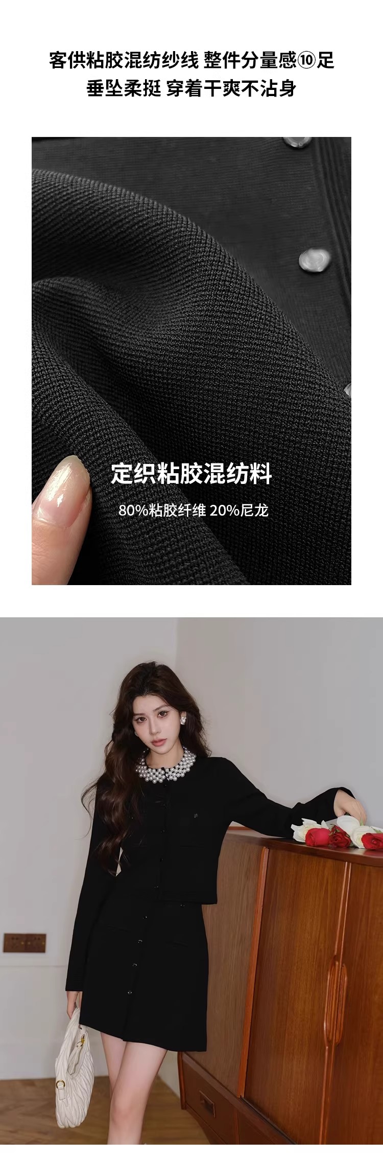 MY17664# 高腰显瘦设计感百搭两件套小香风套装女法式钉珠针织开衫女裝貨源服裝批發
