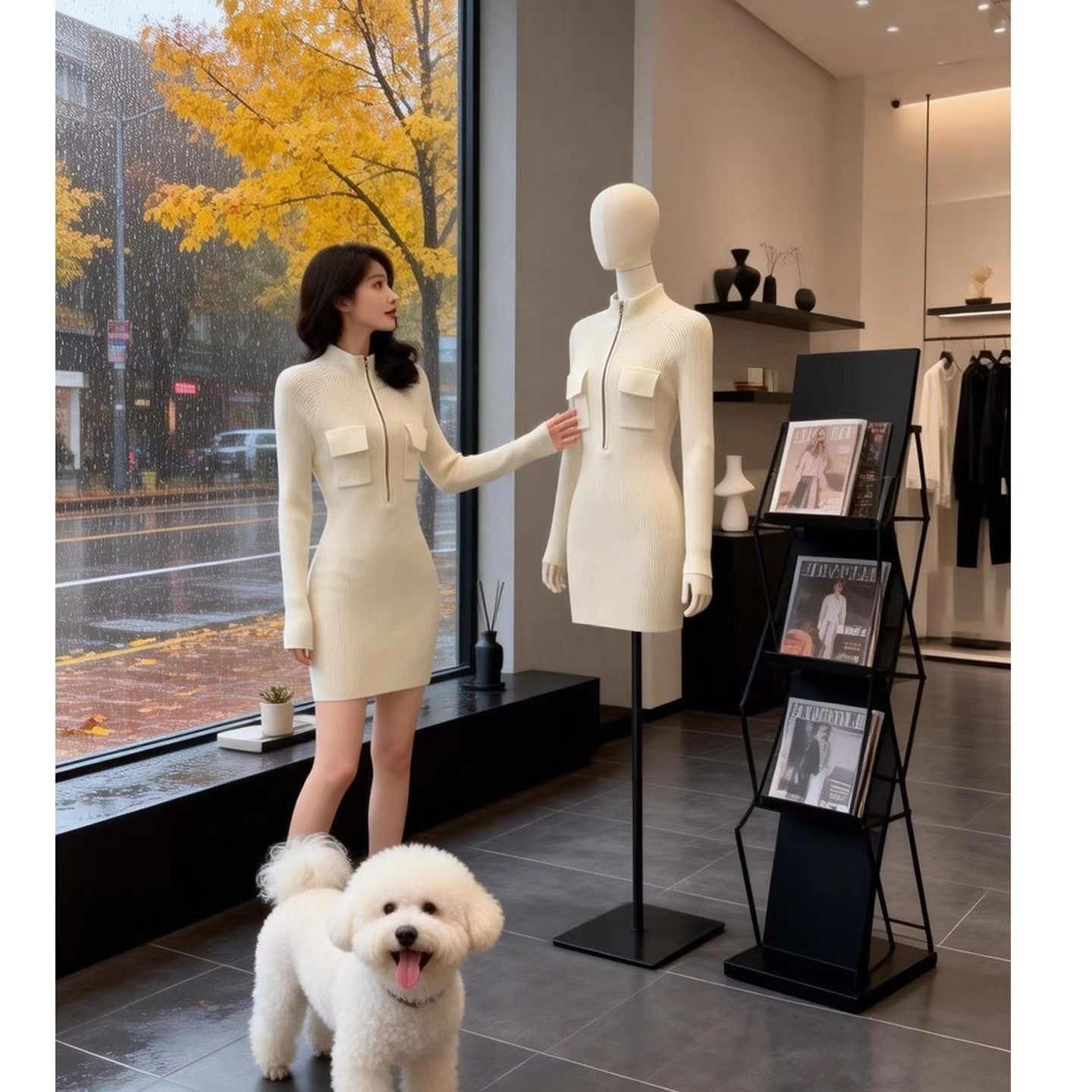 MY17666# 白色裙子修身包臀御姐秋冬短裙新款长袖打底内搭针织连衣裙女裝貨源服裝批發