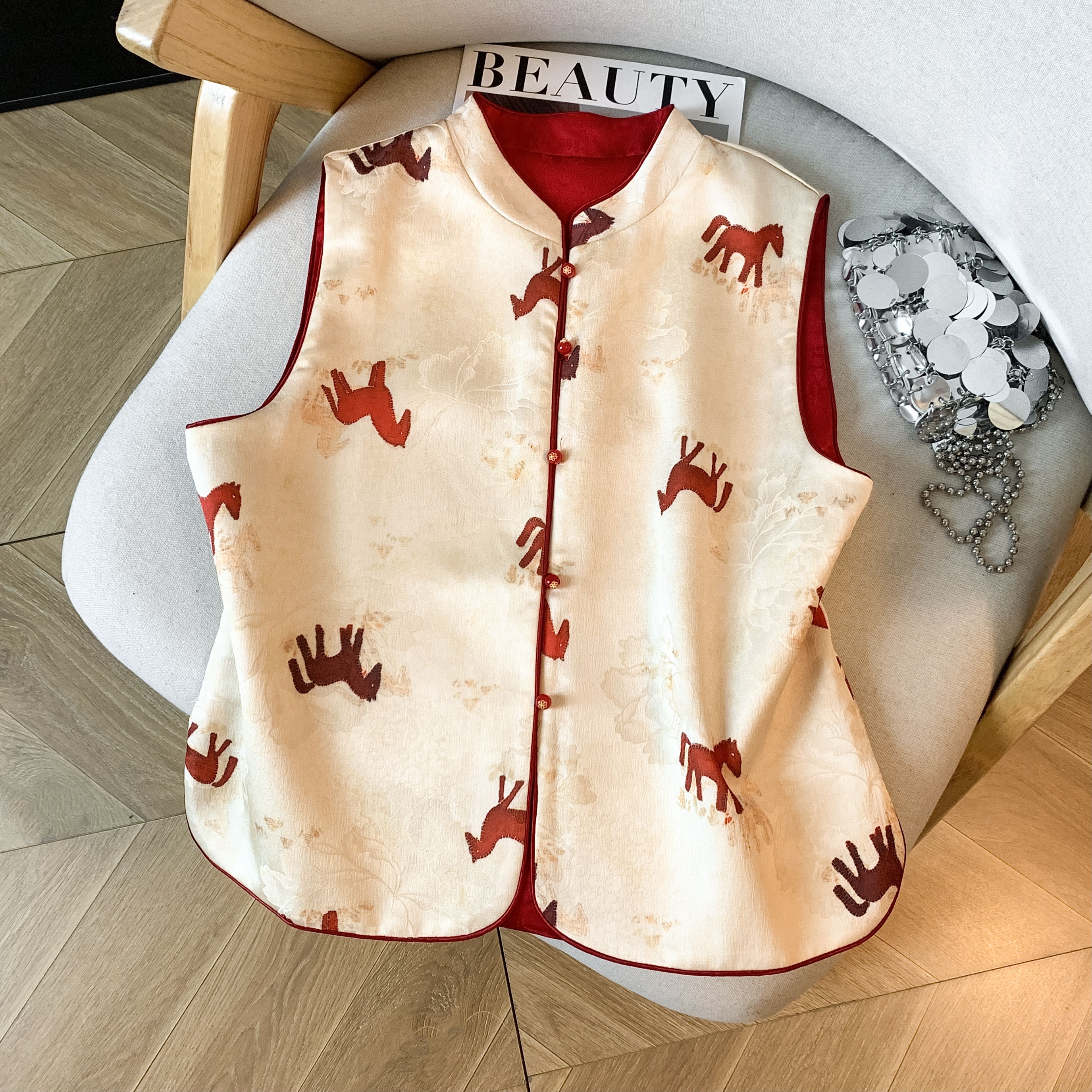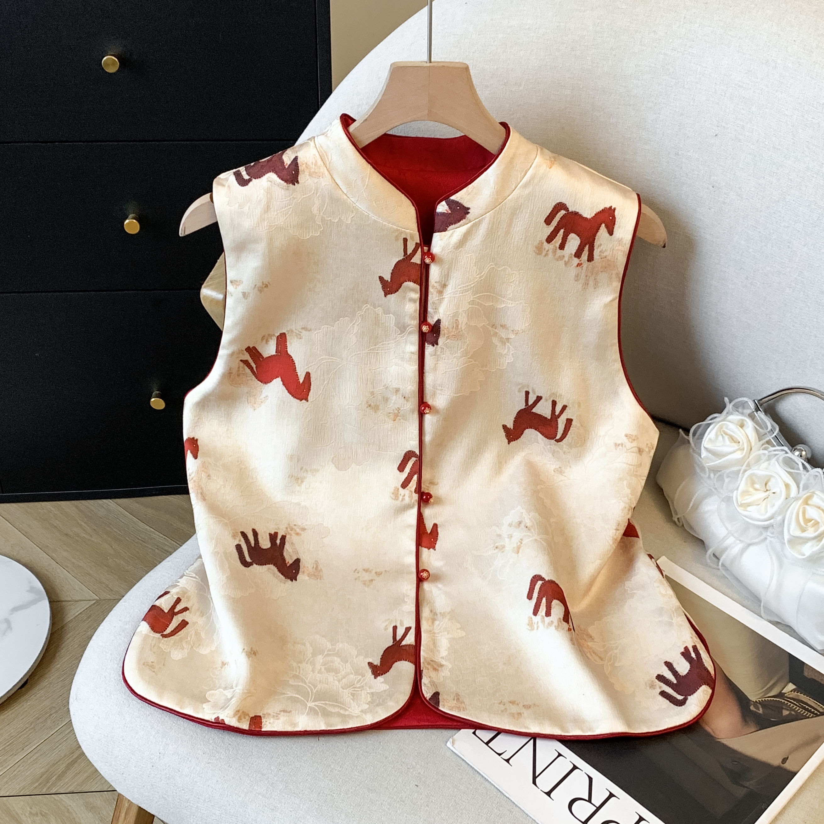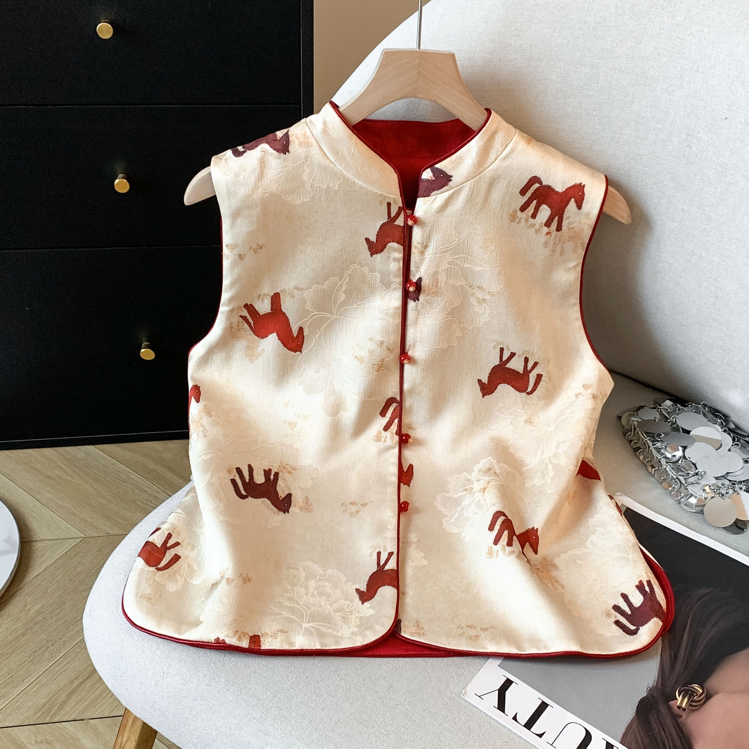 MY17671# 真丝宋锦高端马甲背心新款中式国风坎肩外搭双面双穿女裝貨源服裝批發