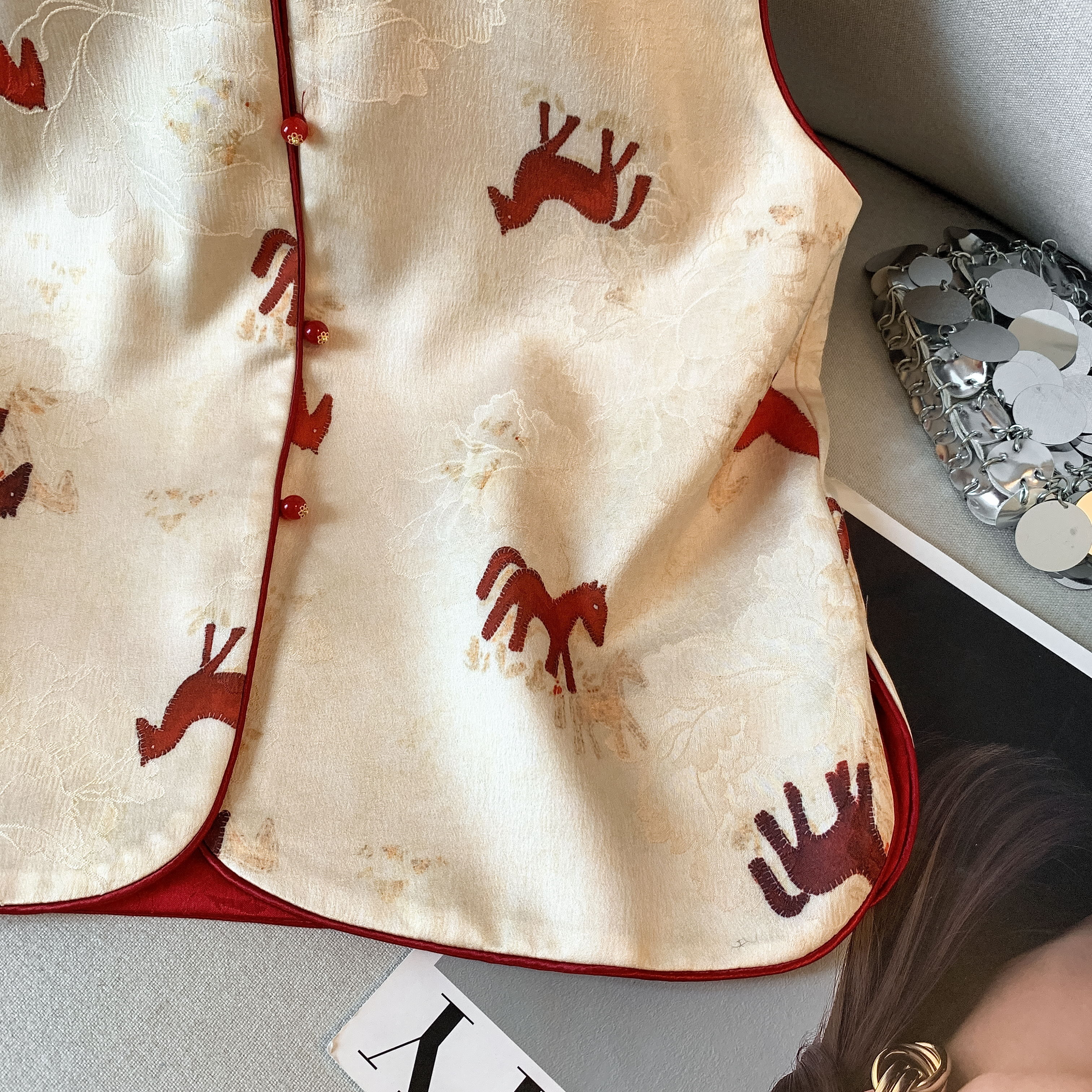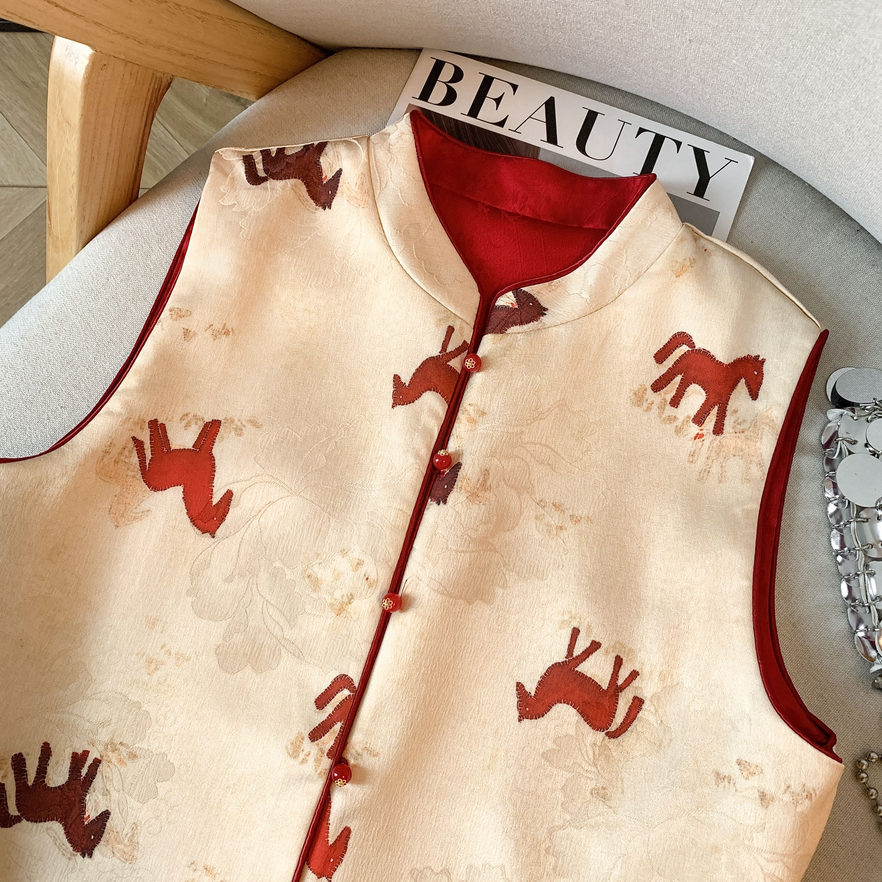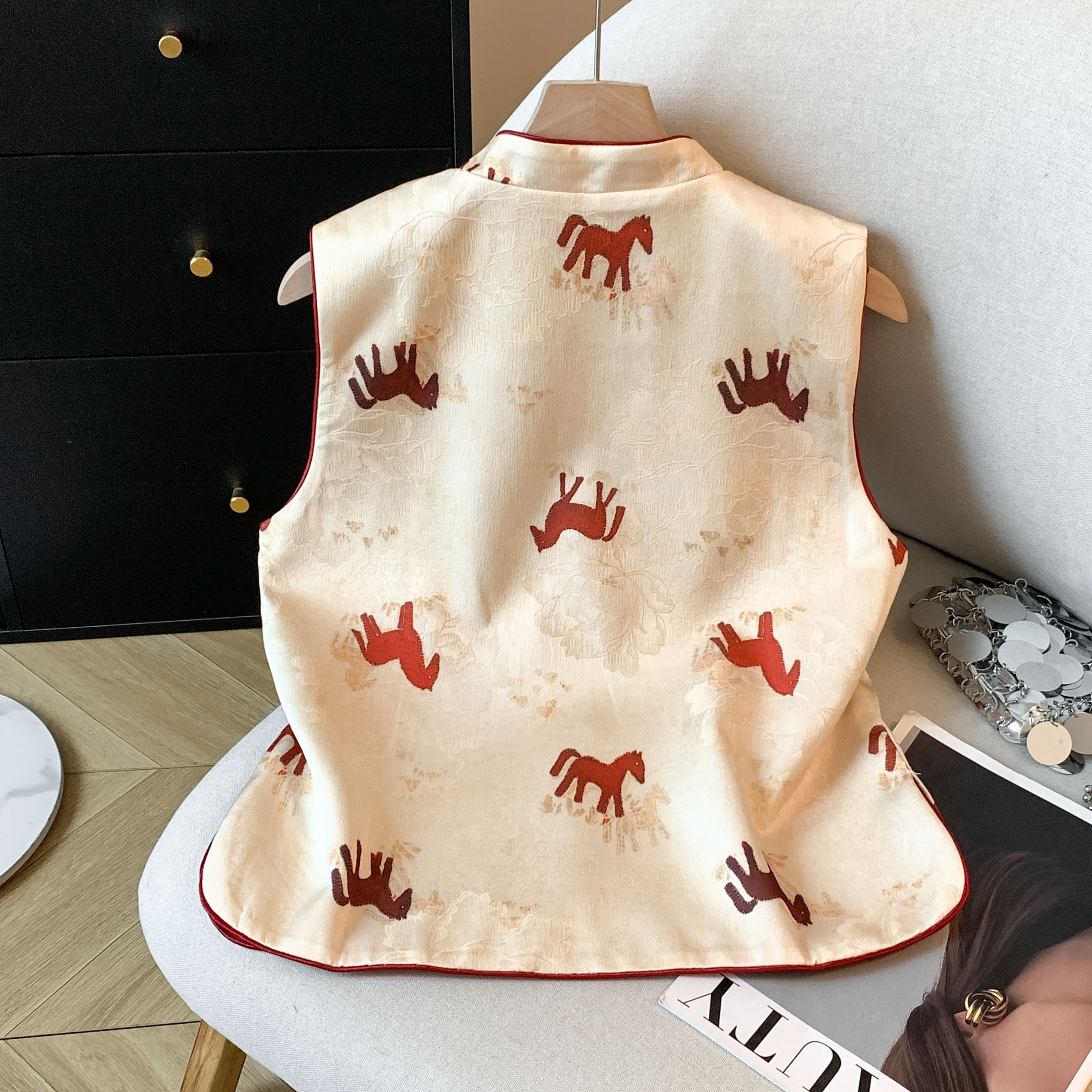 MY17671# 真丝宋锦高端马甲背心新款中式国风坎肩外搭双面双穿女裝貨源服裝批發