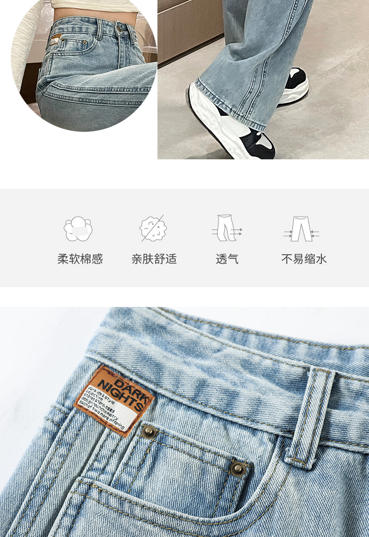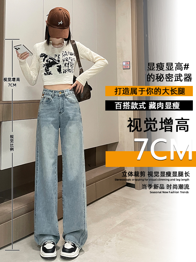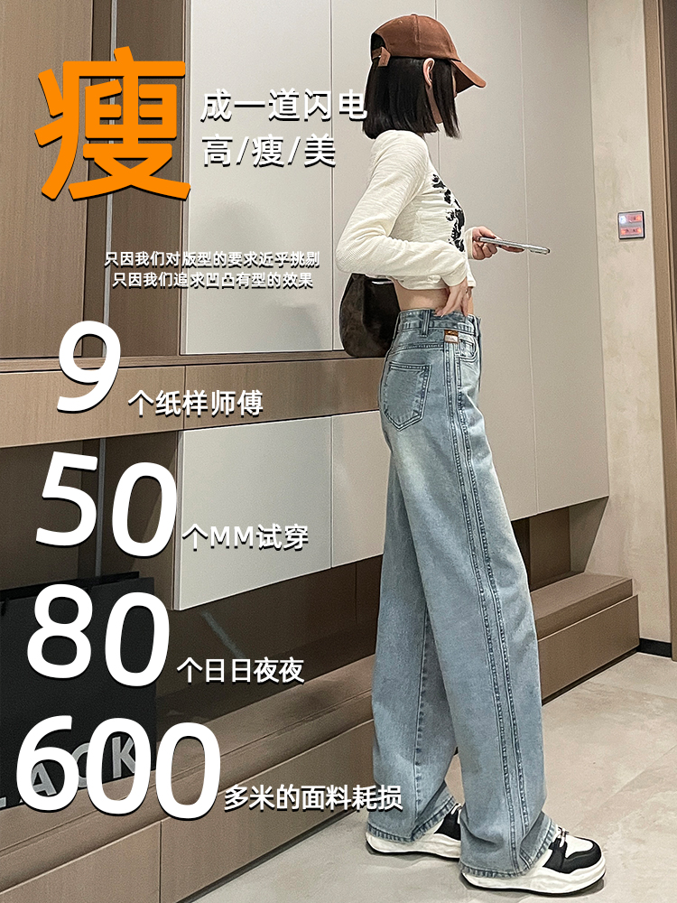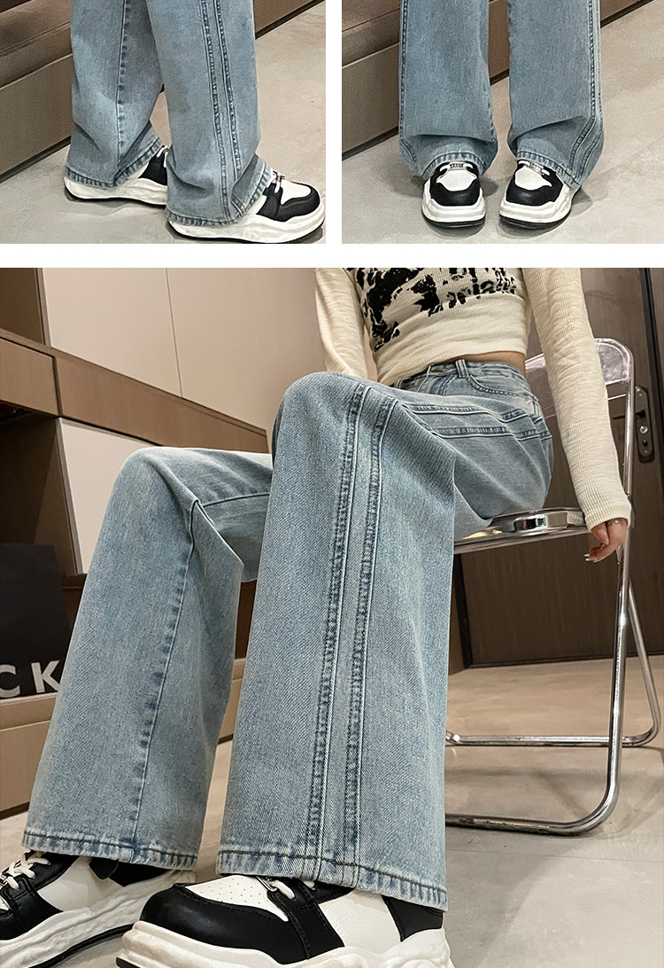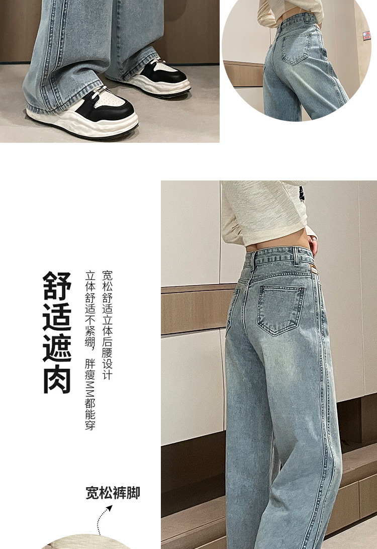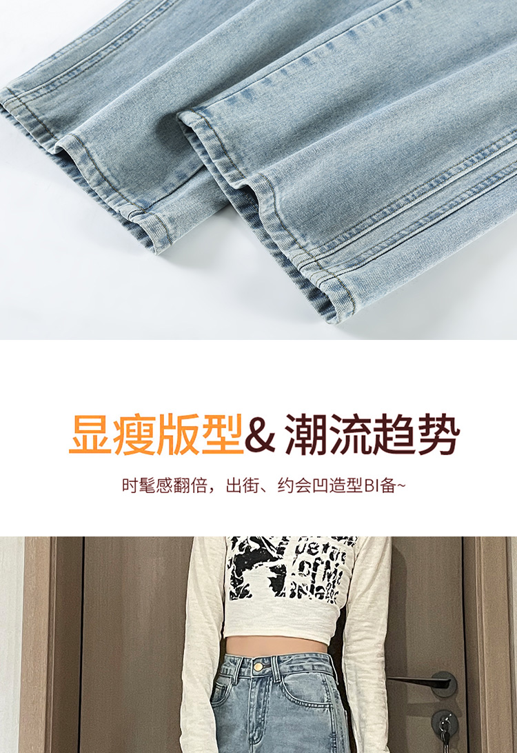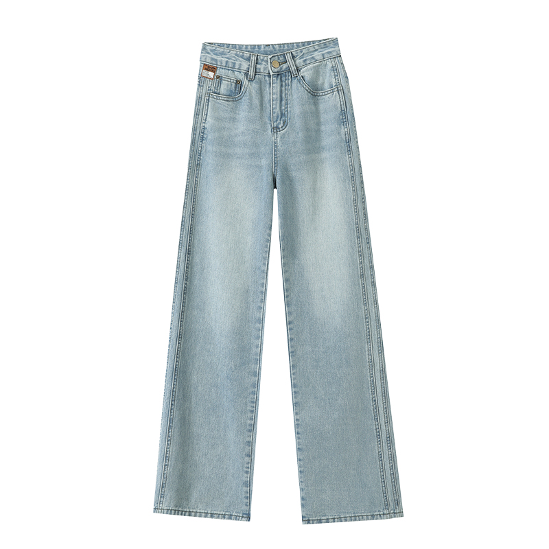 MY17672# 浅蓝色直筒牛仔裤新款高腰显瘦宽松窄版阔腿裤女裝貨源服裝批發