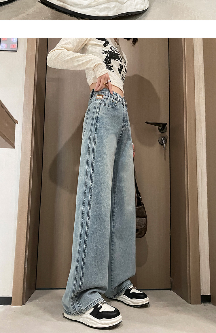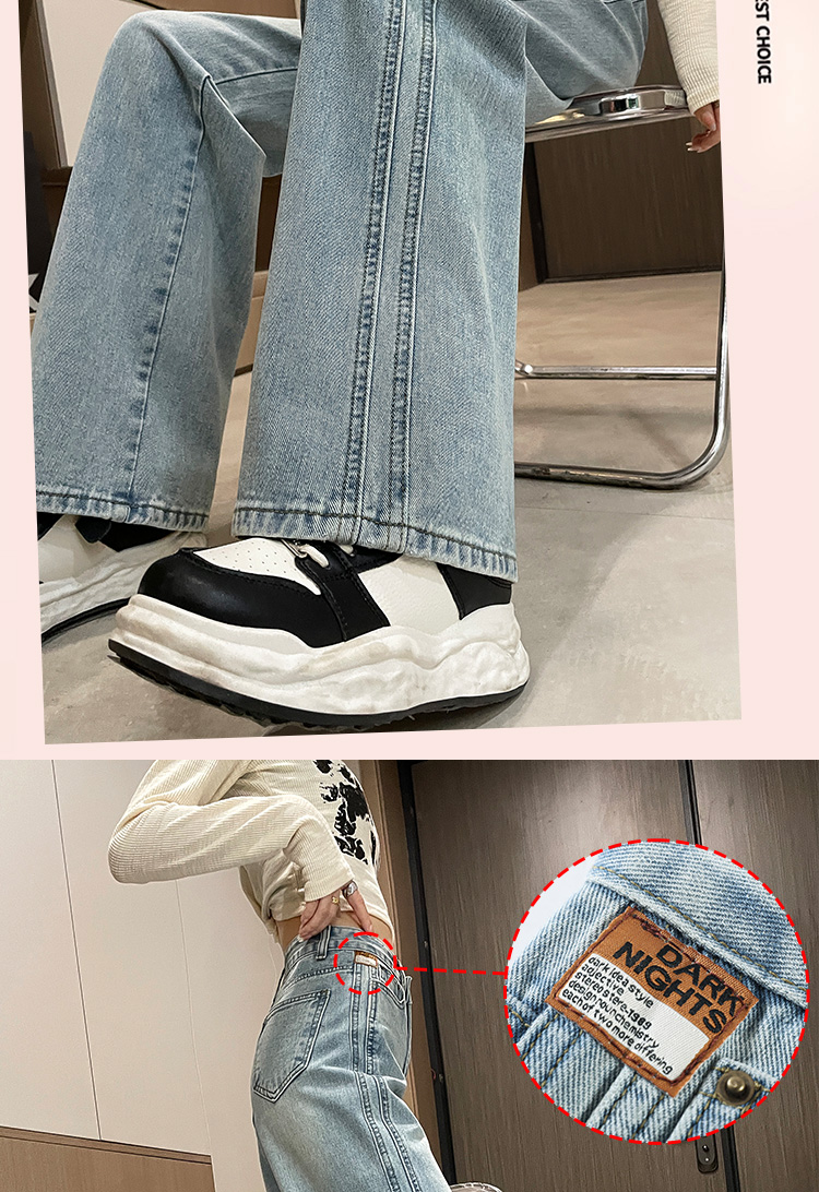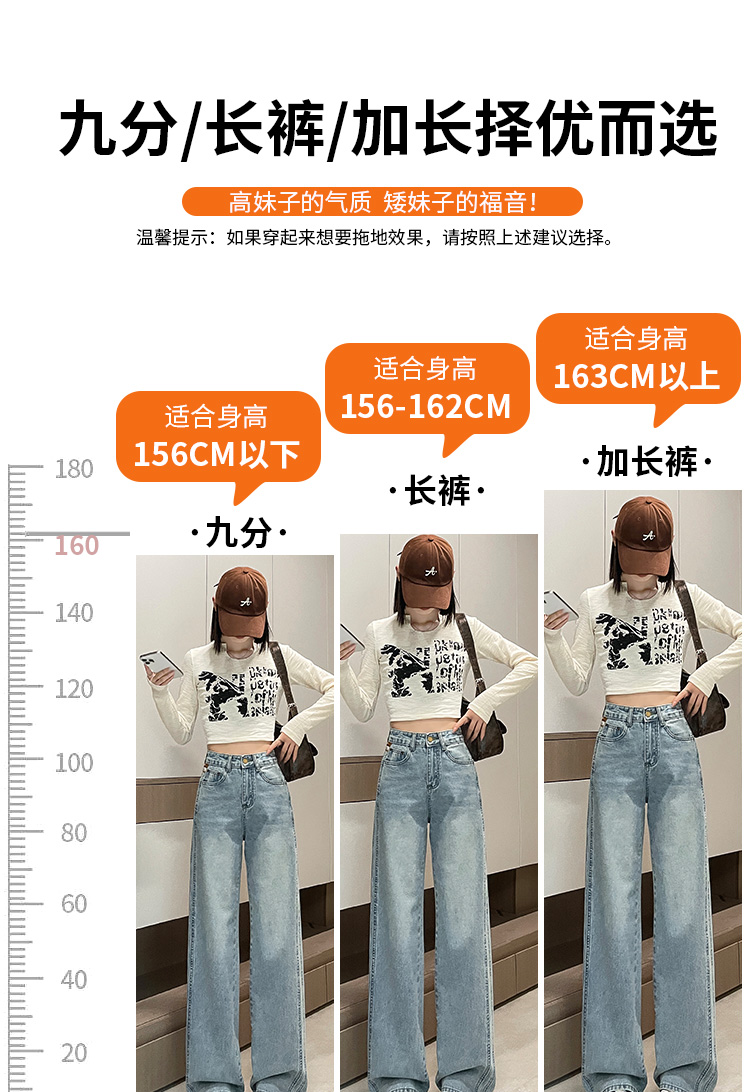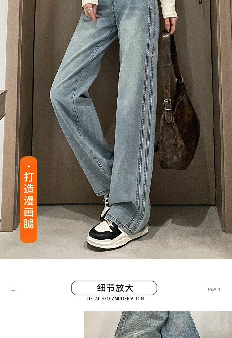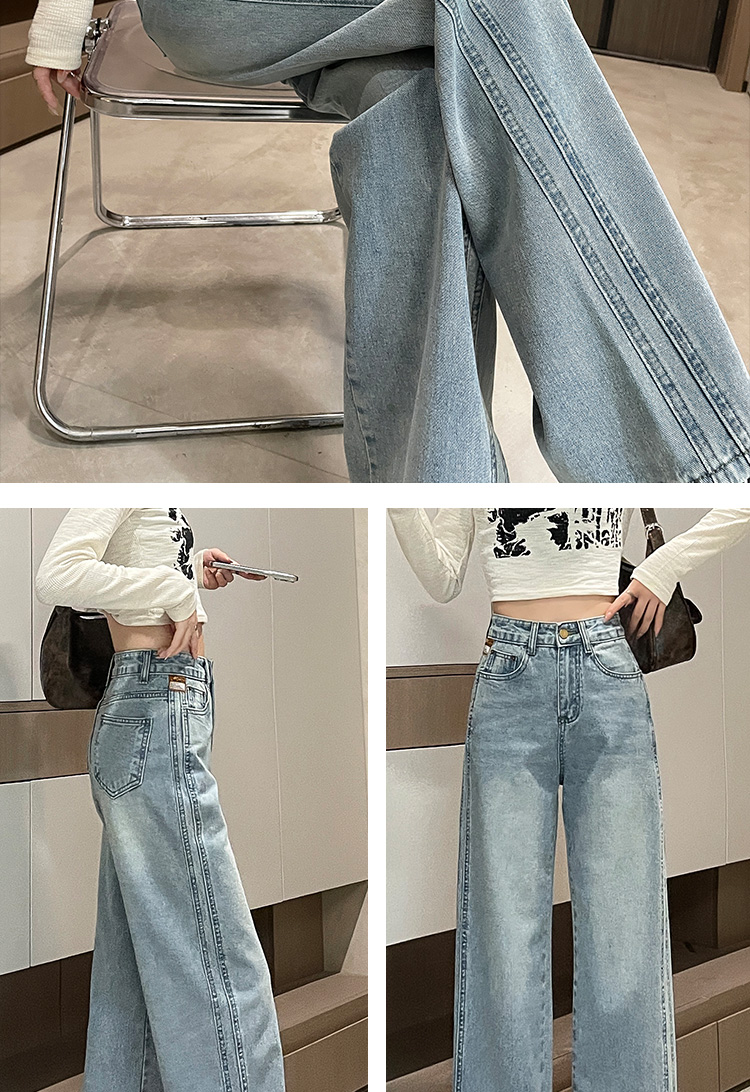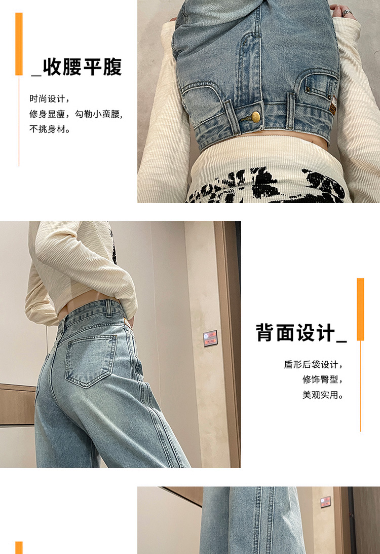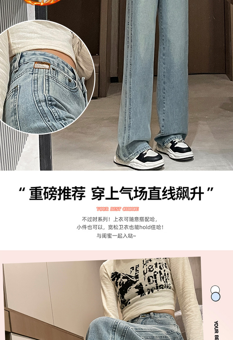 MY17672# 浅蓝色直筒牛仔裤新款高腰显瘦宽松窄版阔腿裤女裝貨源服裝批發