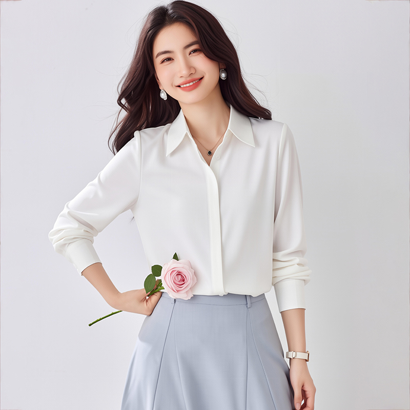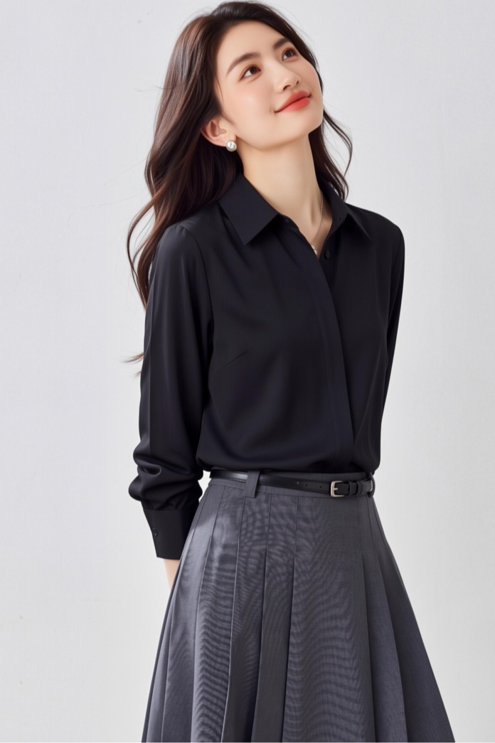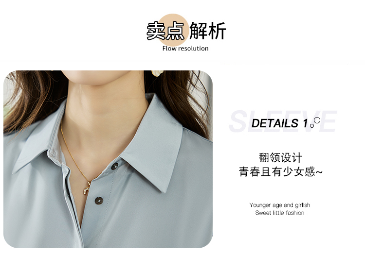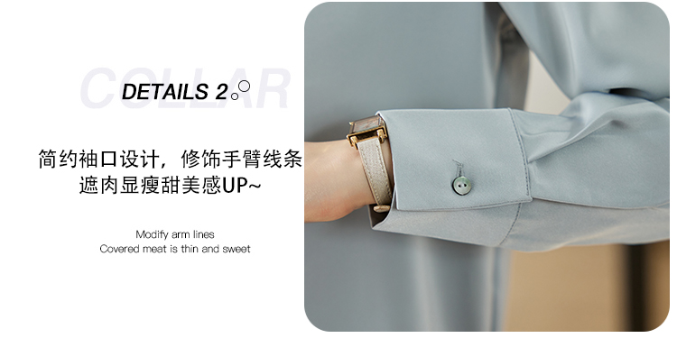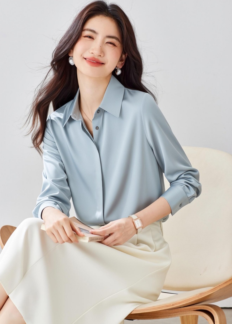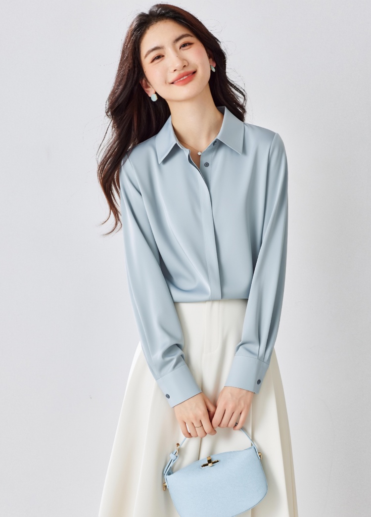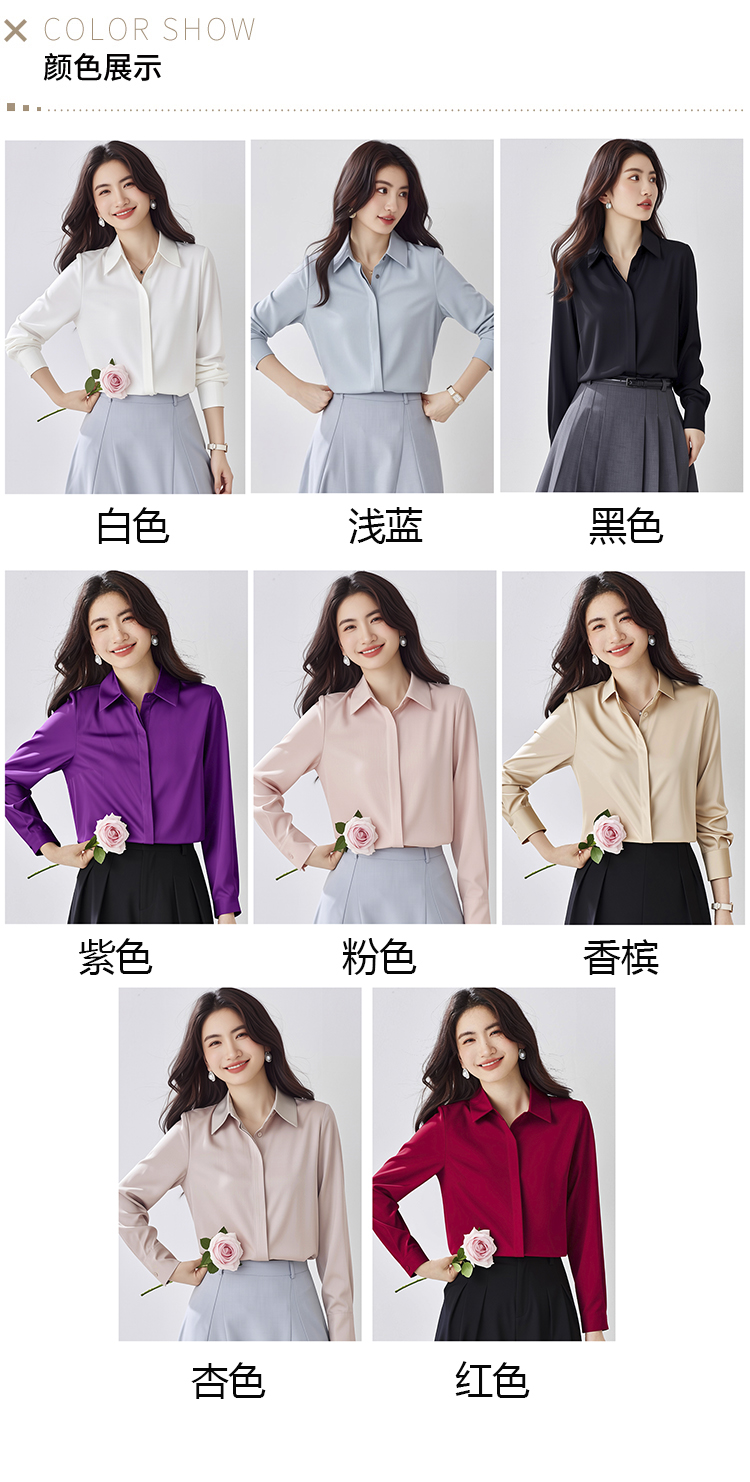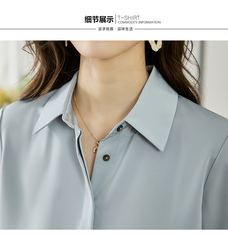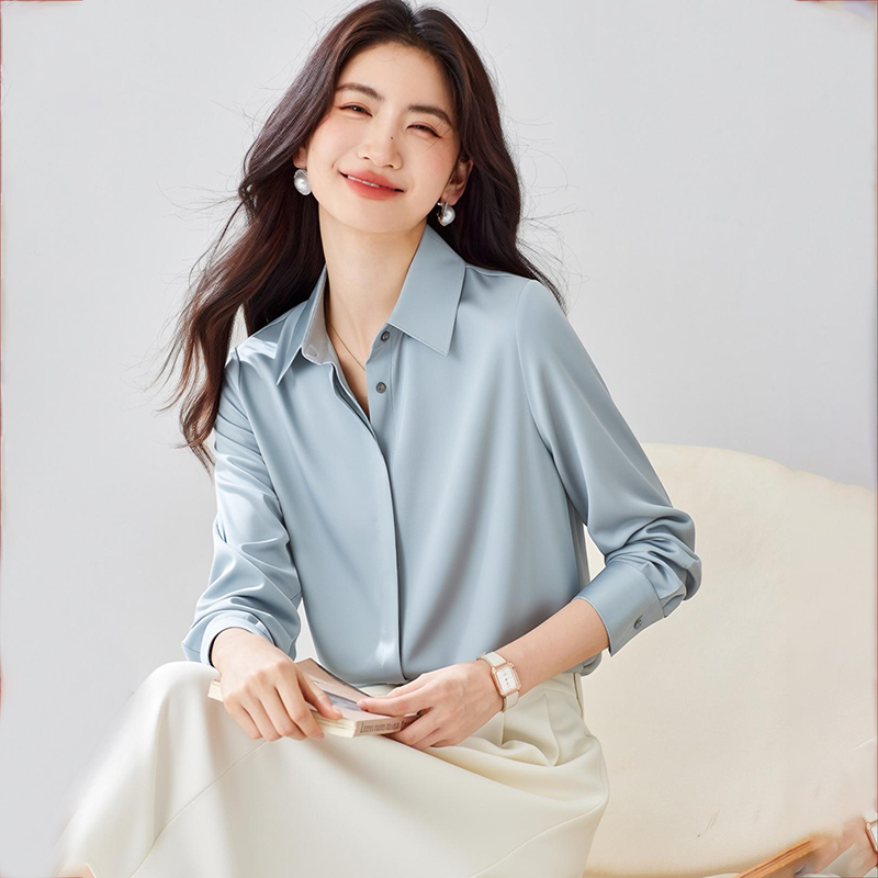 MY17676# 8色 春灰蓝色缎面衬衫女长袖秋百搭暗门襟复古港风垂感通勤轻熟女裝貨源服裝批發