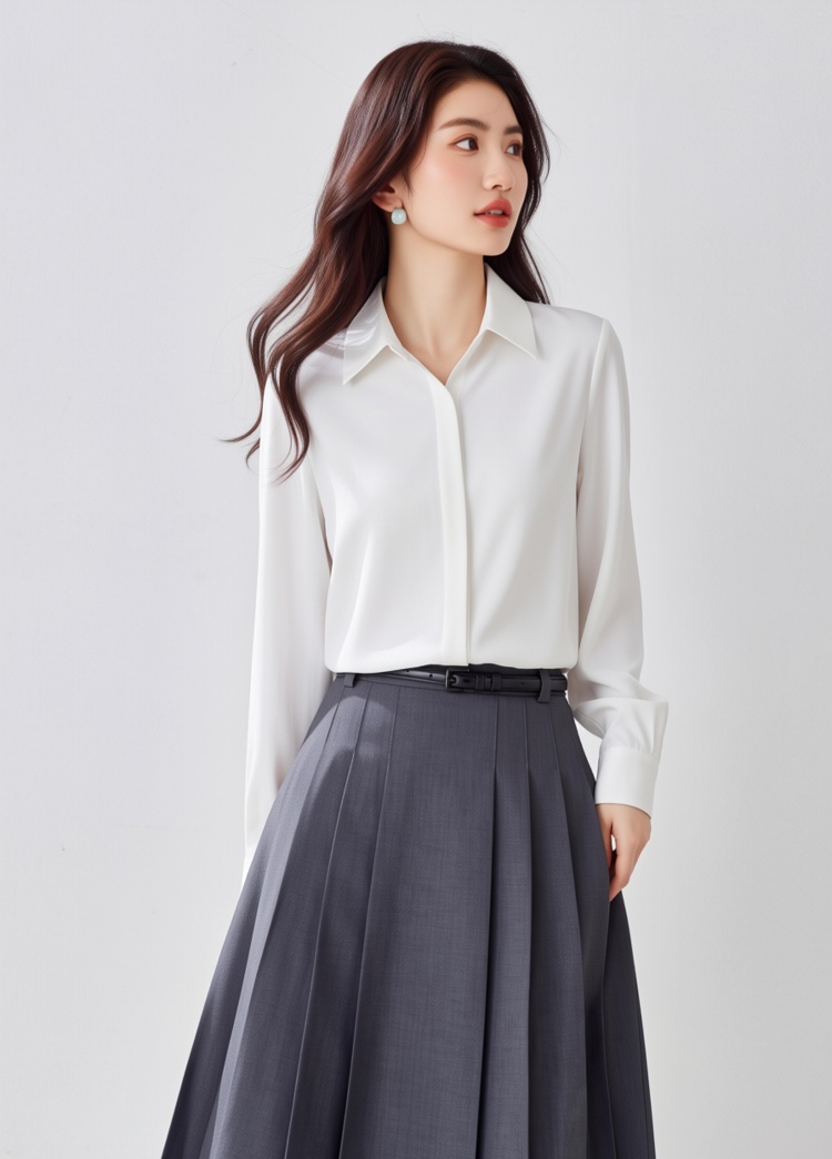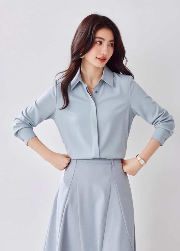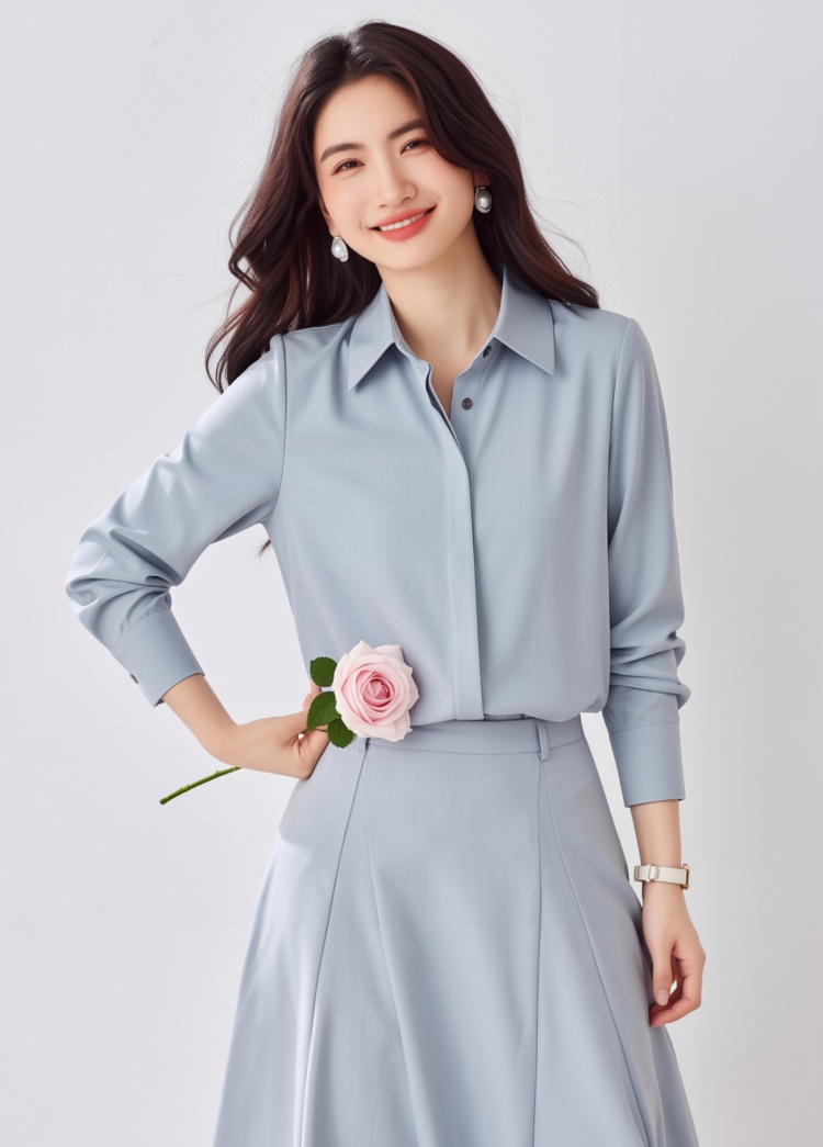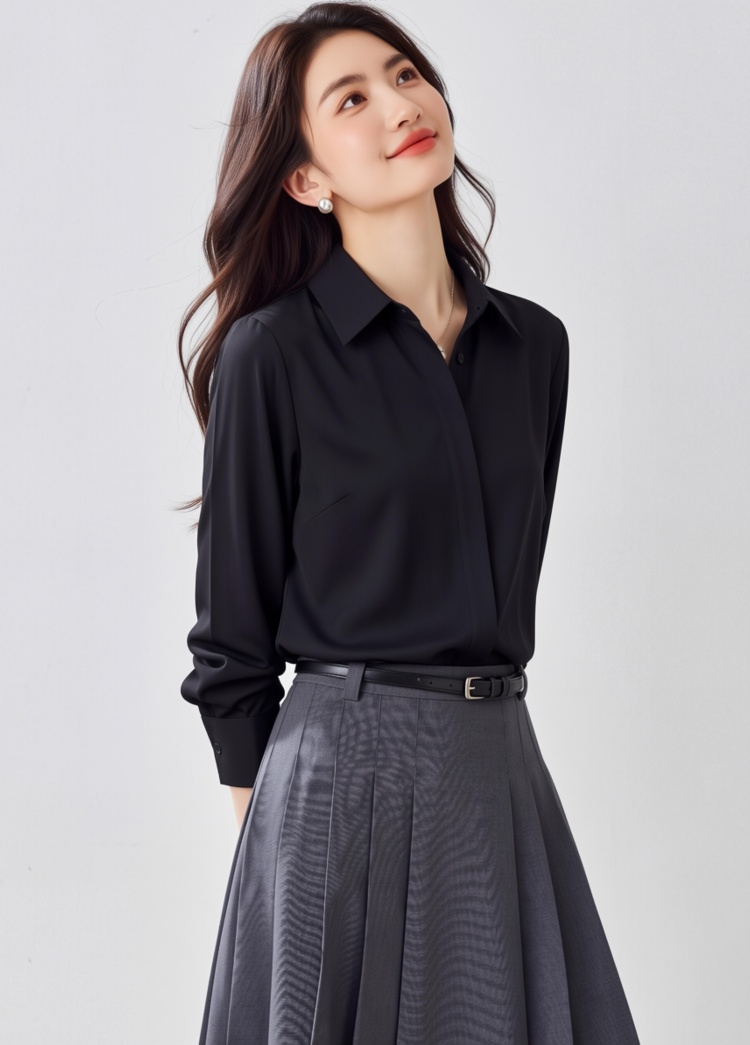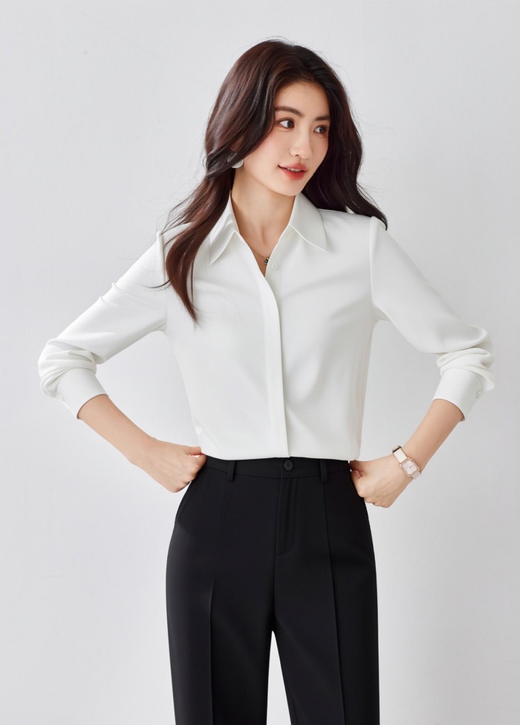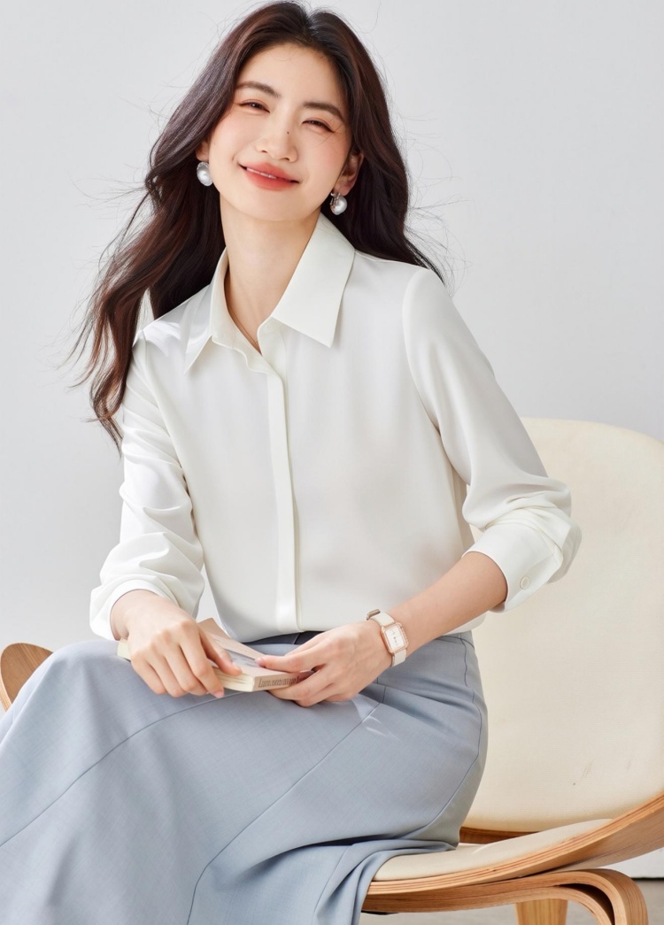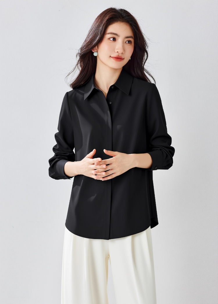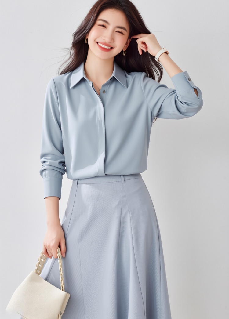 MY17676# 8色 春灰蓝色缎面衬衫女长袖秋百搭暗门襟复古港风垂感通勤轻熟女裝貨源服裝批發