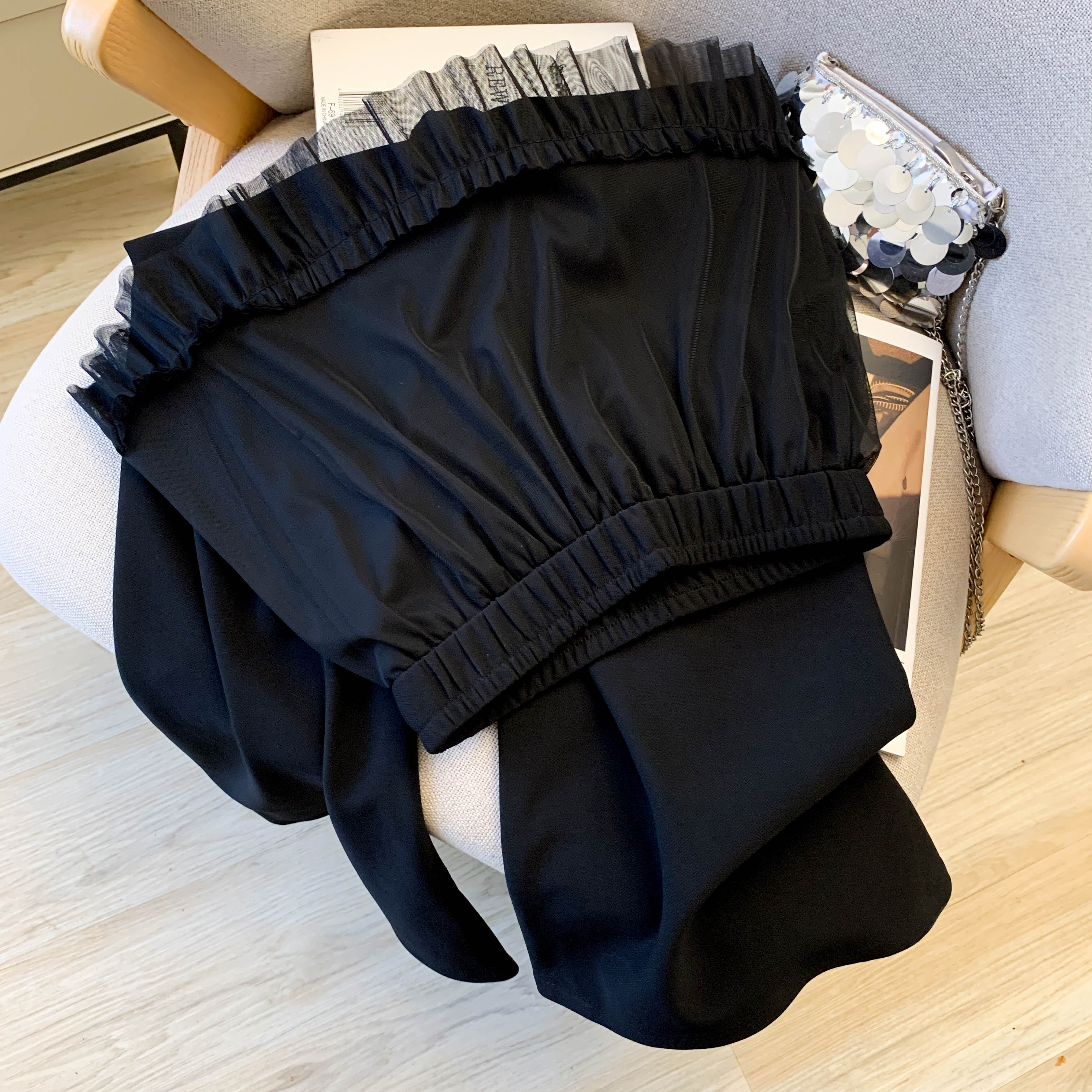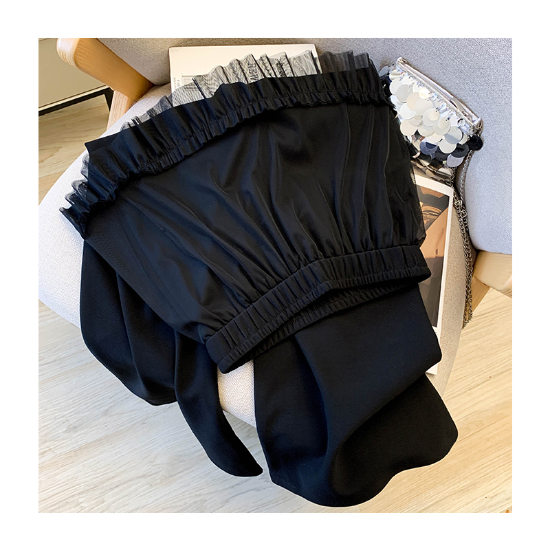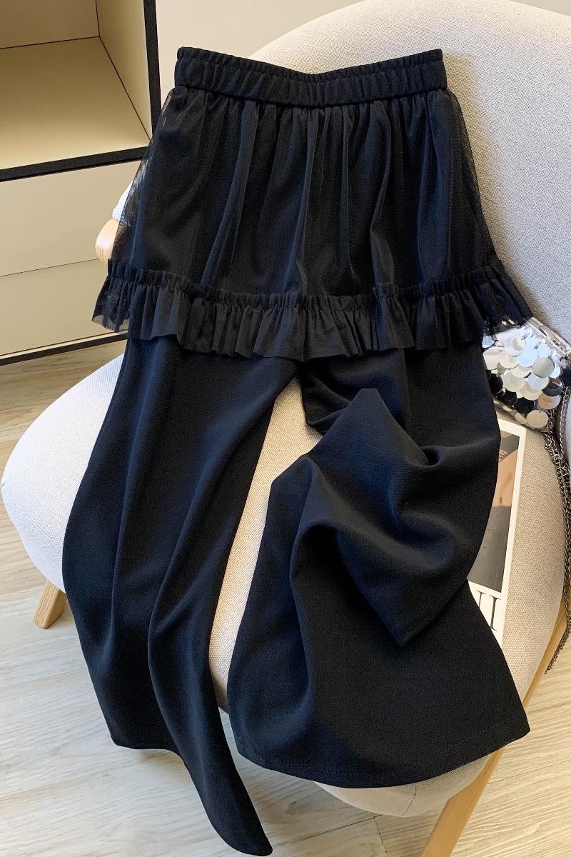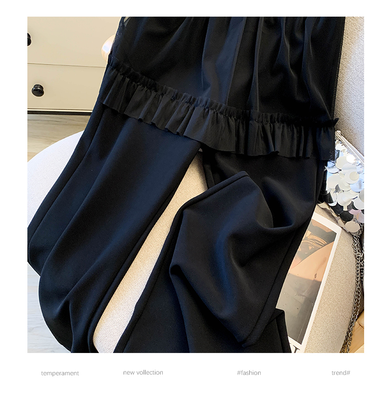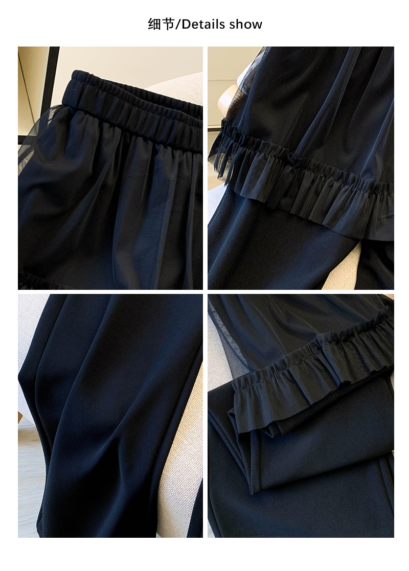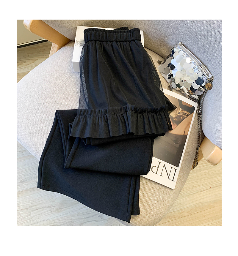 MY17681# 新款小个子网纱屁帘微喇裤女高腰弹力显瘦直筒喇叭裤女裝貨源服裝批發