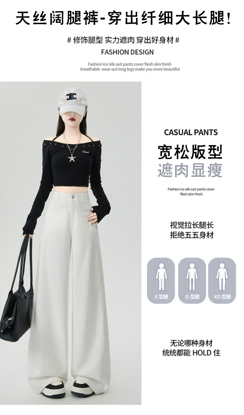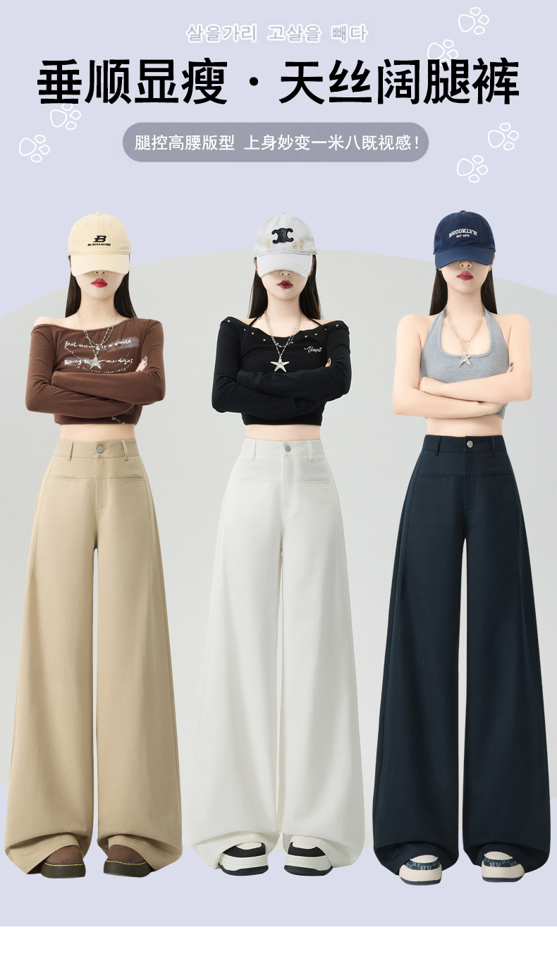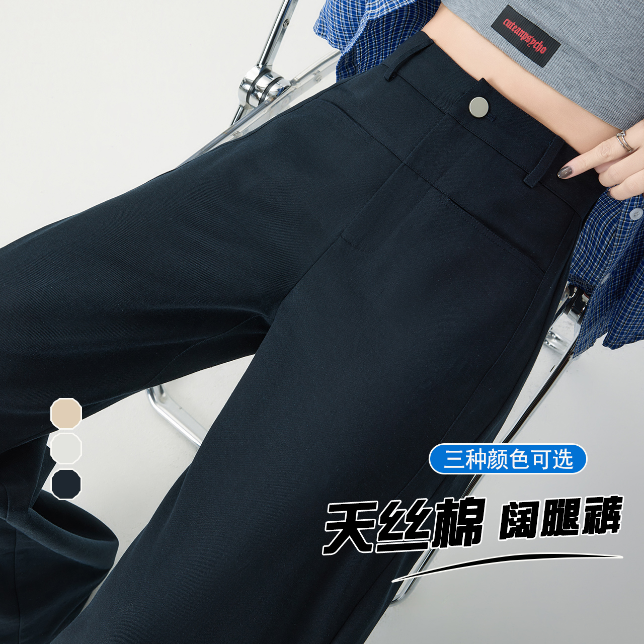 MY17682# 莱赛尔天丝洗水棉阔腿裤新款宽松显瘦垂感工装休闲裤女裝貨源服裝批發
