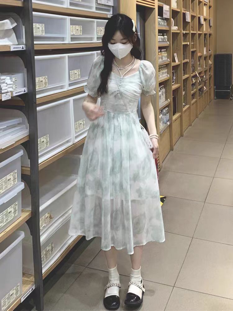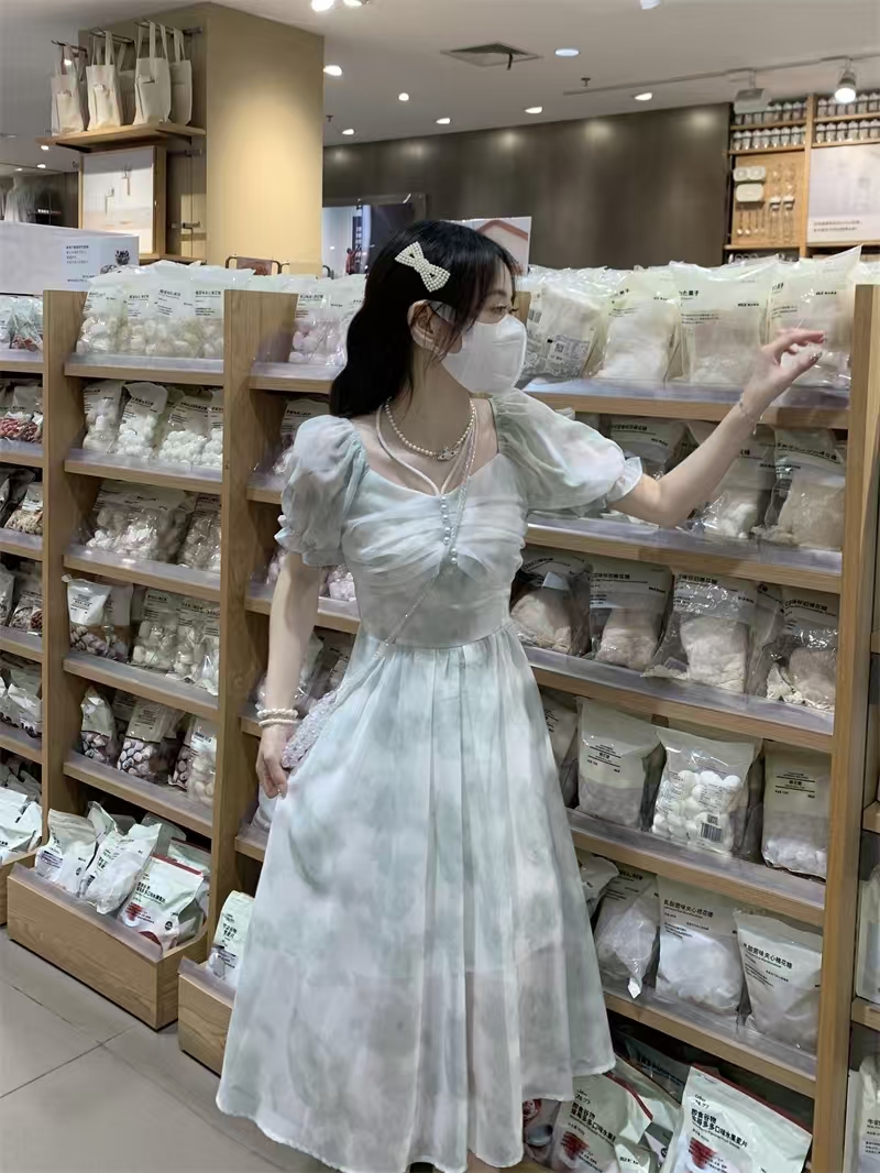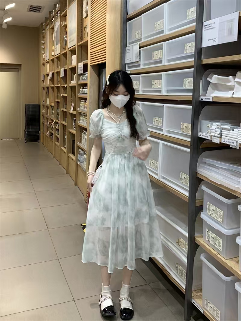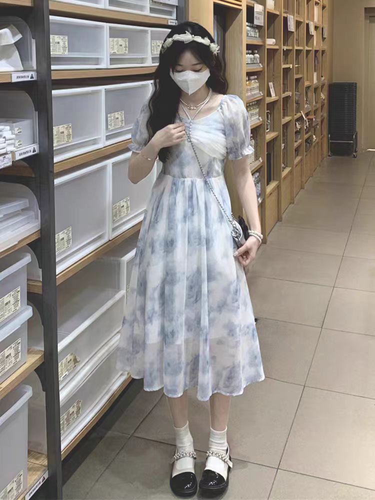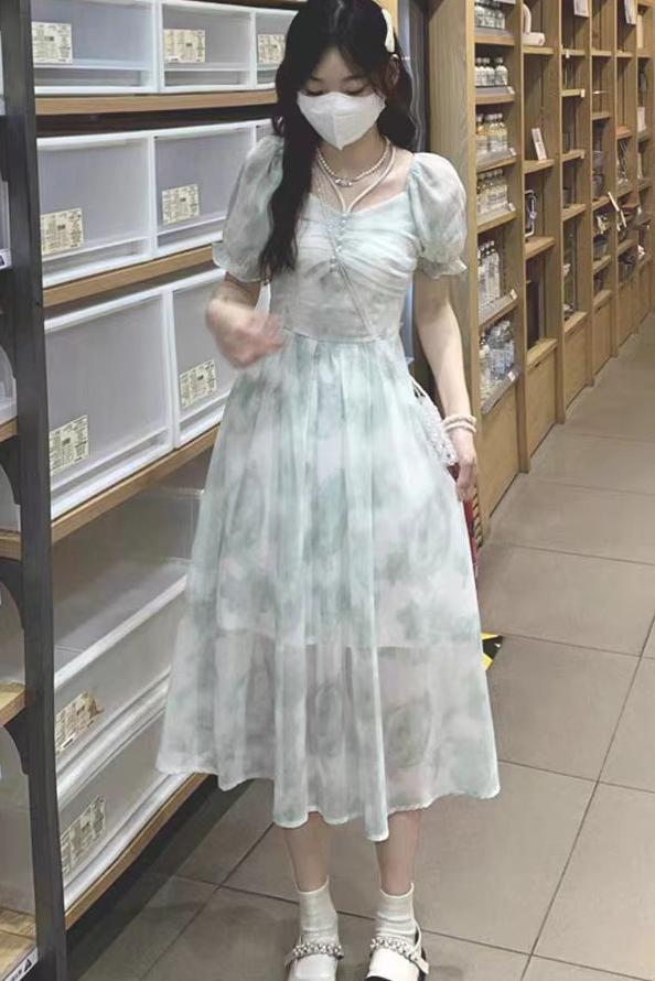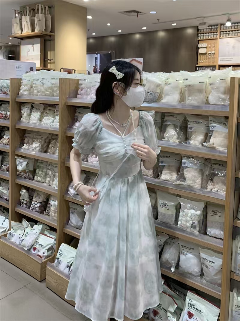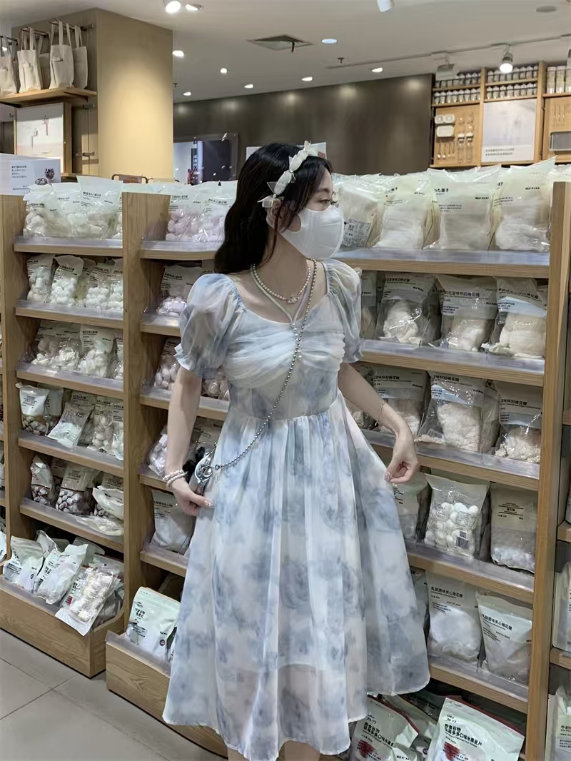 MY17695# 茶歇法式碎花连衣裙女夏小清新气质甜美仙女在逃公主温柔初恋长裙女裝貨源服裝批發