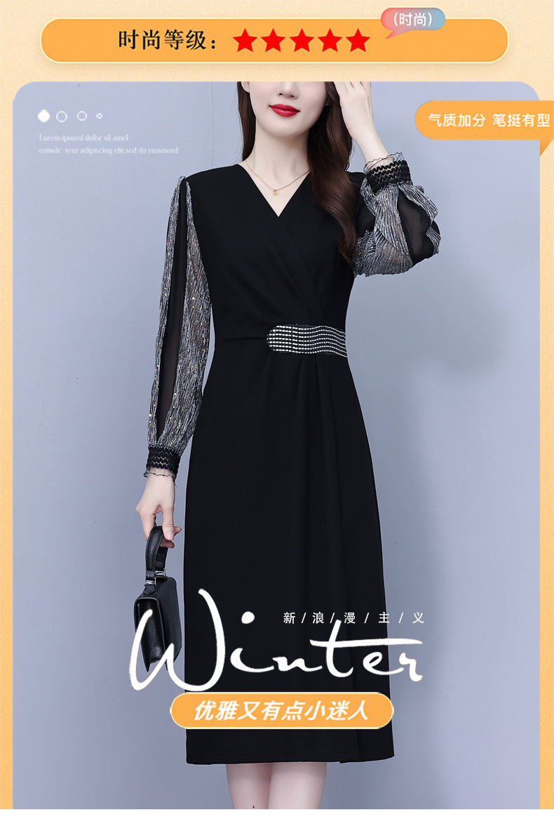MY17698# 轻奢高级感长袖连衣裙新款贵夫人时尚气质年轻妈妈裙子女裝貨源服裝批發