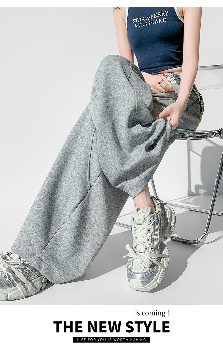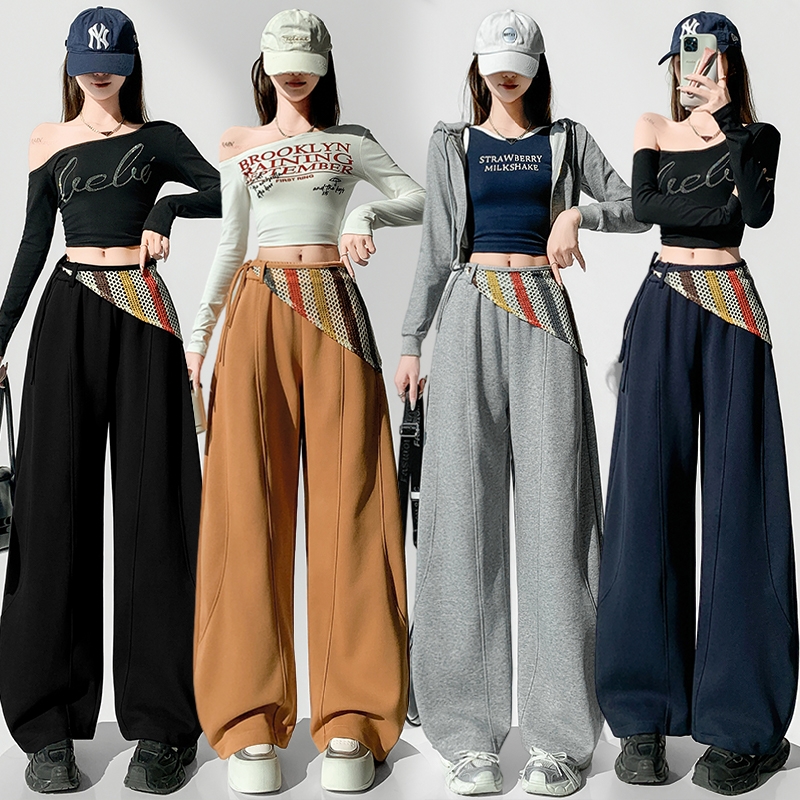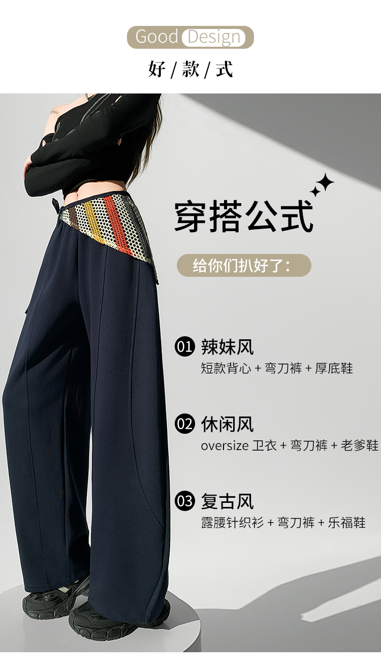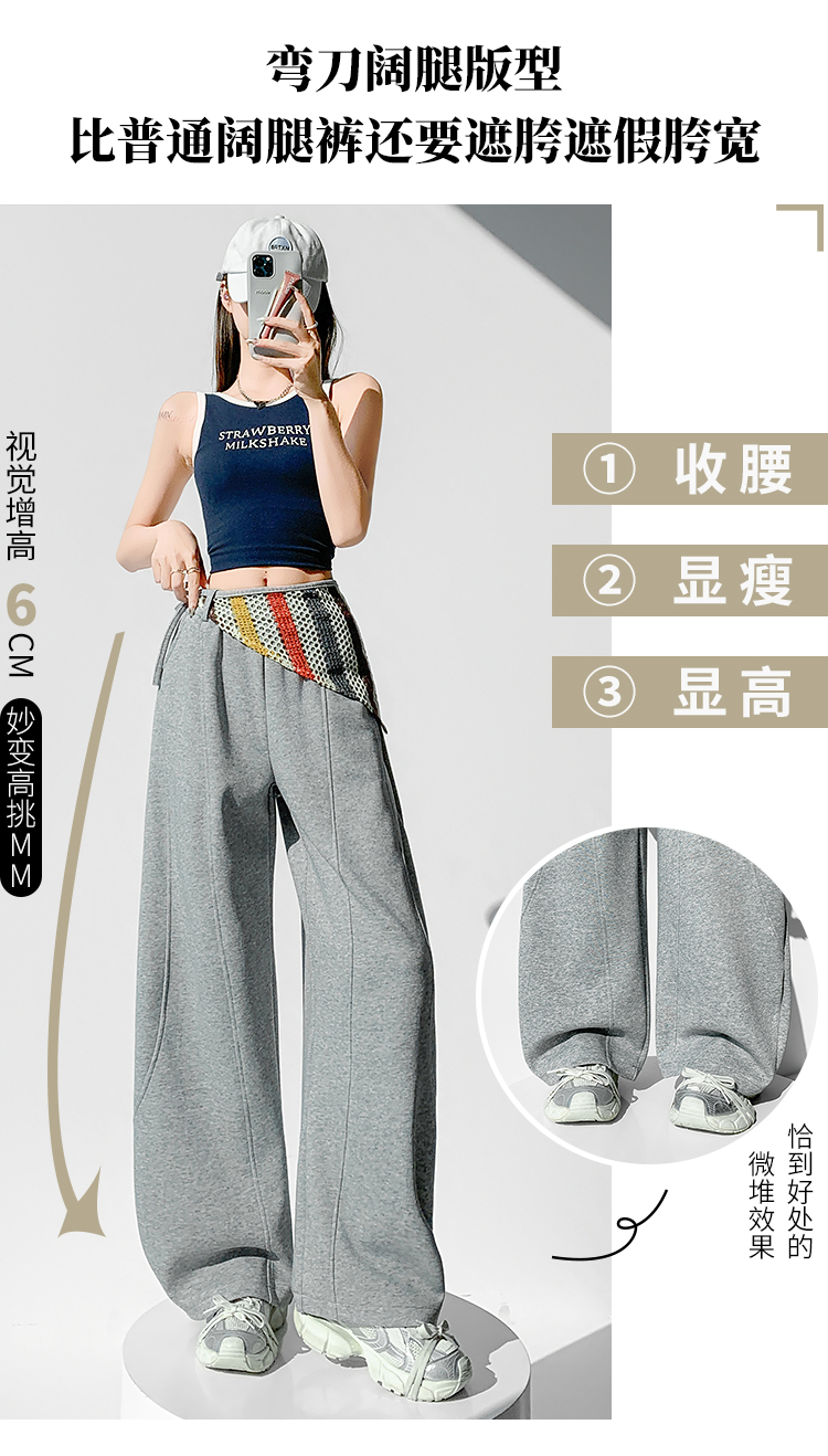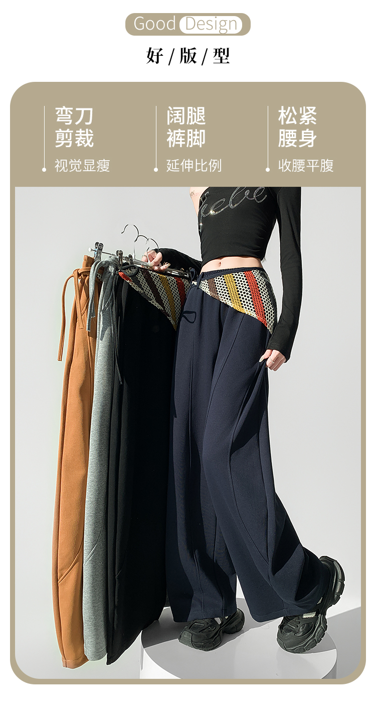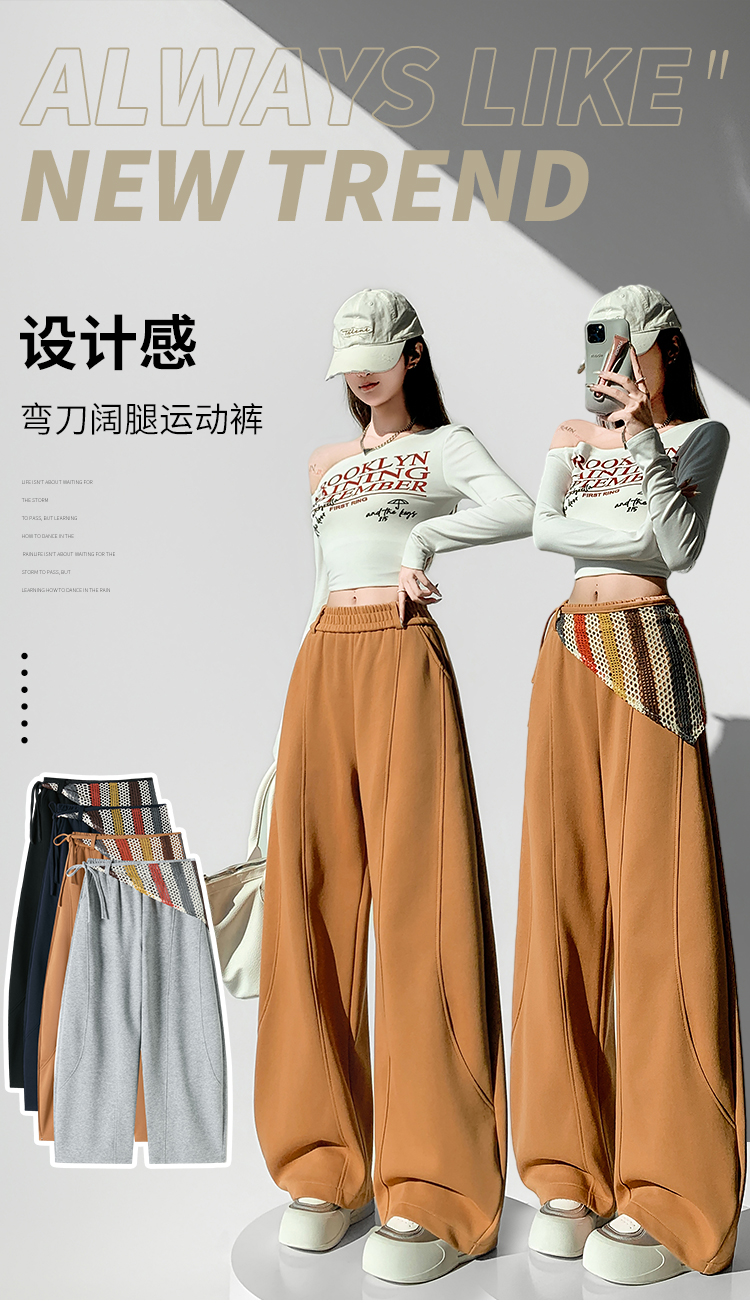 MY17704# 设计感美式弯刀运动卫裤新款高腰显瘦直筒阔腿裤子女裝貨源服裝批發