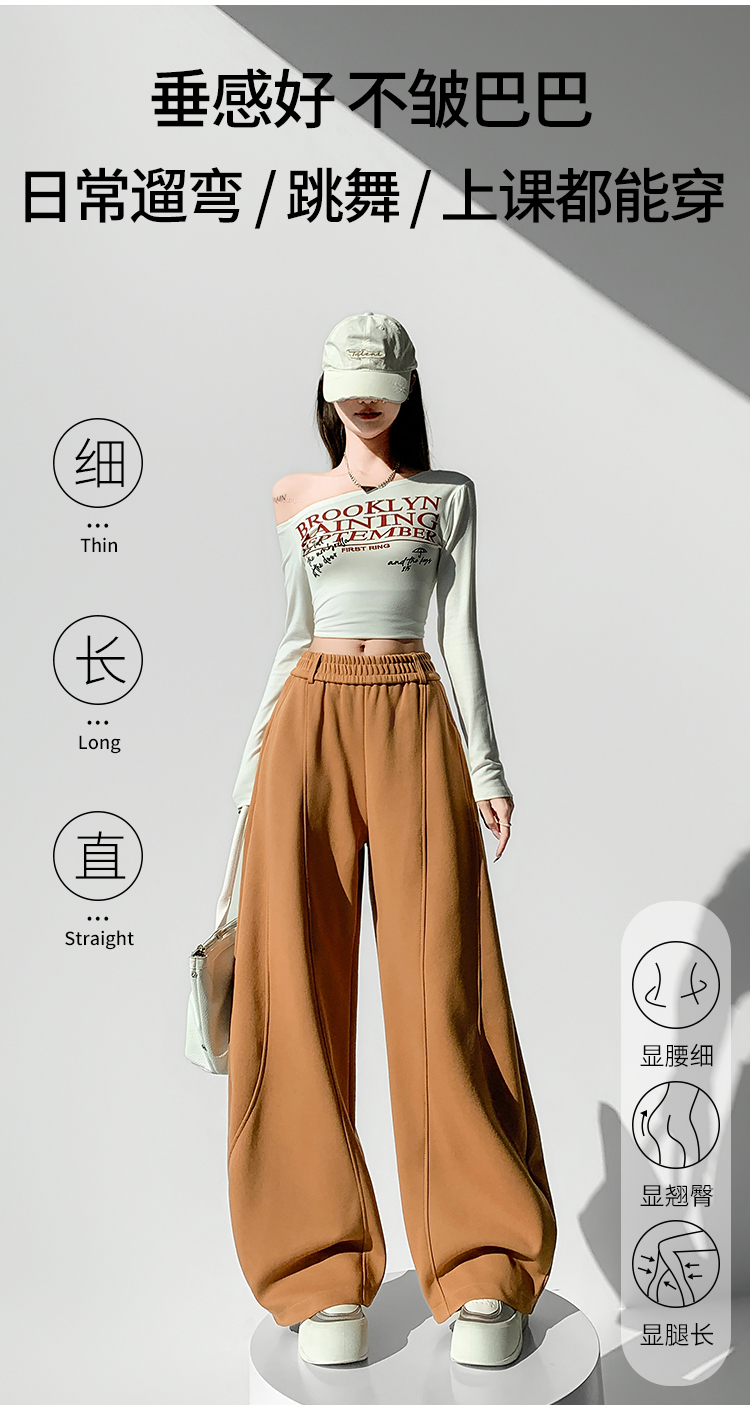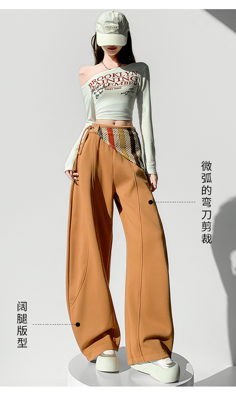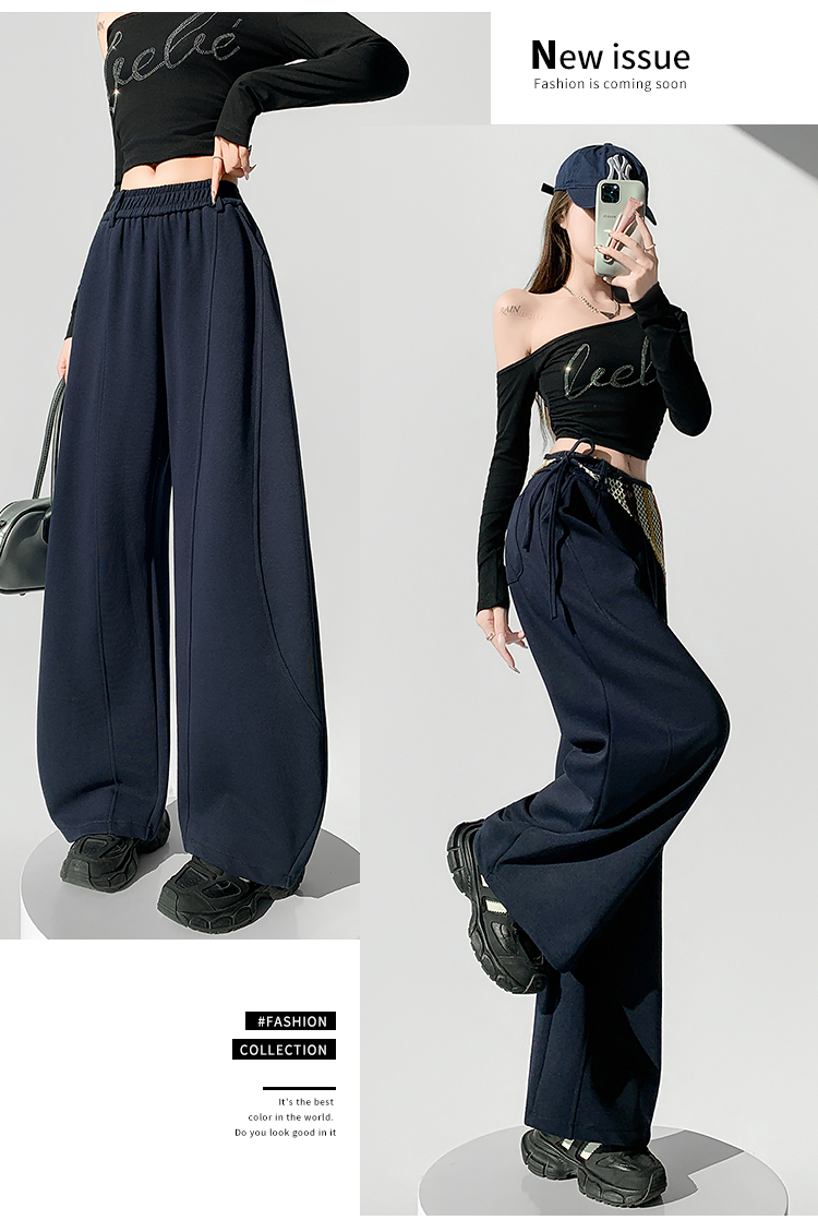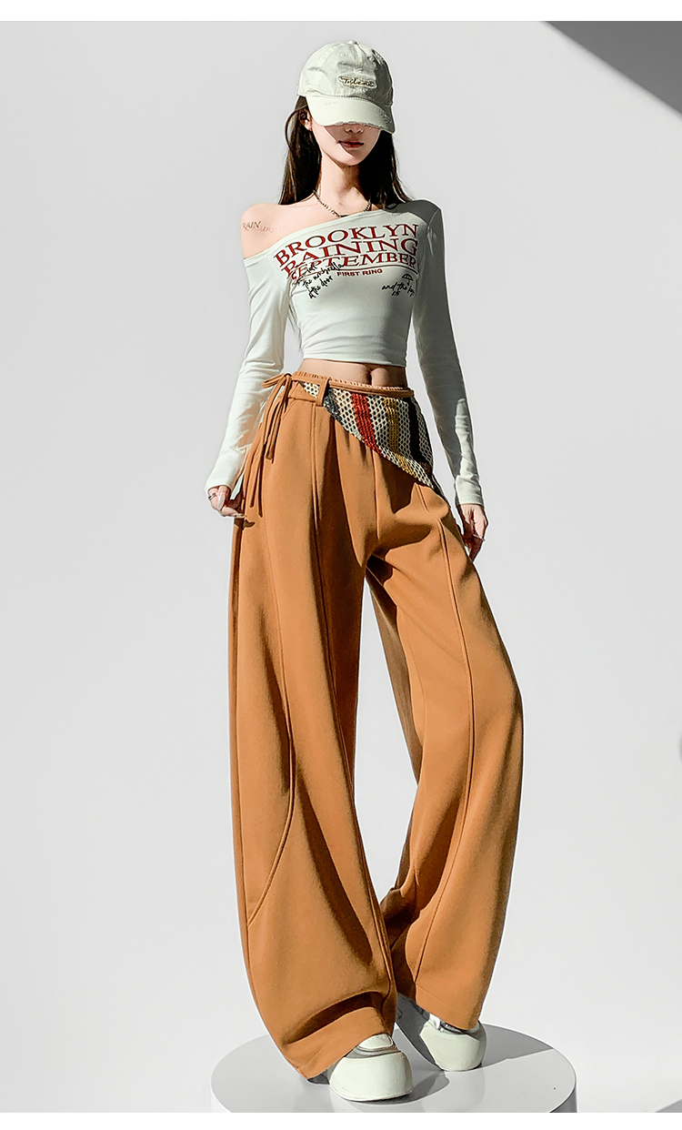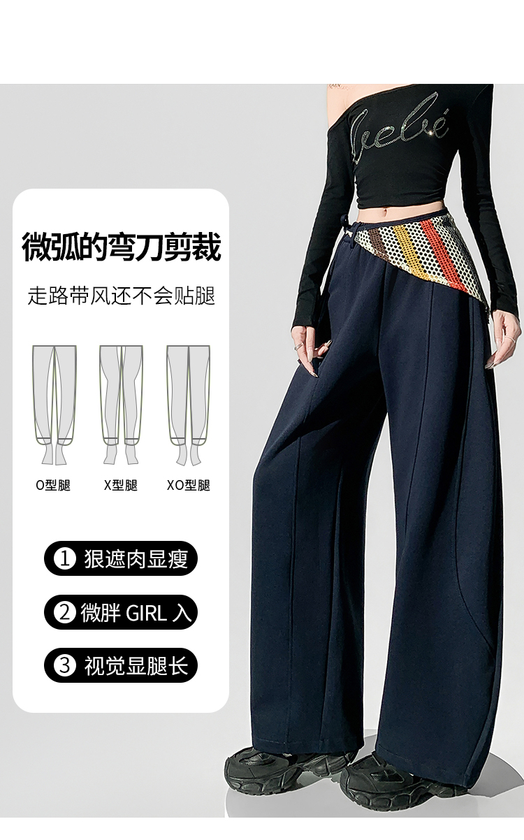 MY17704# 设计感美式弯刀运动卫裤新款高腰显瘦直筒阔腿裤子女裝貨源服裝批發