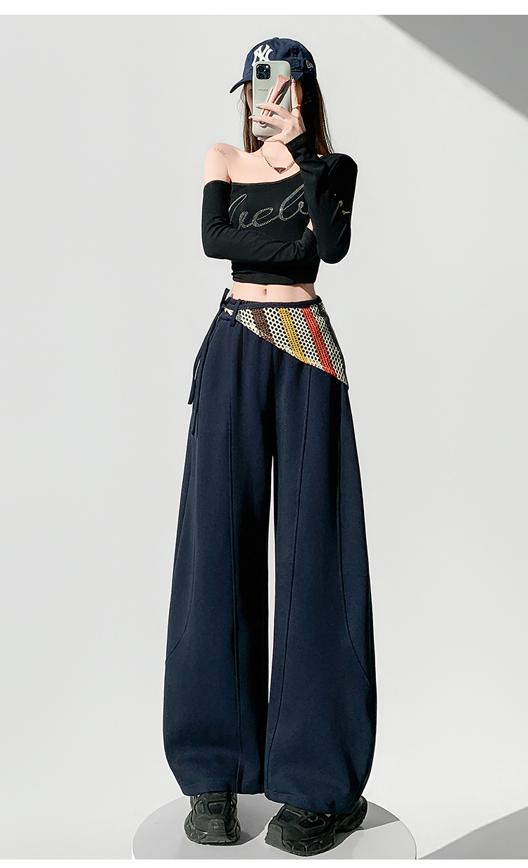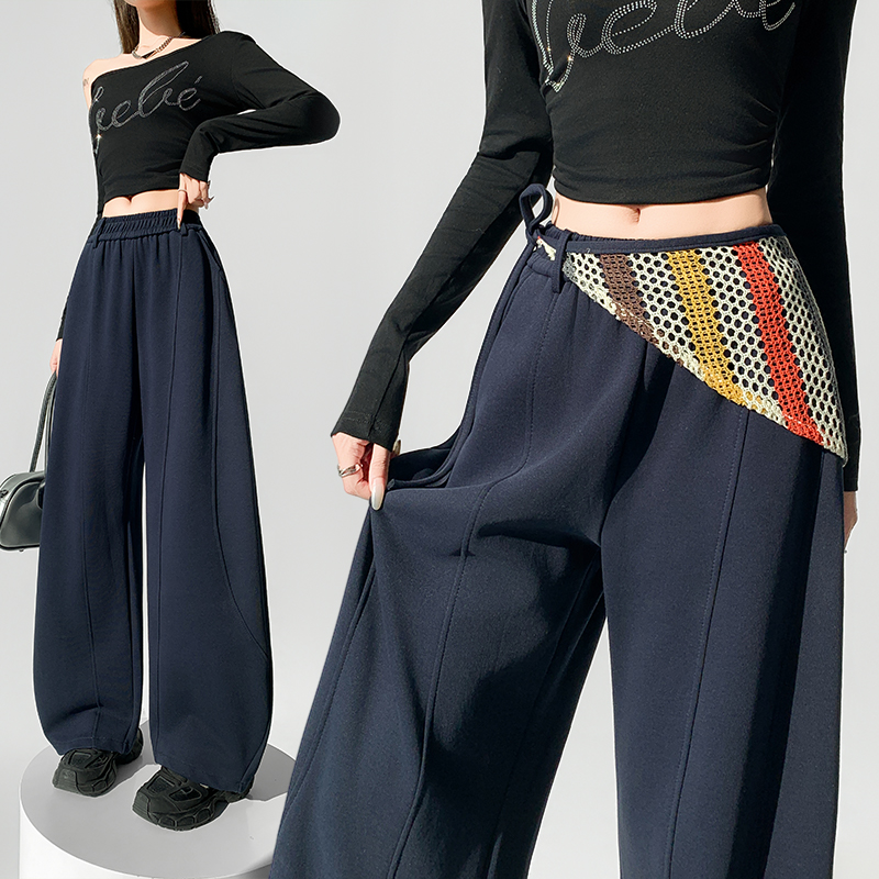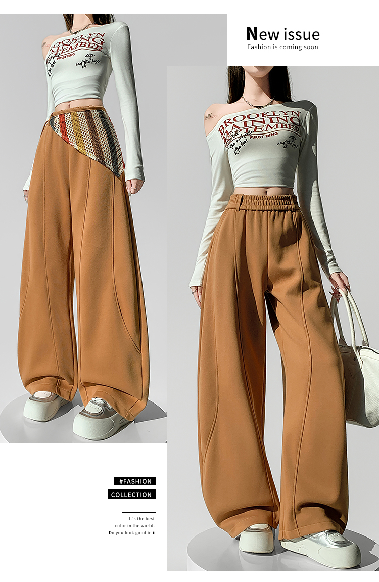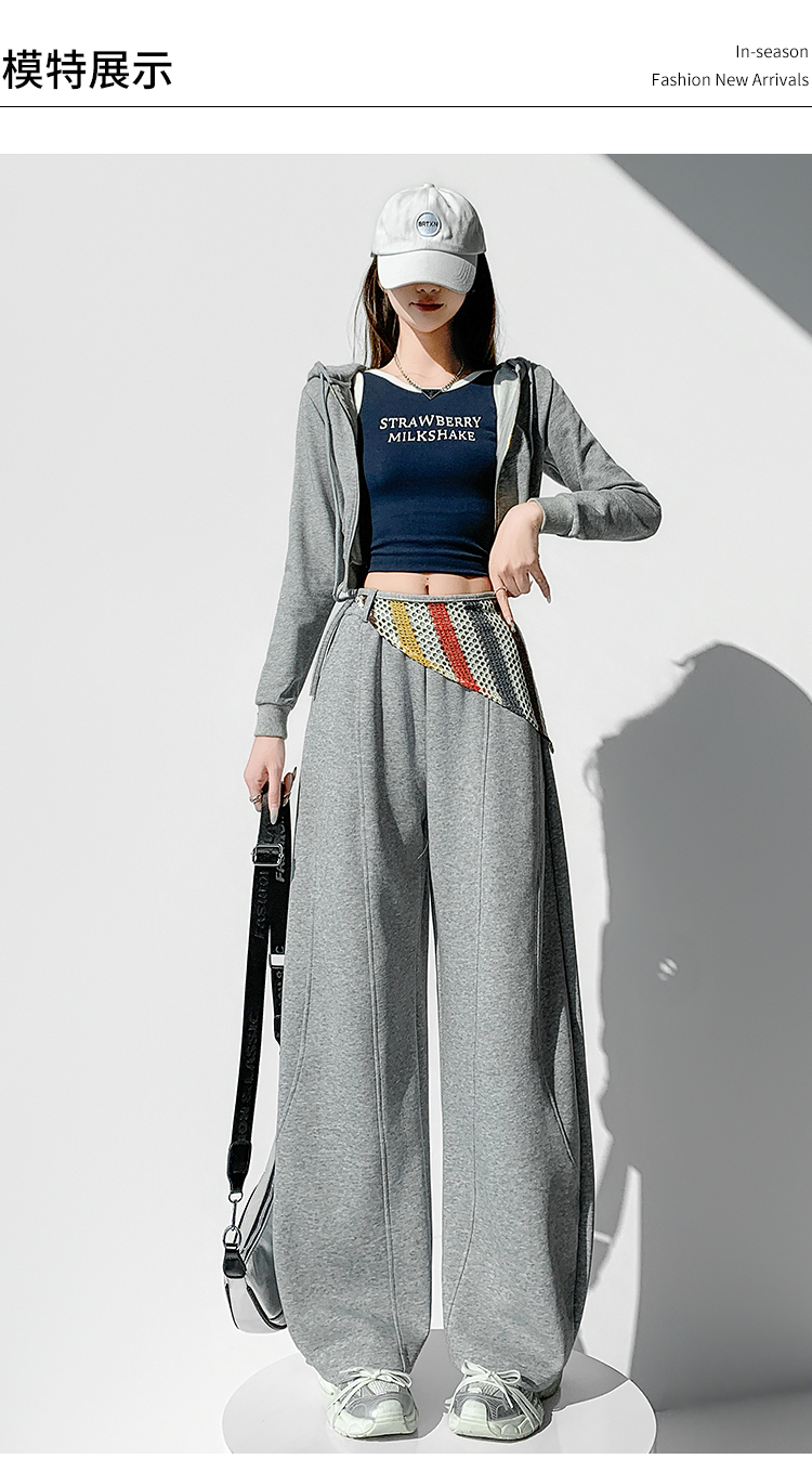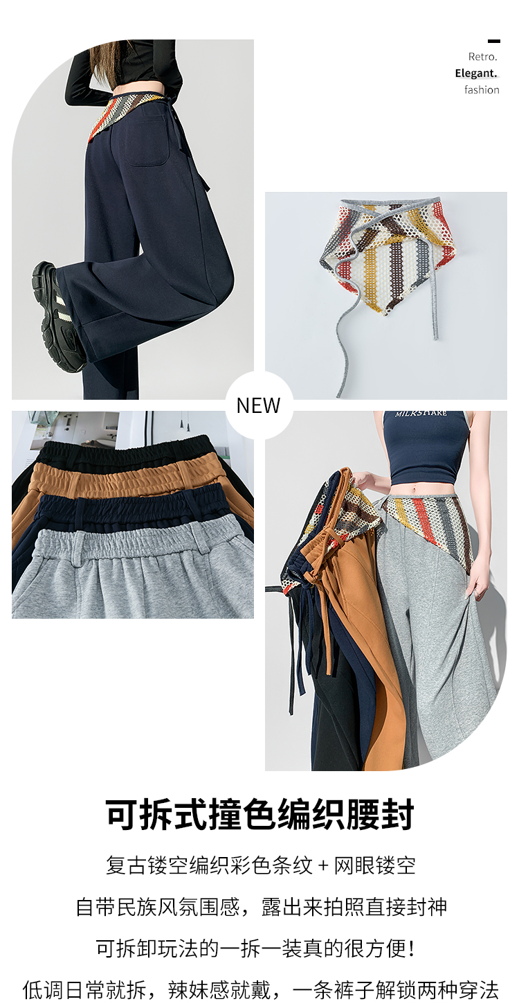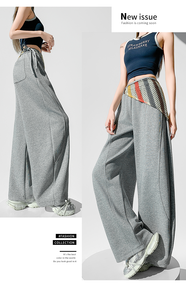 MY17704# 设计感美式弯刀运动卫裤新款高腰显瘦直筒阔腿裤子女裝貨源服裝批發
