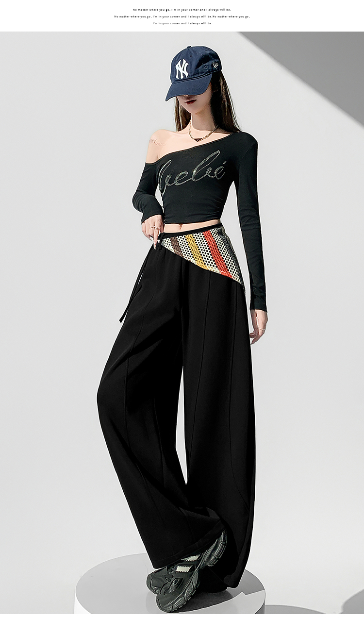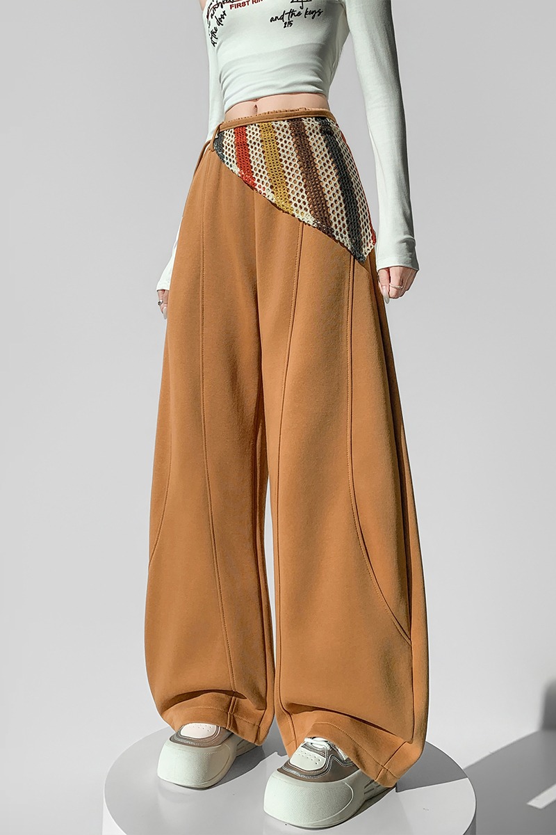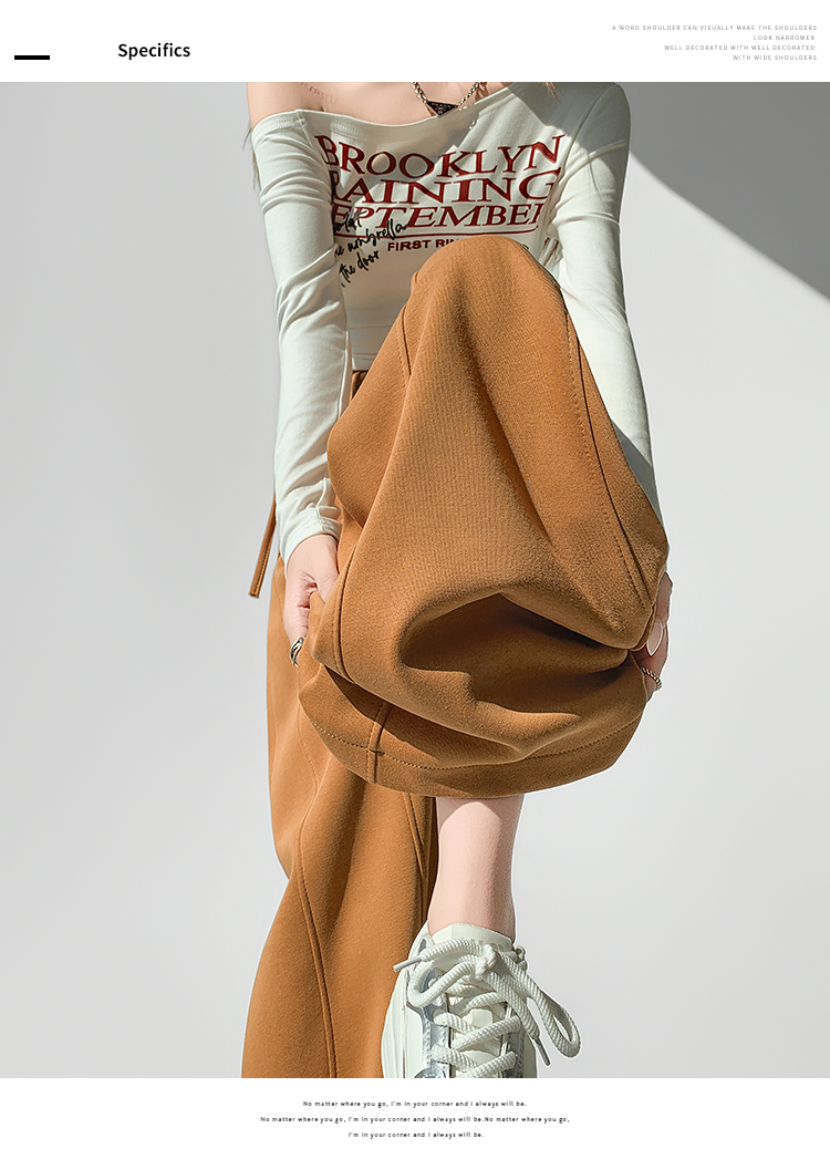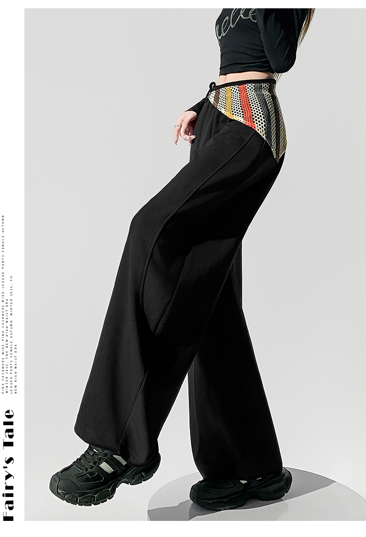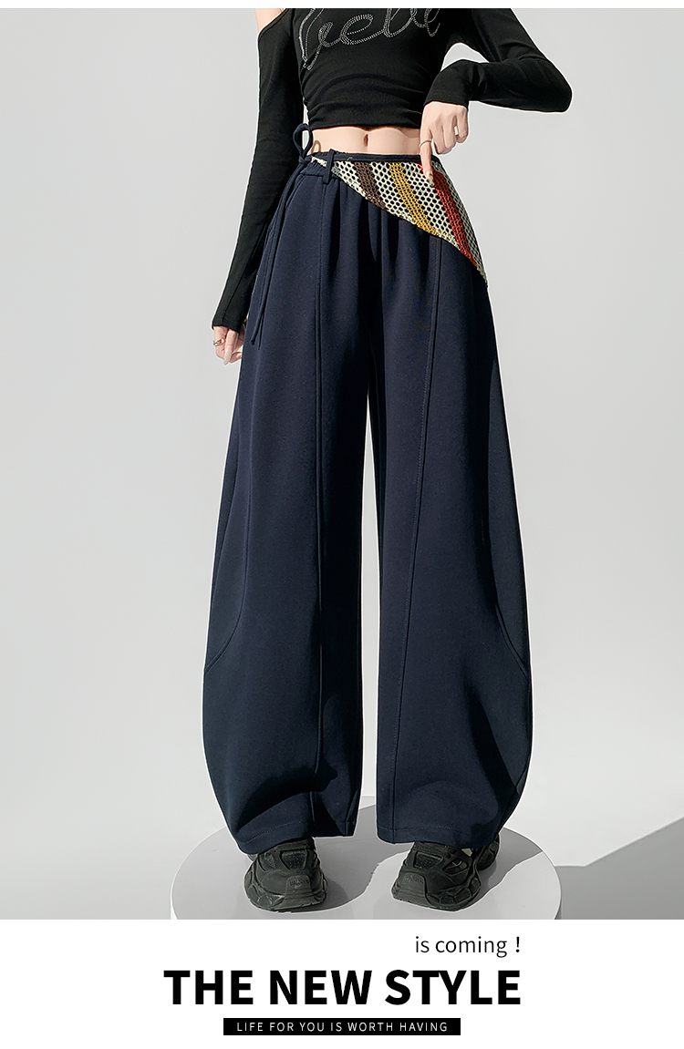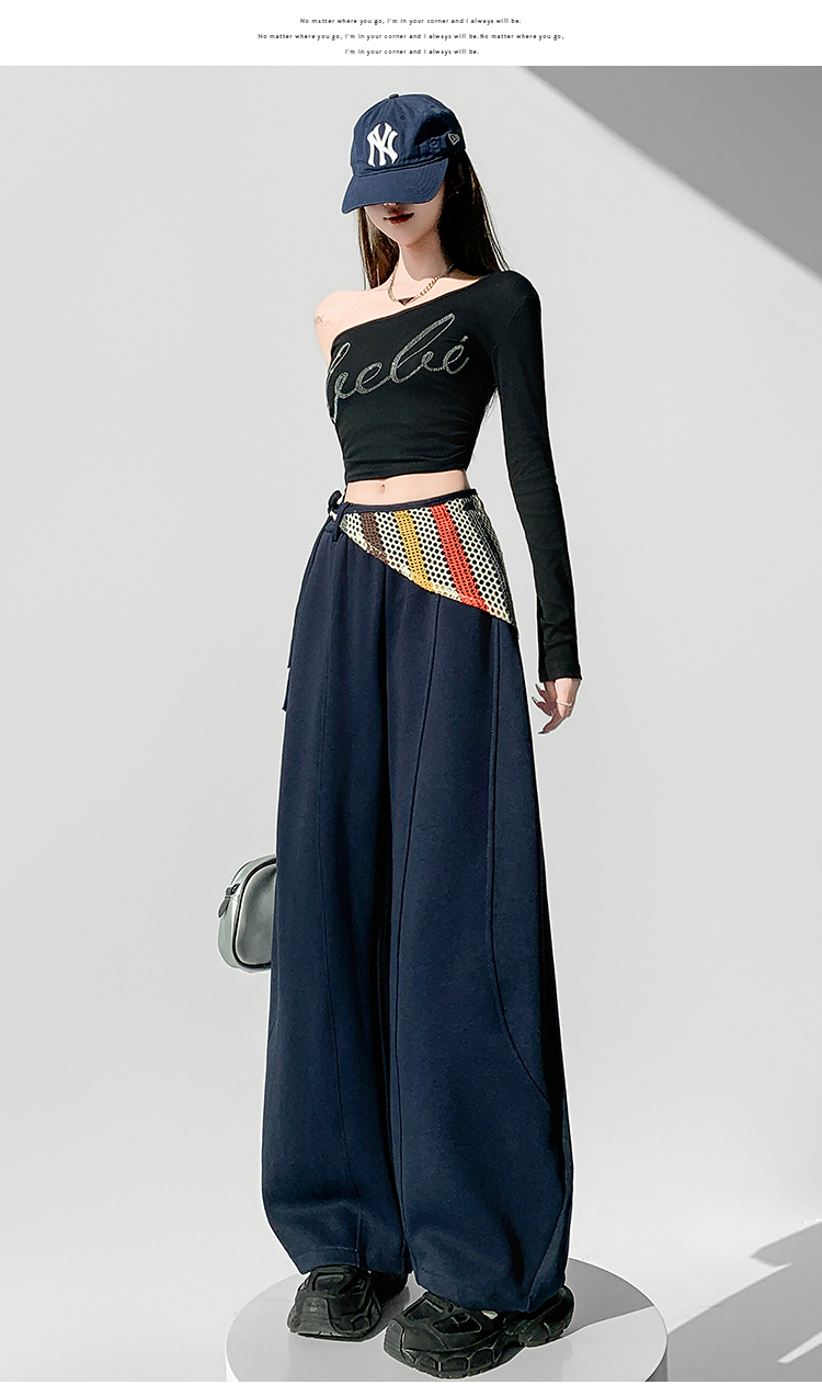 MY17704# 设计感美式弯刀运动卫裤新款高腰显瘦直筒阔腿裤子女裝貨源服裝批發