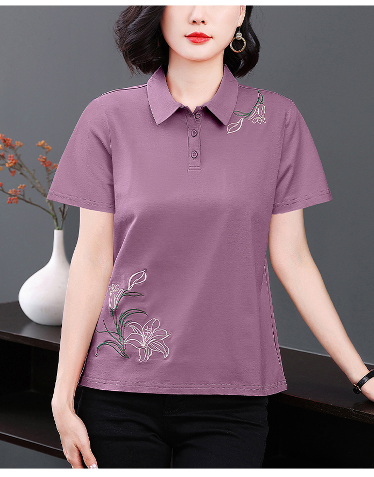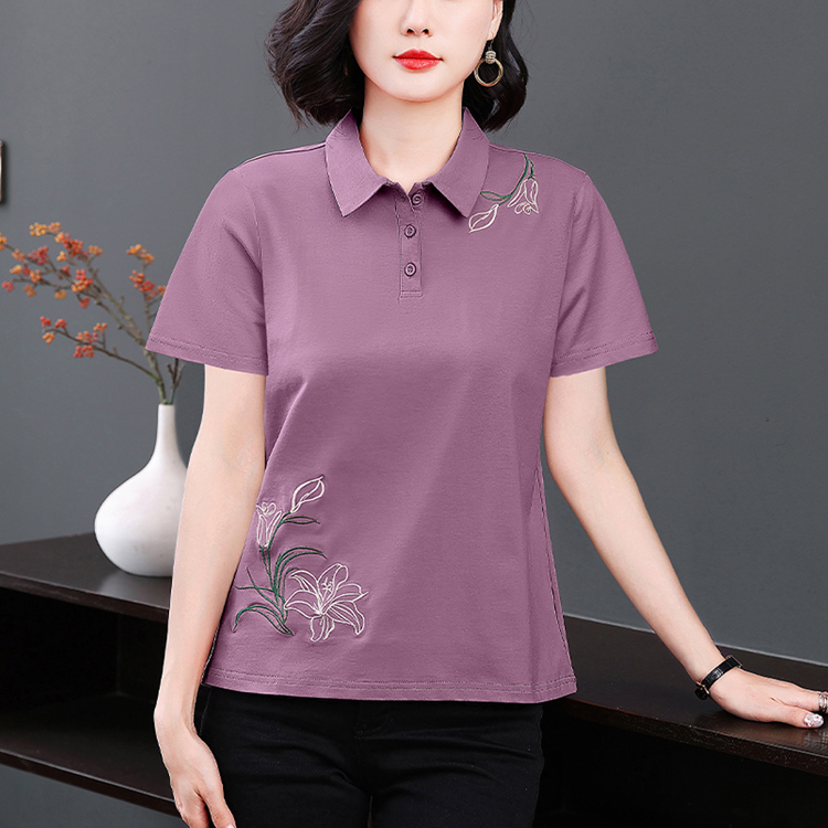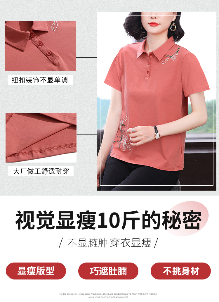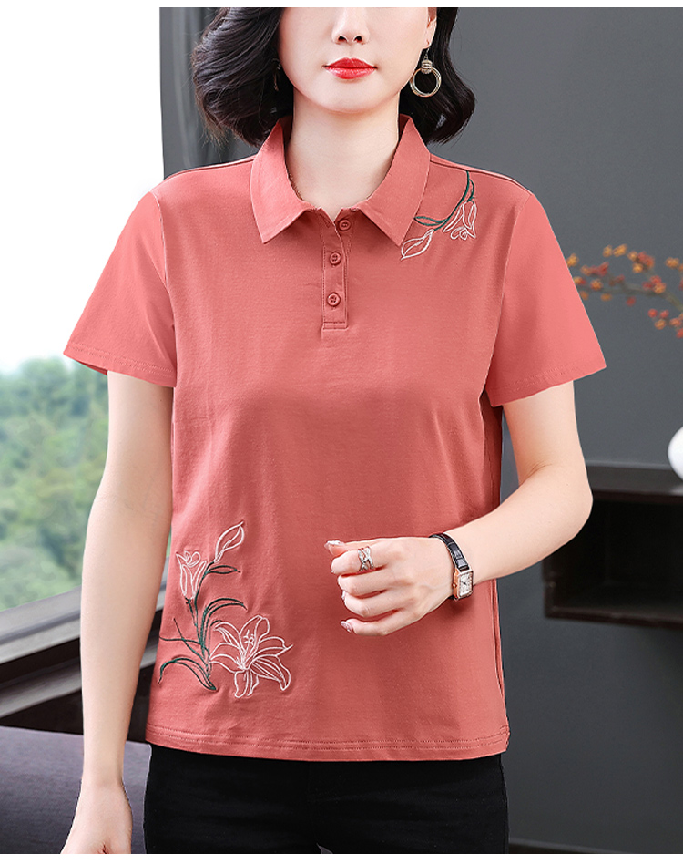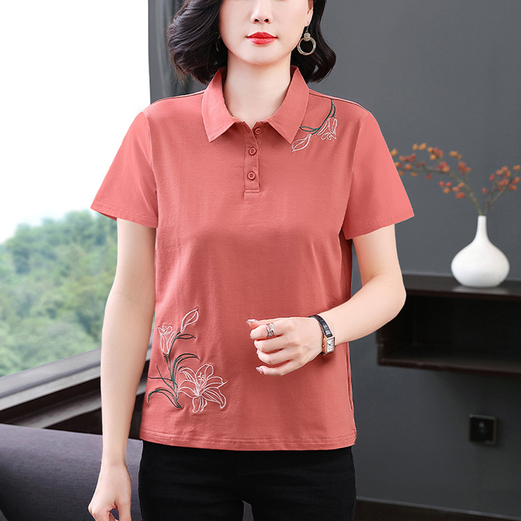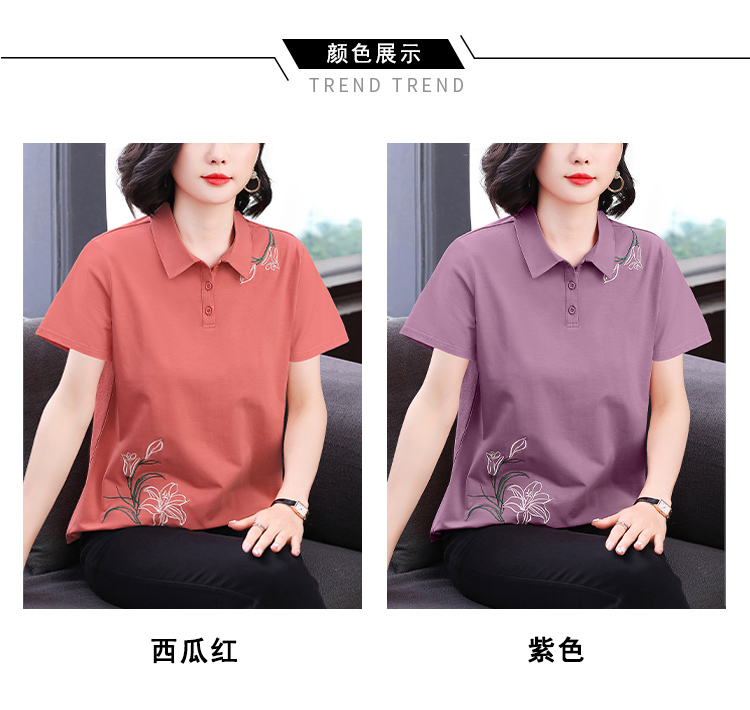 MY17708# 夏季新款短袖女士翻领刺绣T恤高级感小众设计宽松上衣女裝貨源服裝批發