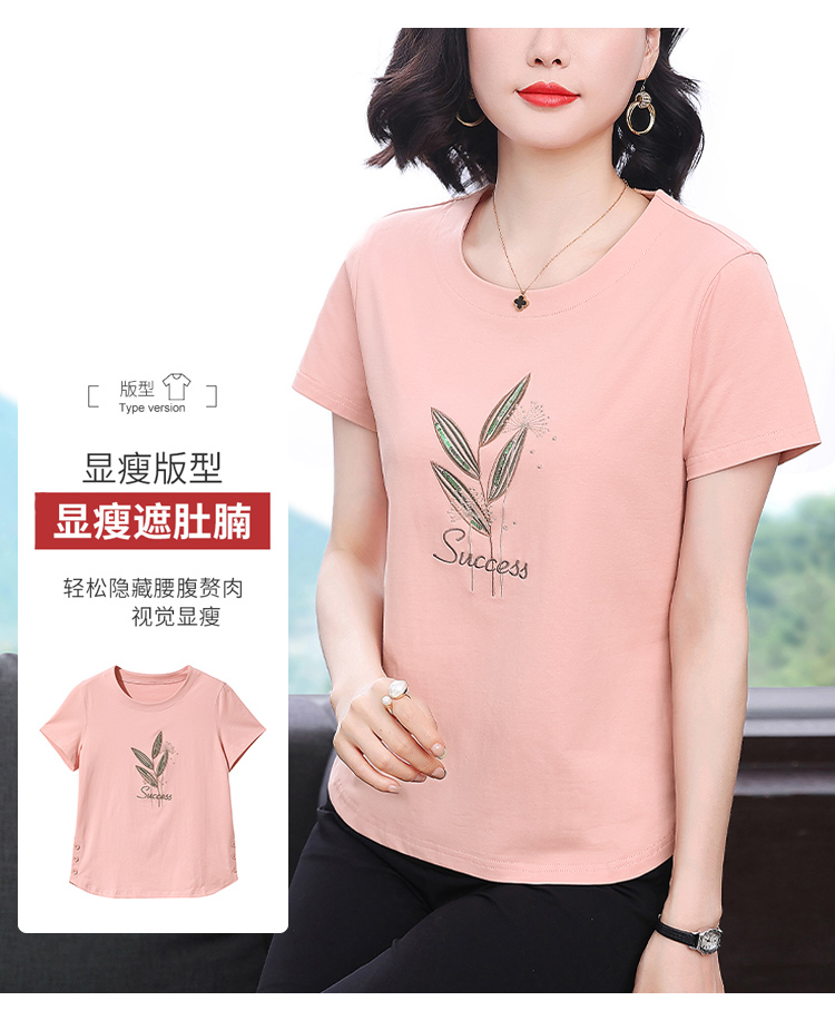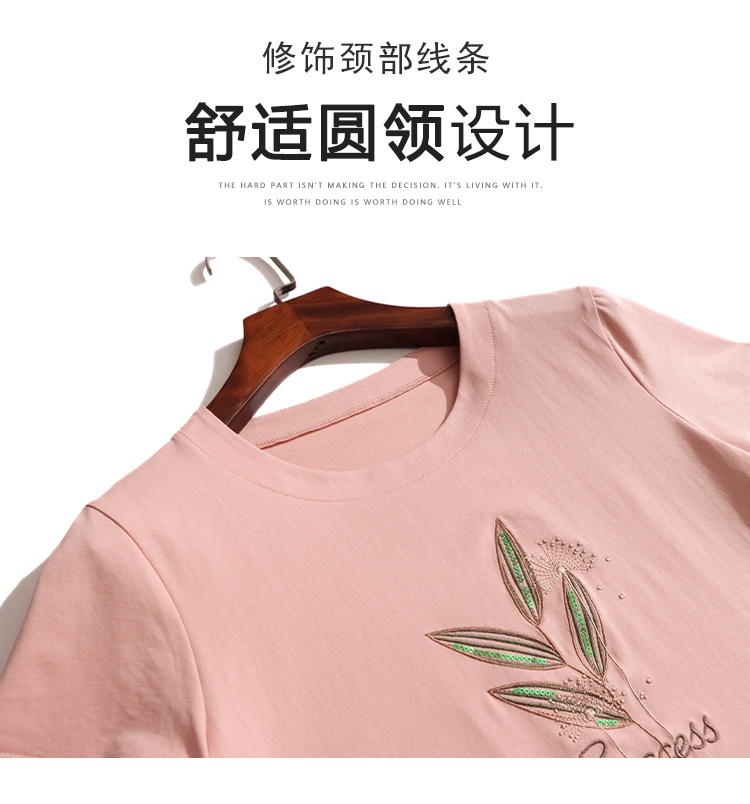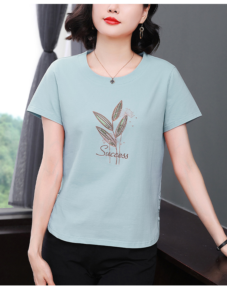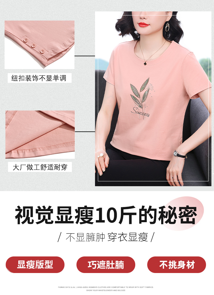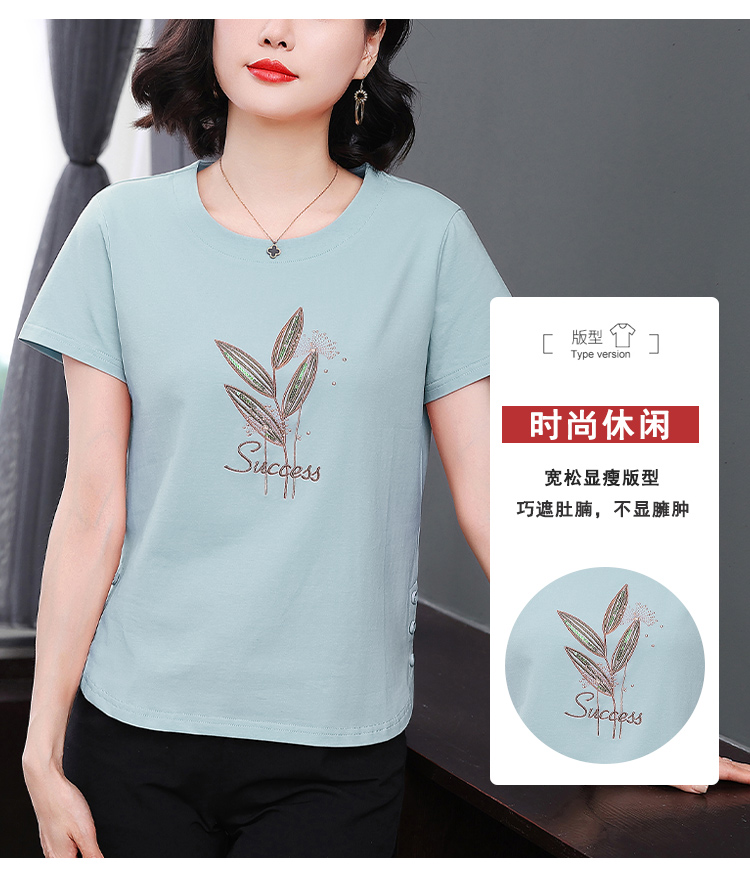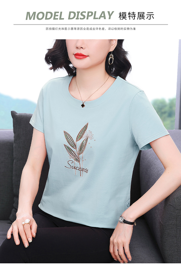 MY17710# 纯色短袖T恤女士字母刺绣新款时尚宽松显瘦妈妈装纯棉上衣女裝貨源服裝批發