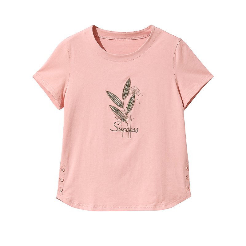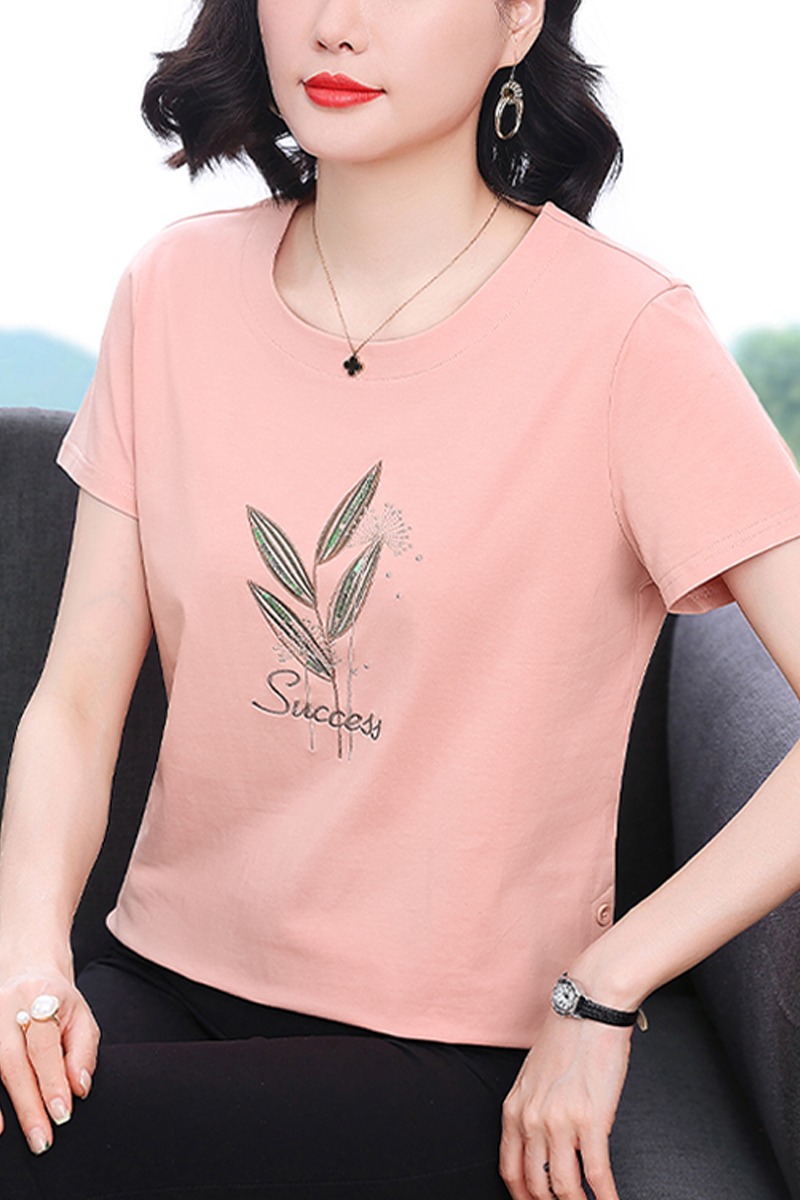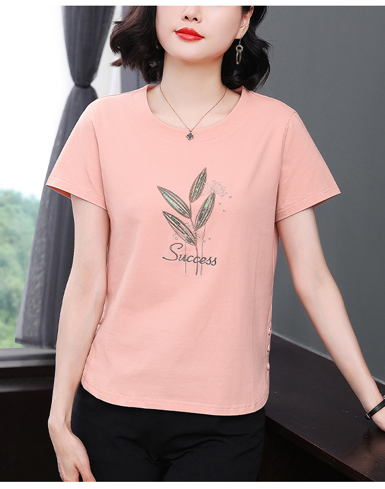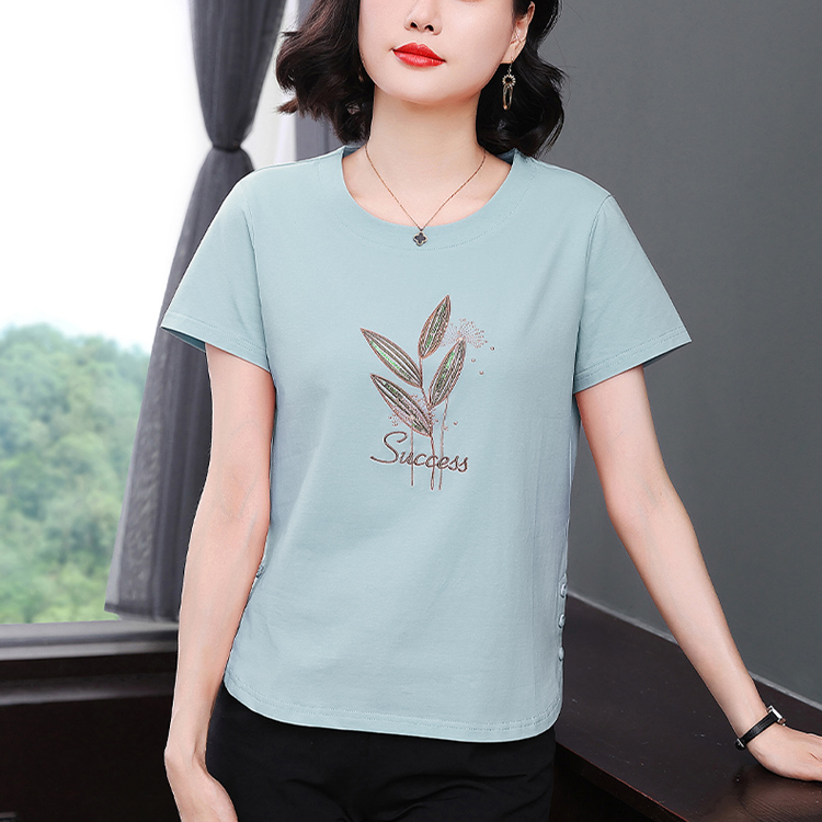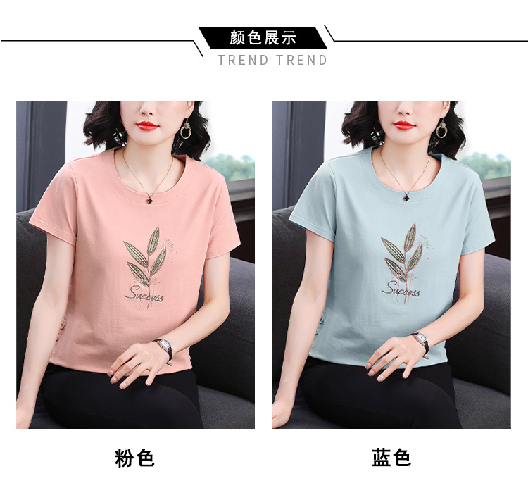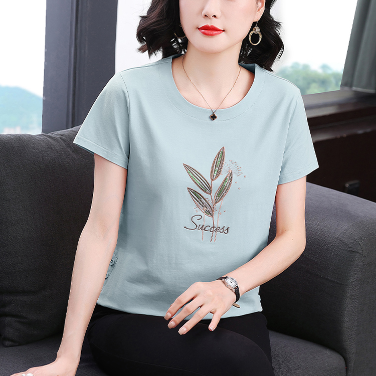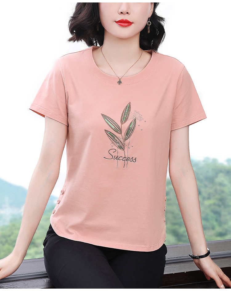 MY17710# 纯色短袖T恤女士字母刺绣新款时尚宽松显瘦妈妈装纯棉上衣女裝貨源服裝批發