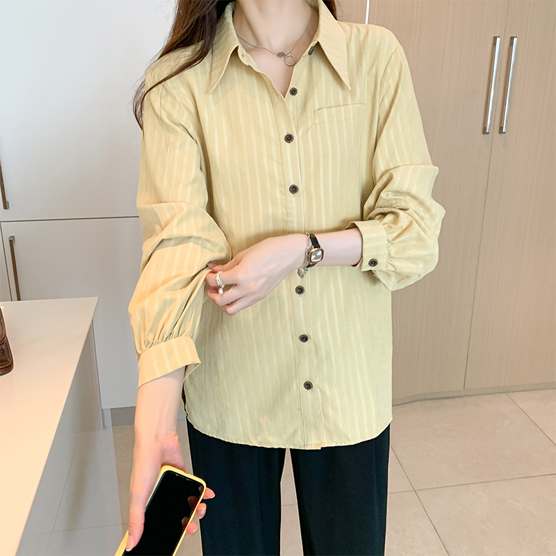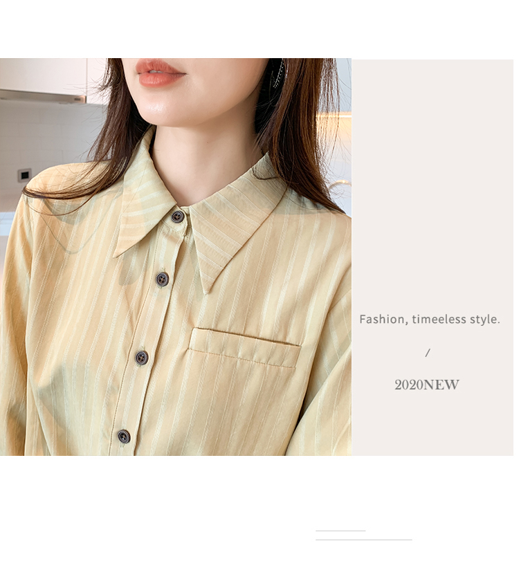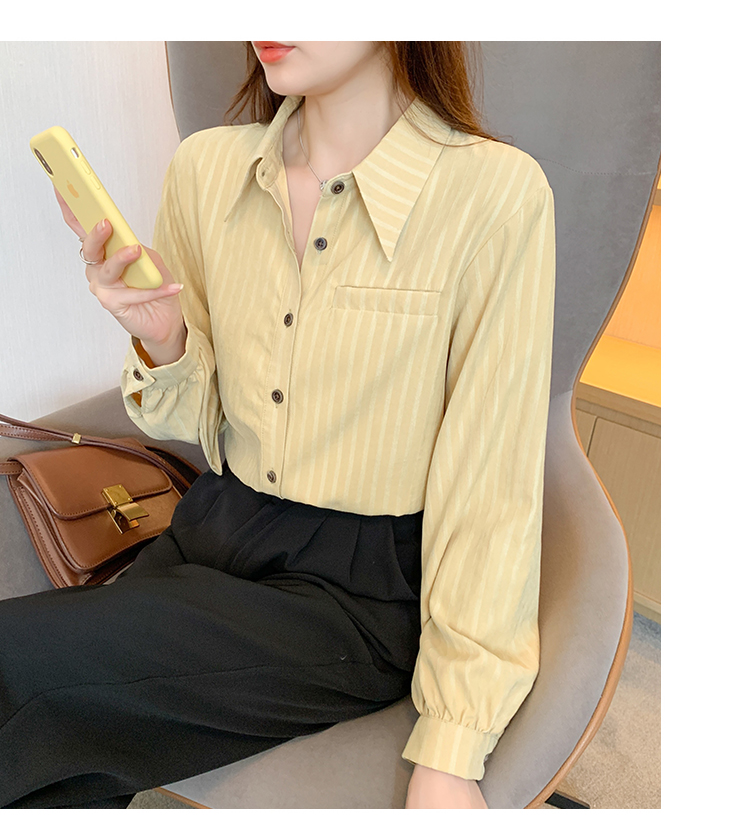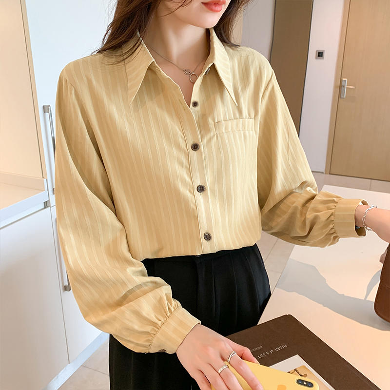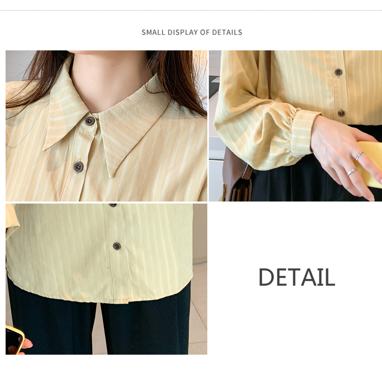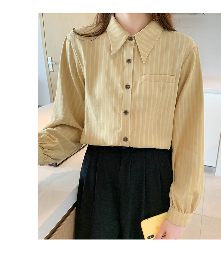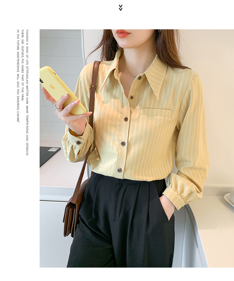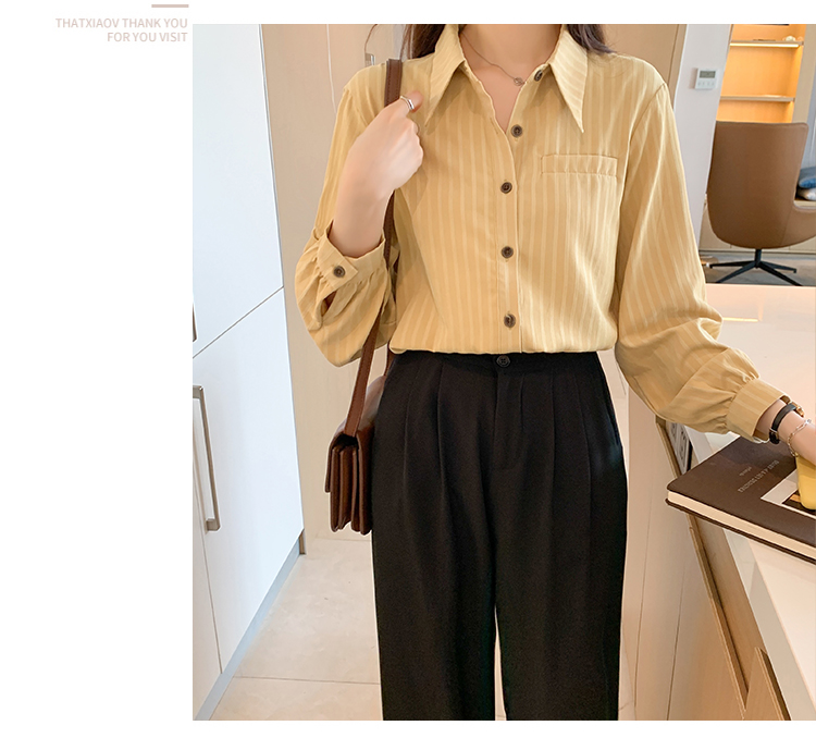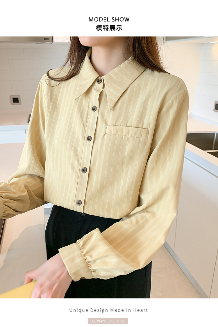 MY17720# 洋气显瘦春秋新款女装翻领条纹雪纺衫上衣开衫衬衫打底衫衬衣女裝貨源服裝批發