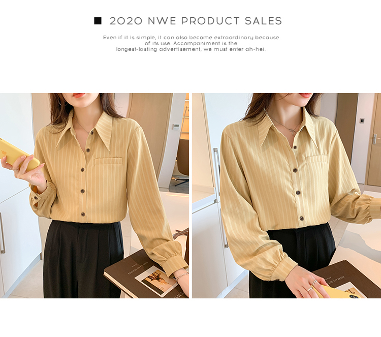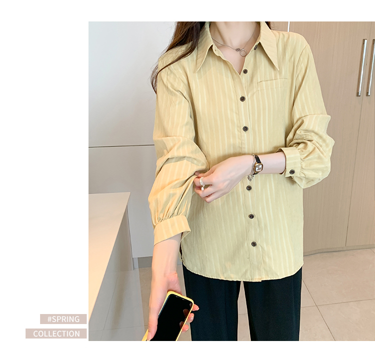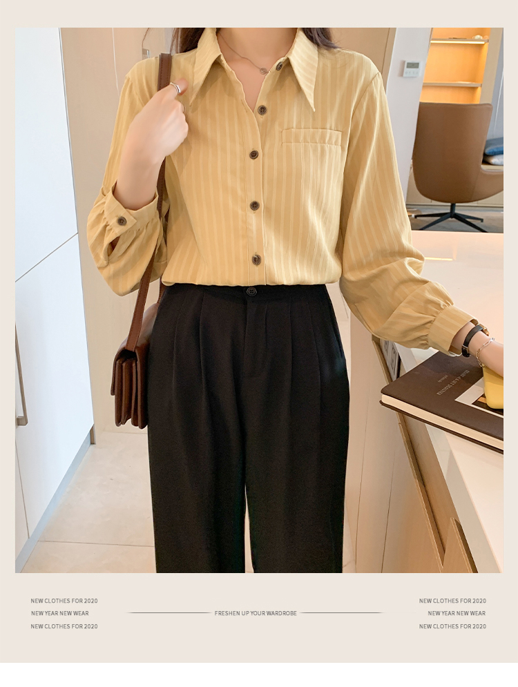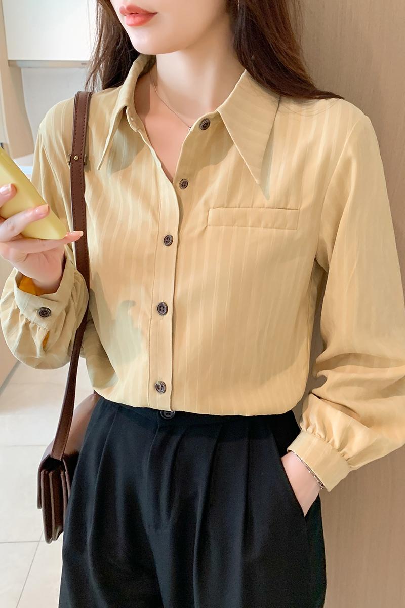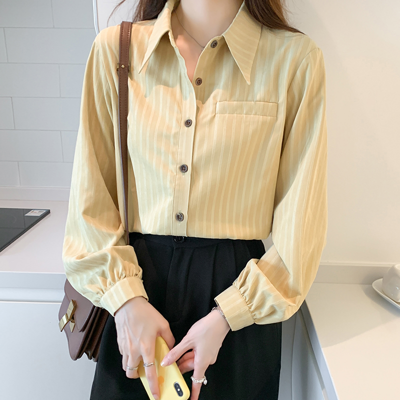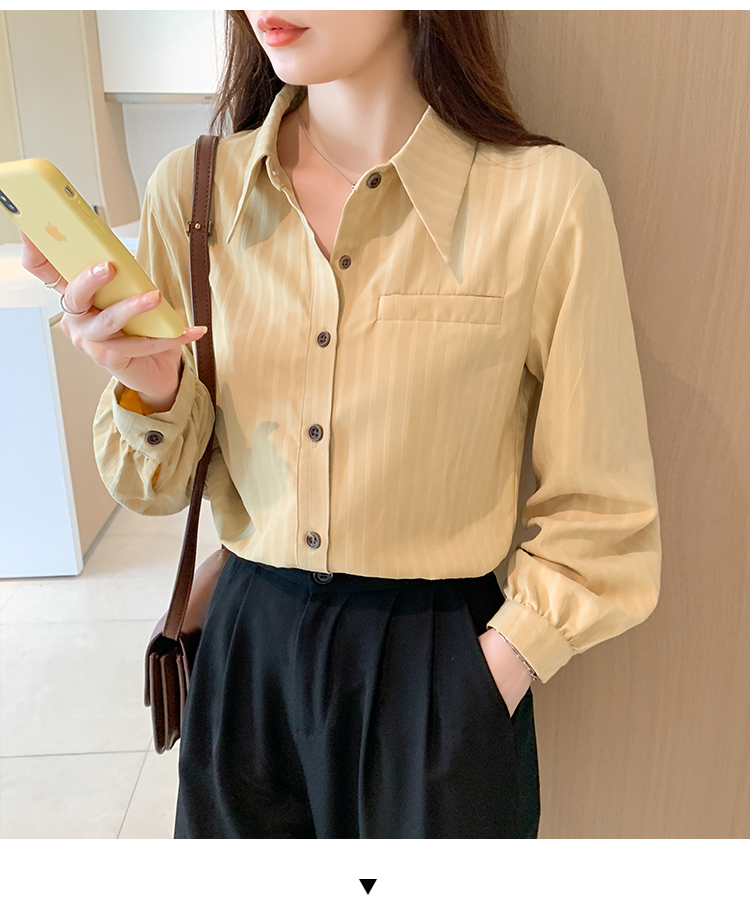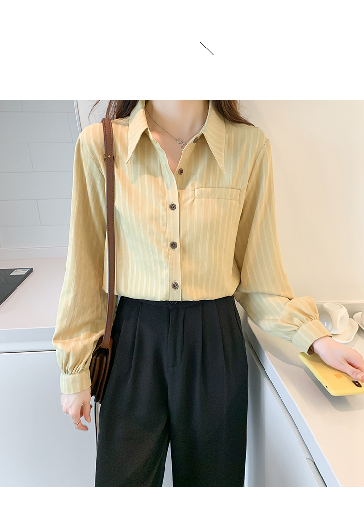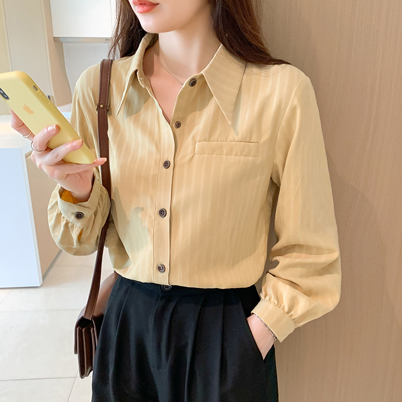 MY17720# 洋气显瘦春秋新款女装翻领条纹雪纺衫上衣开衫衬衫打底衫衬衣女裝貨源服裝批發