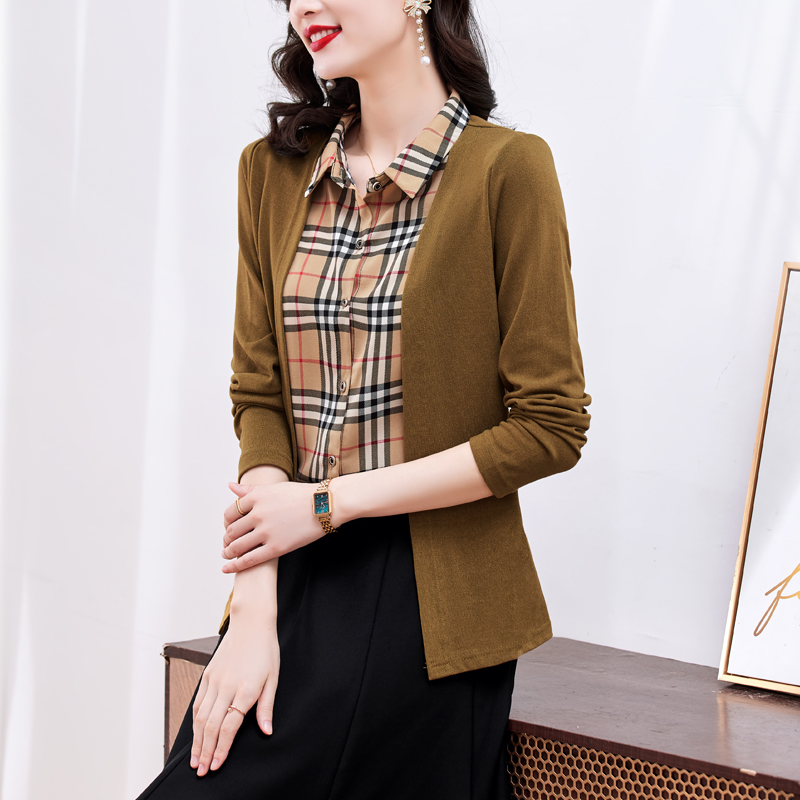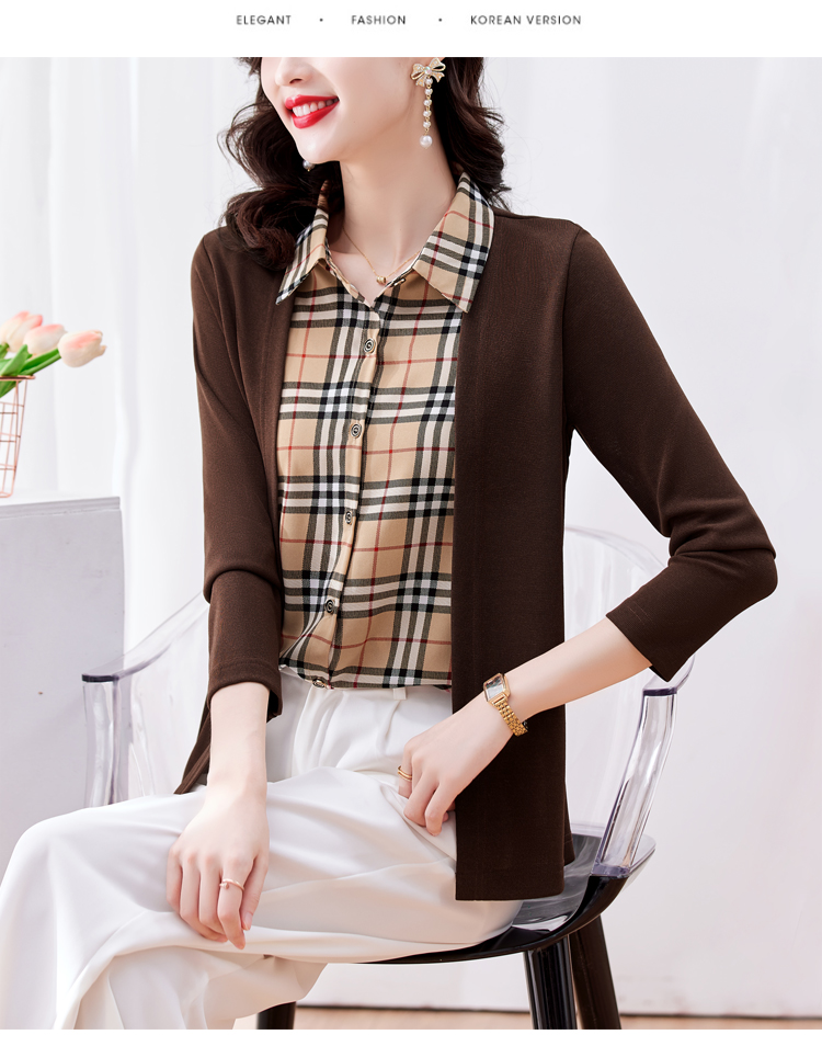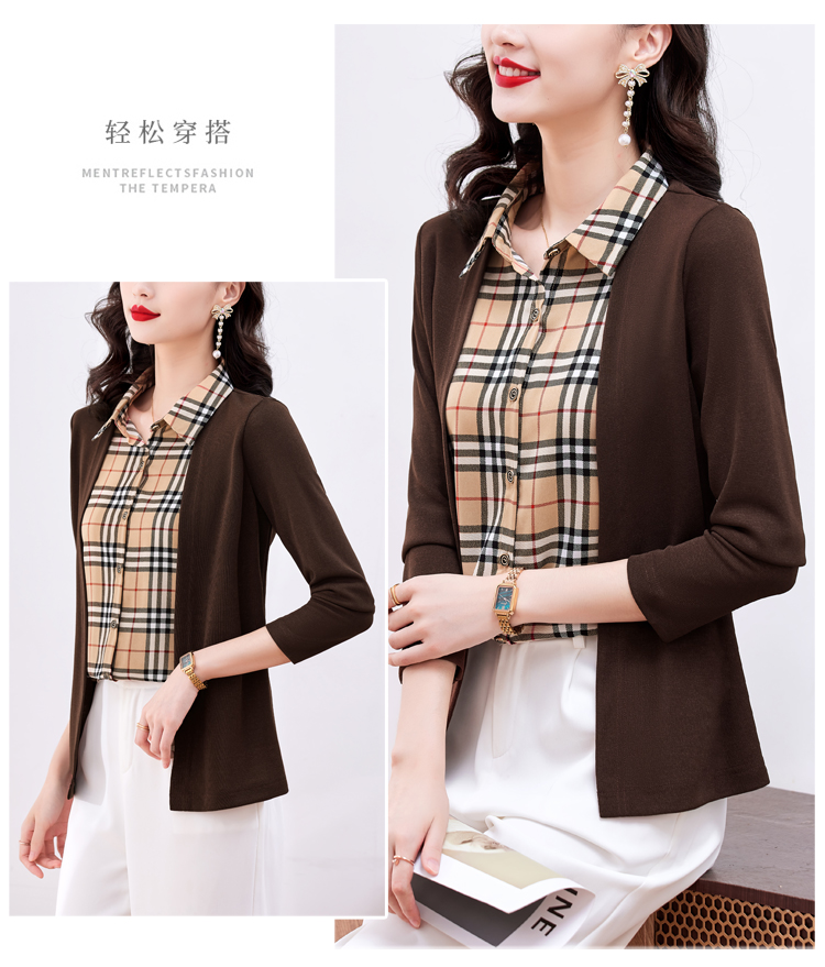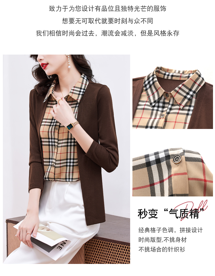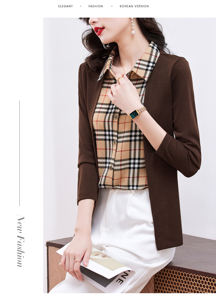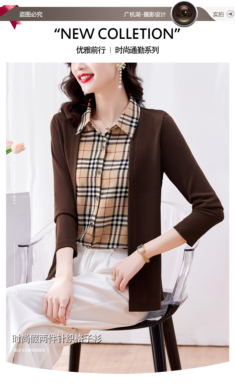 MY17732# 假两件长袖新款洋气百搭衬衫欧货拼接上衣外套女裝貨源服裝批發