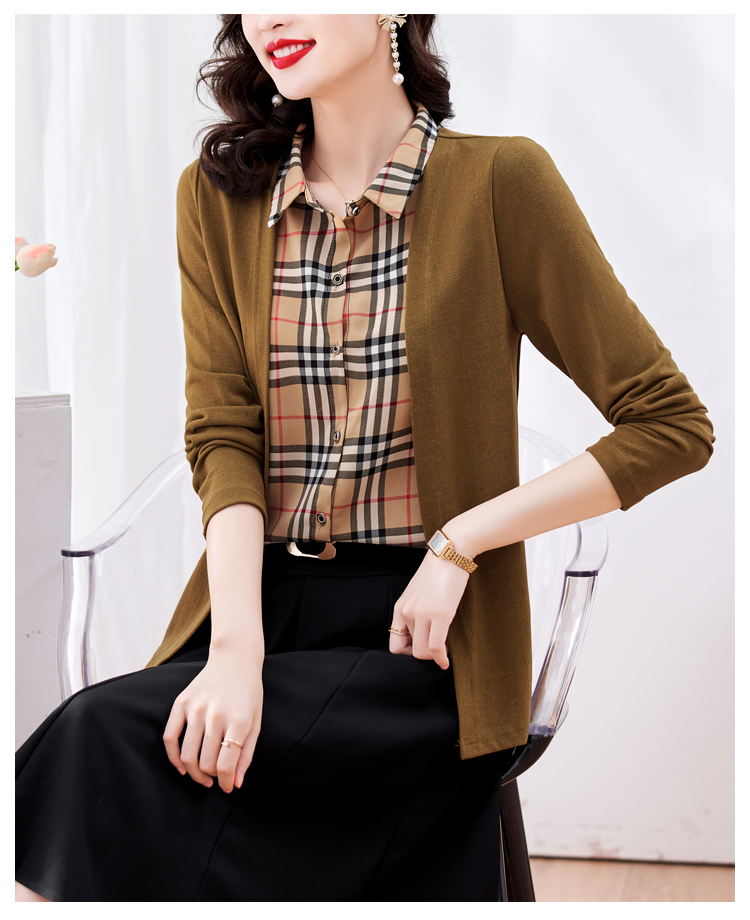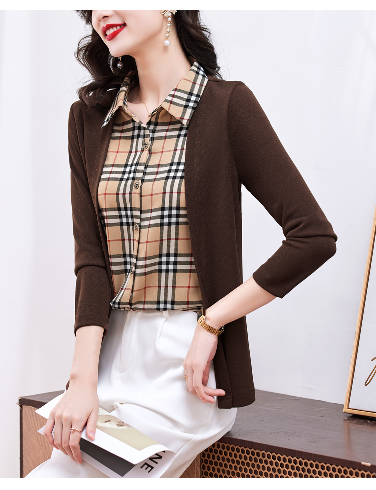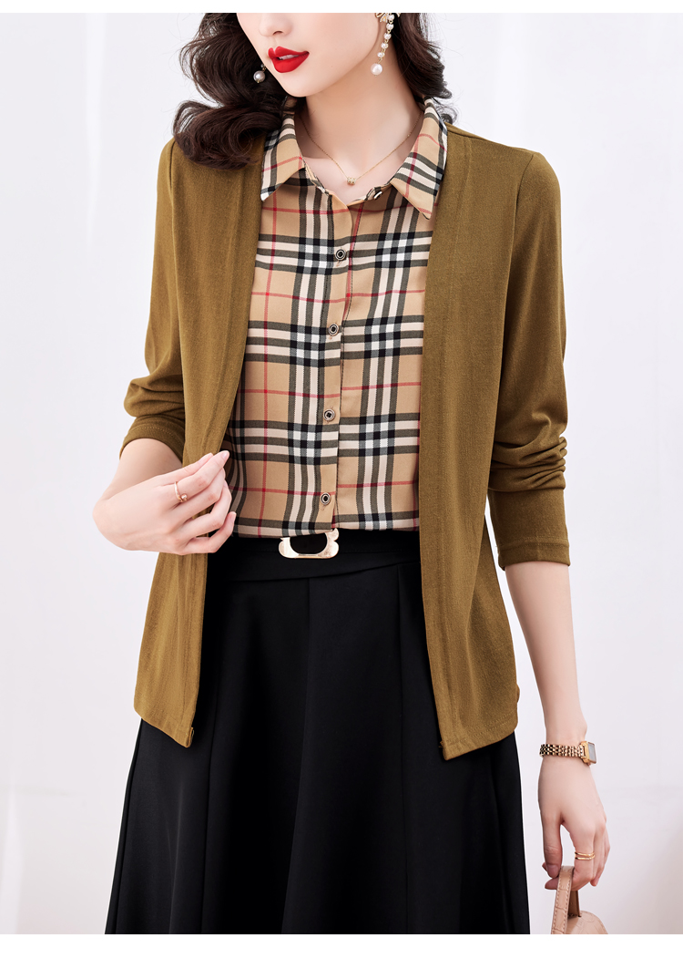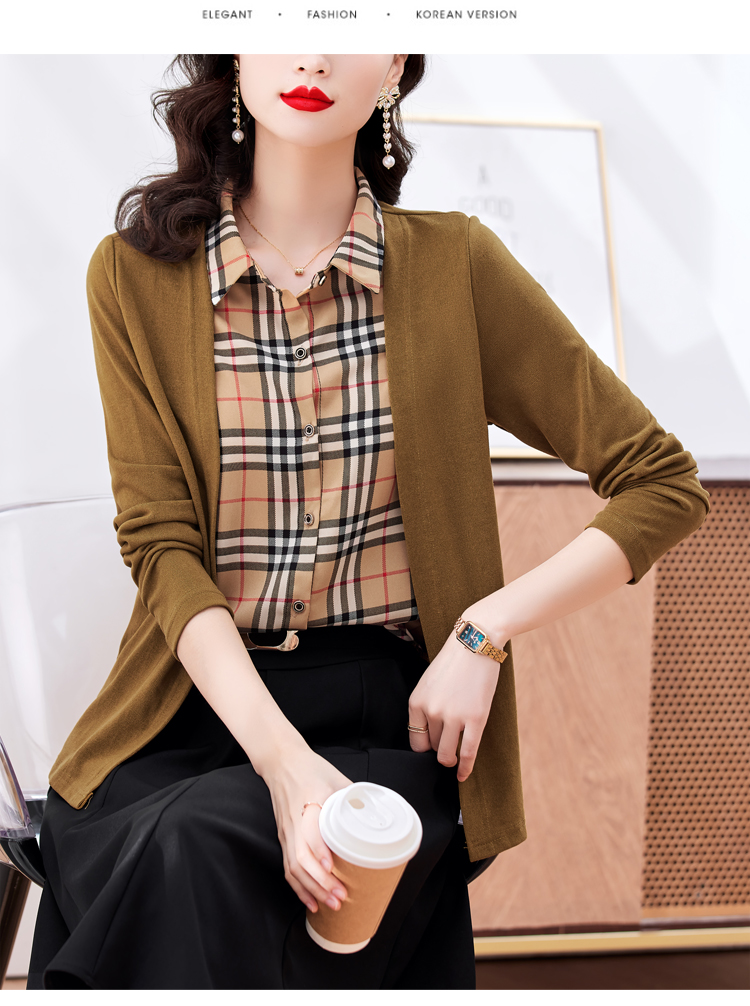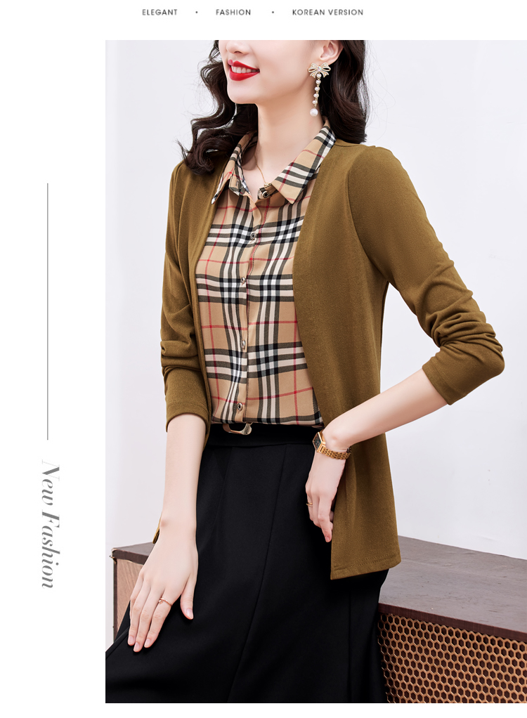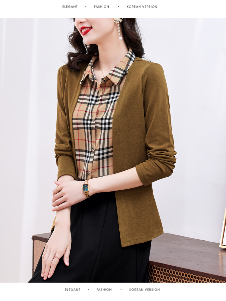 MY17732# 假两件长袖新款洋气百搭衬衫欧货拼接上衣外套女裝貨源服裝批發