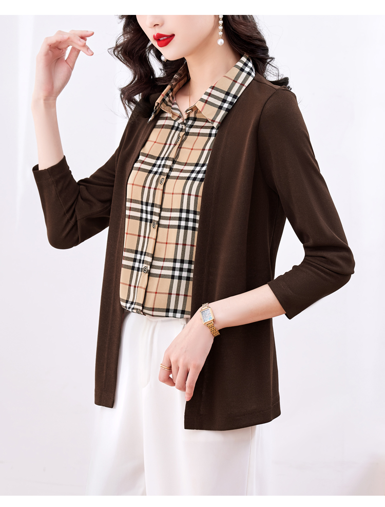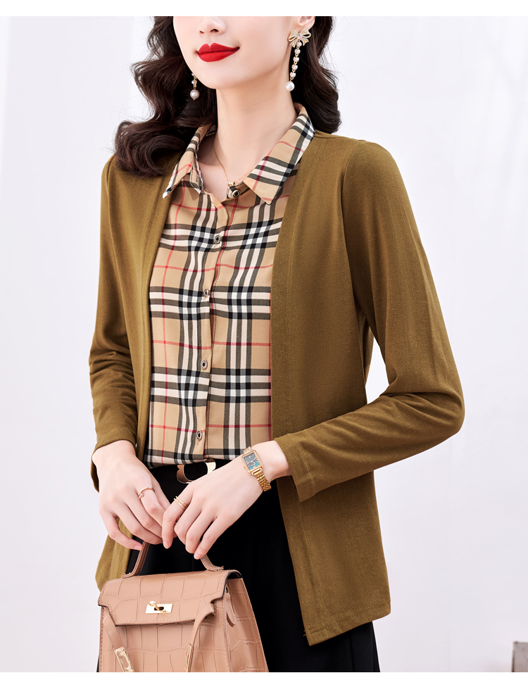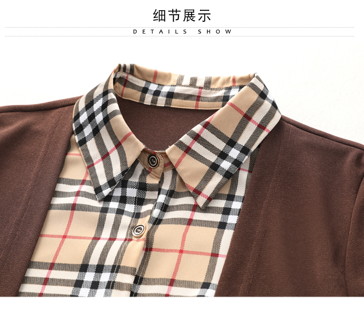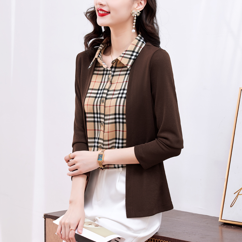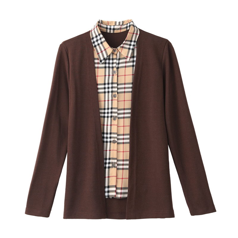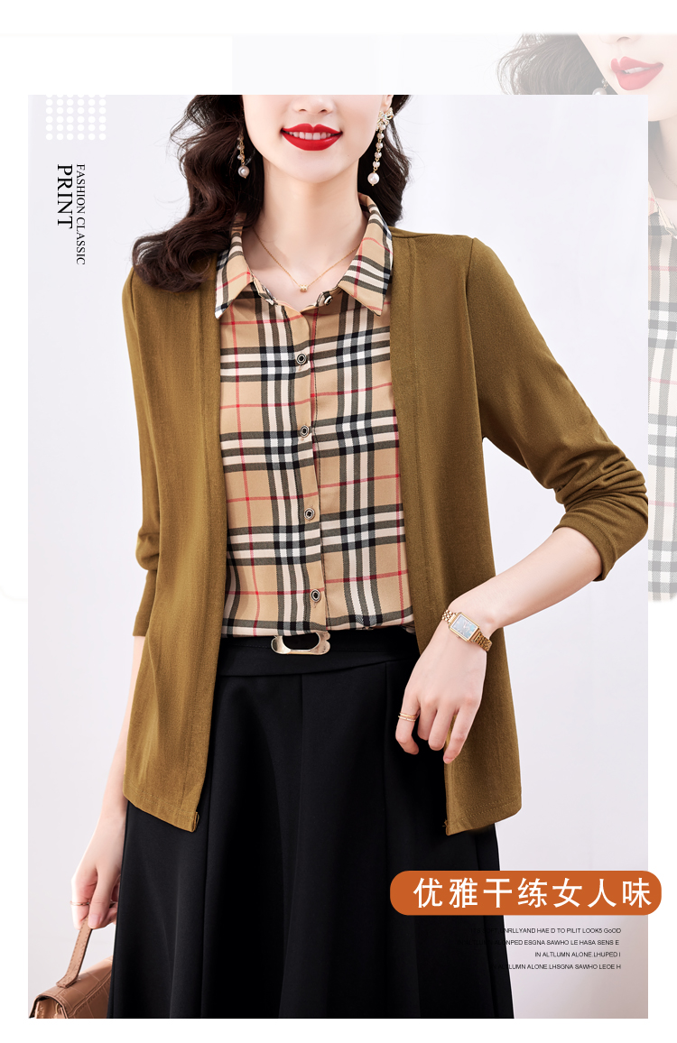 MY17732# 假两件长袖新款洋气百搭衬衫欧货拼接上衣外套女裝貨源服裝批發