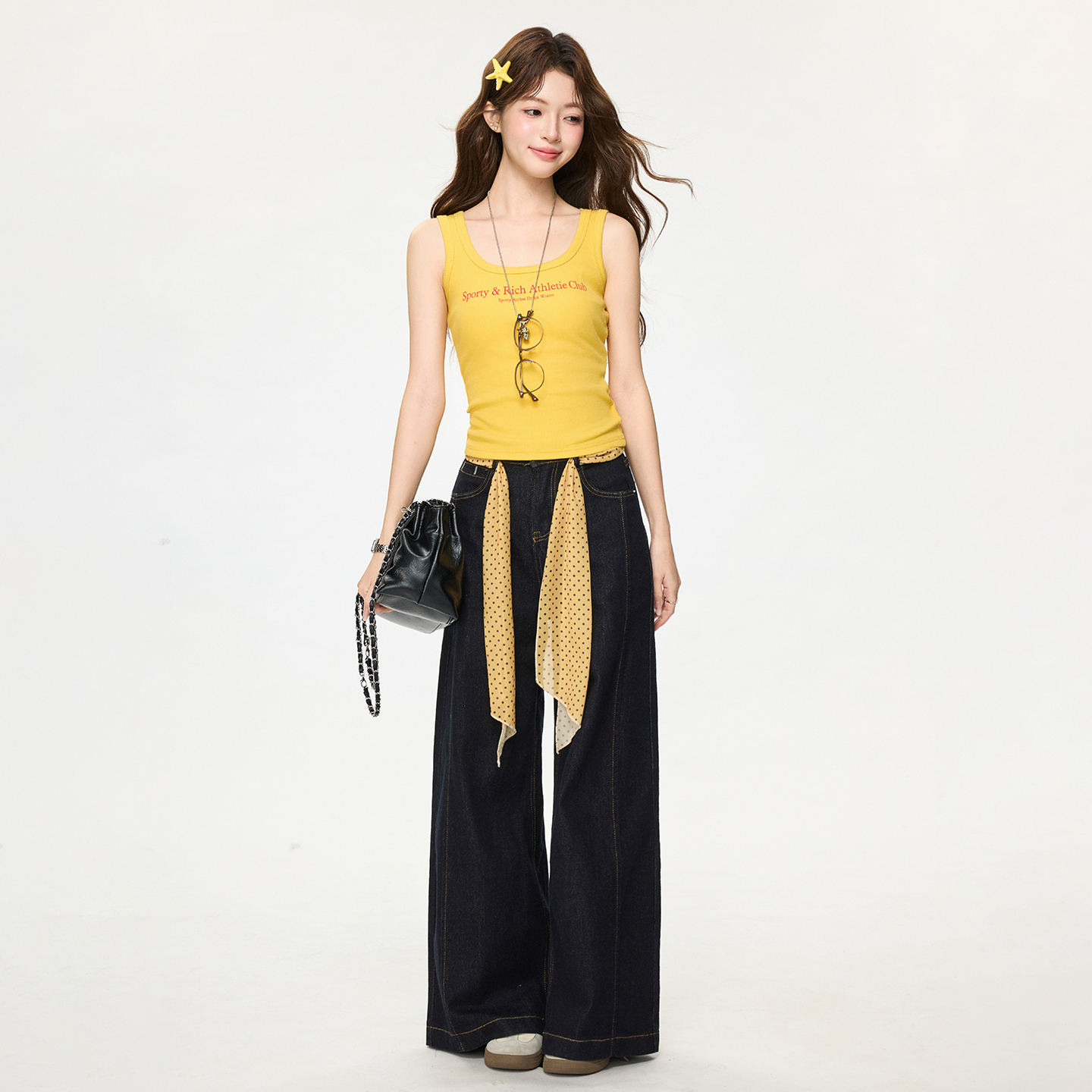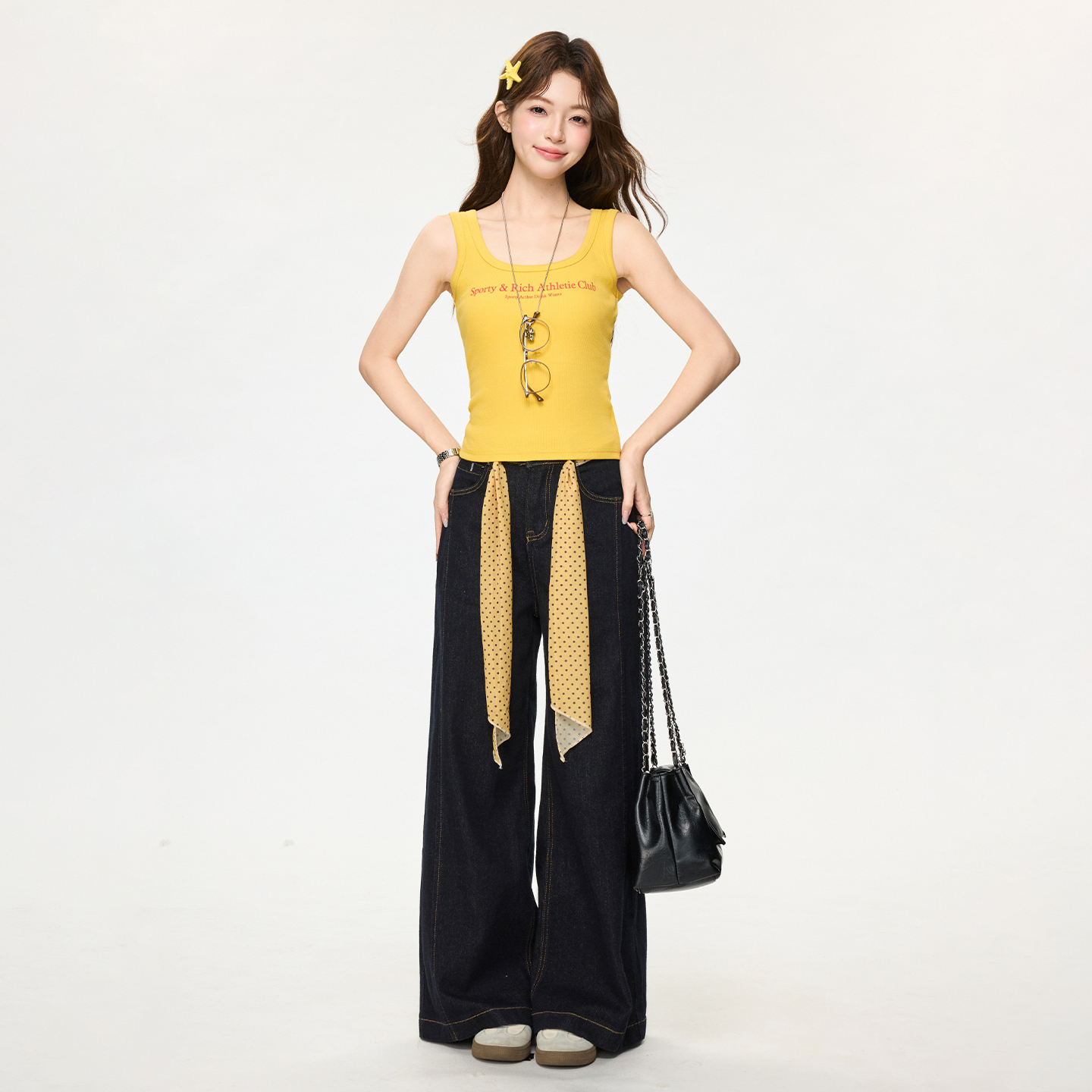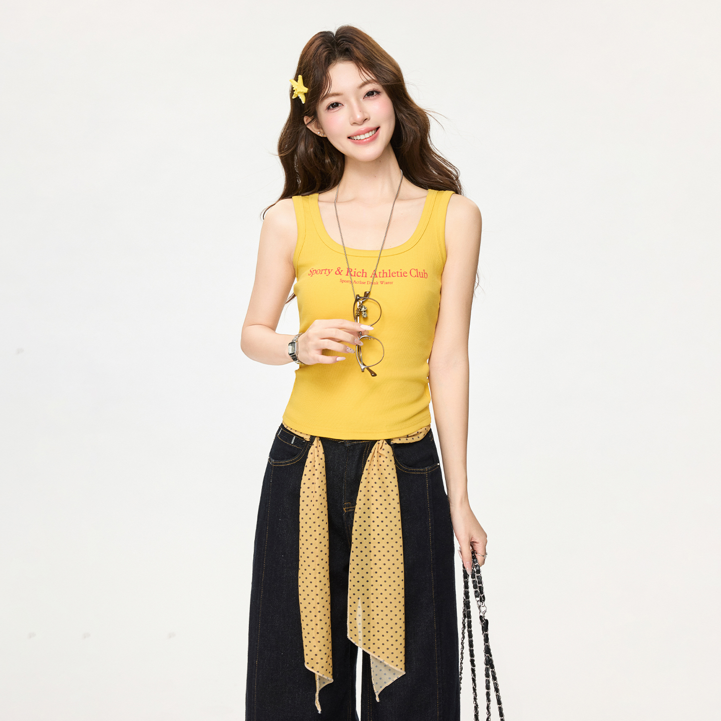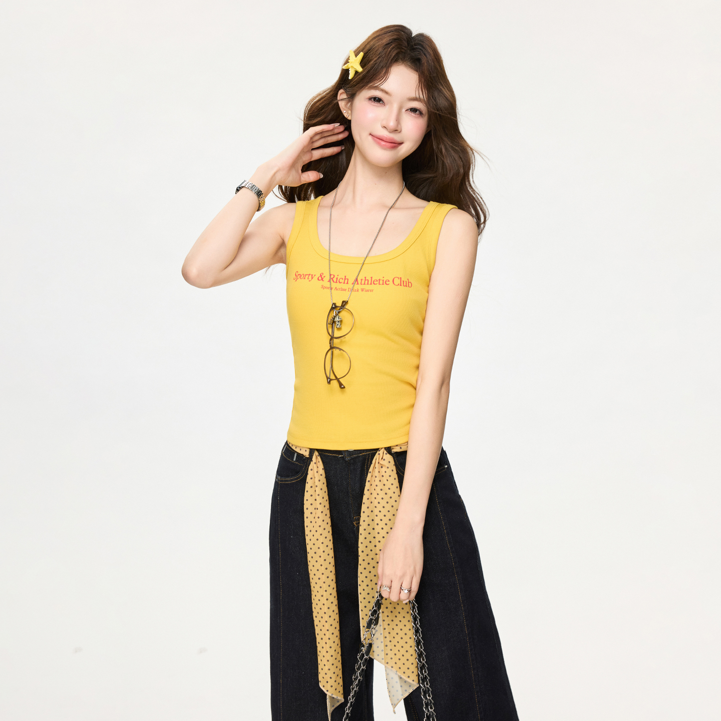 MY17741# 美式背心女内搭外穿新款黄色酷辣小吊带无袖上衣女裝貨源服裝批發