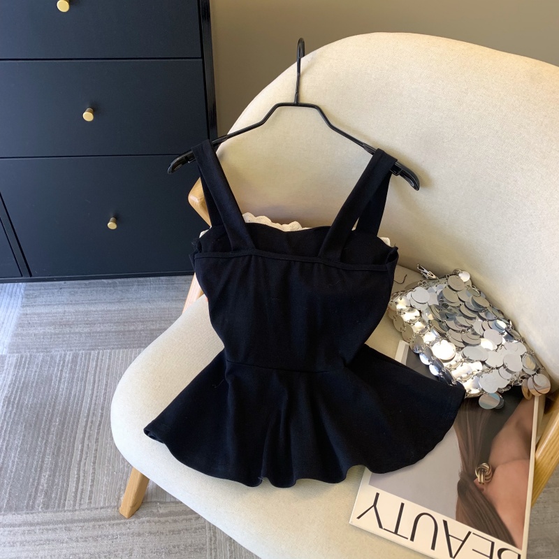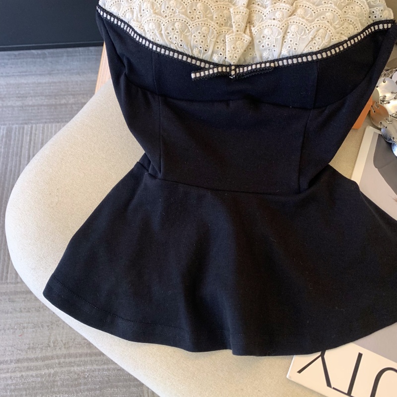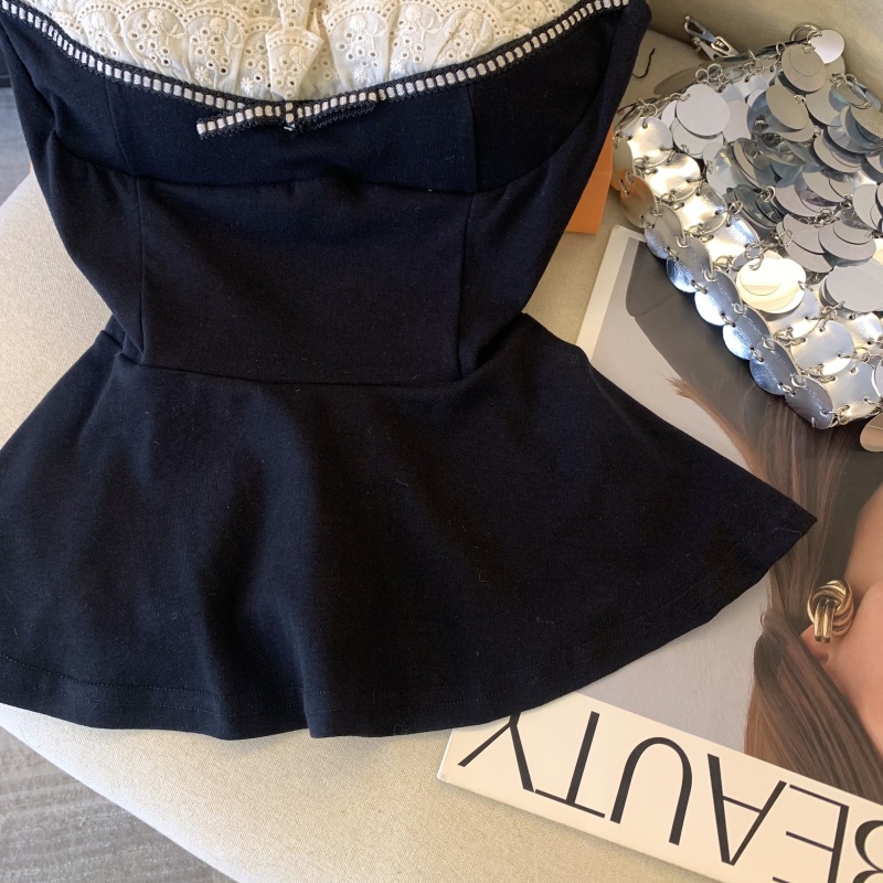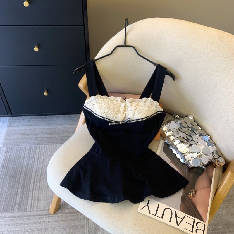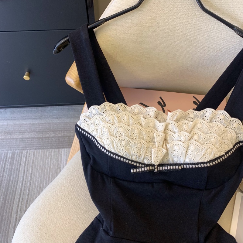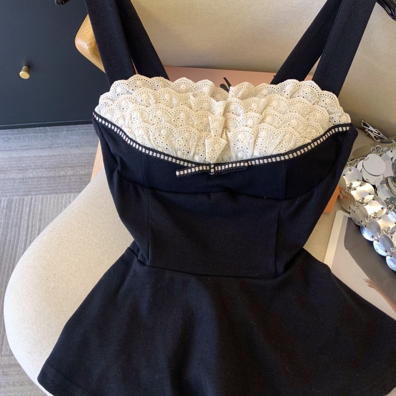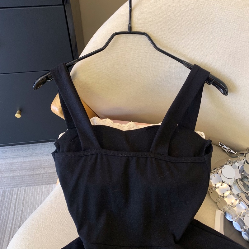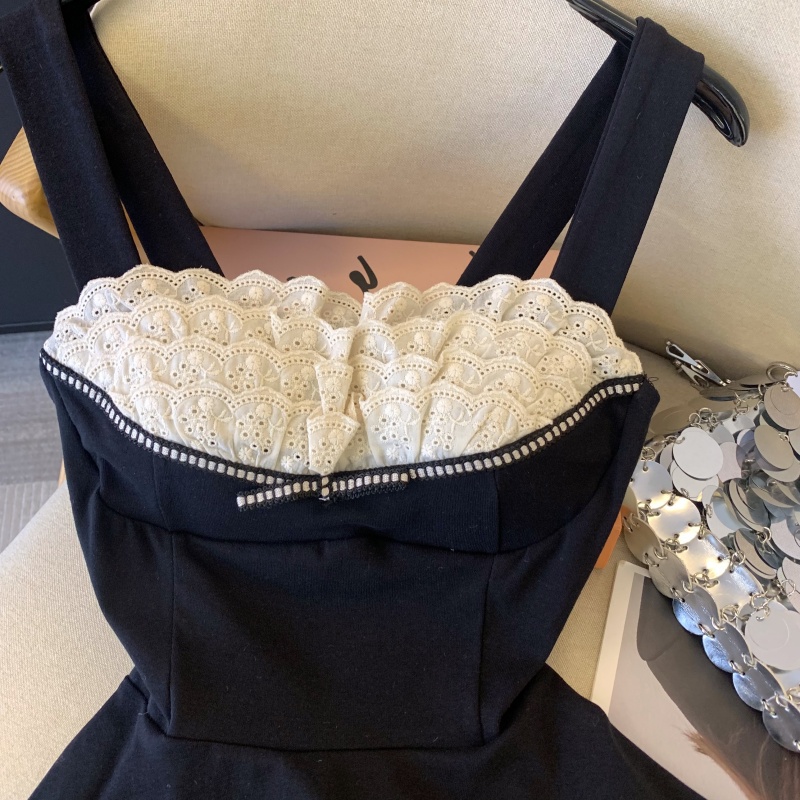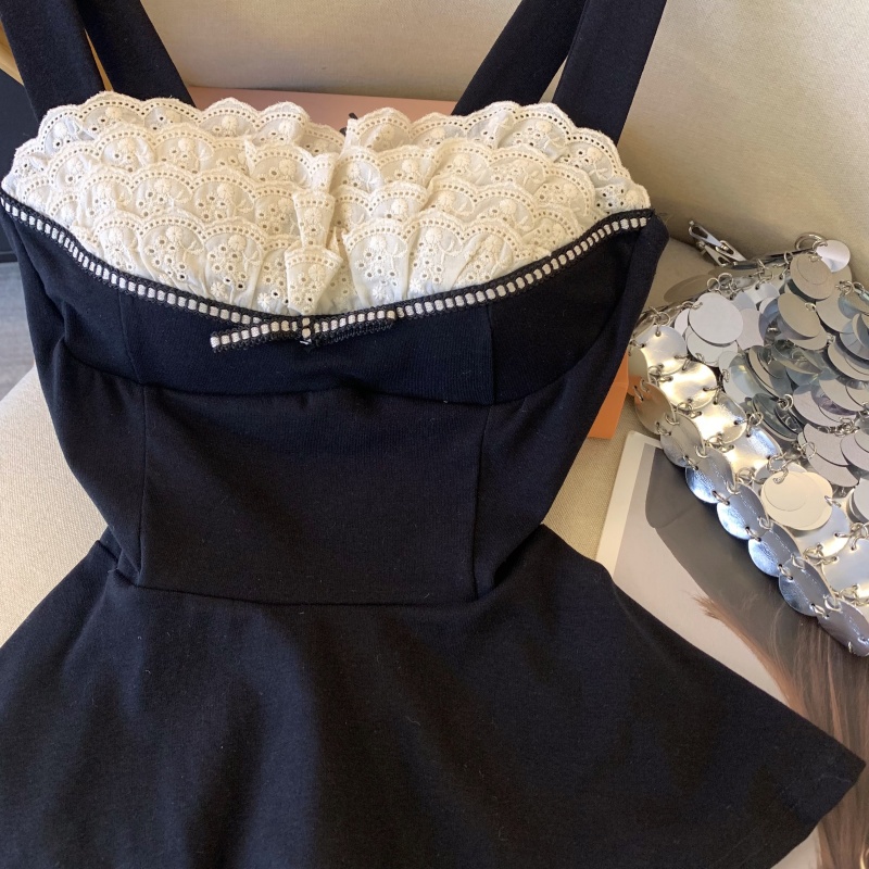 MY17743# 纯欲风蕾丝拼接花边吊带胸衣黑色背心女春夏收腰显瘦内搭女裝貨源服裝批發