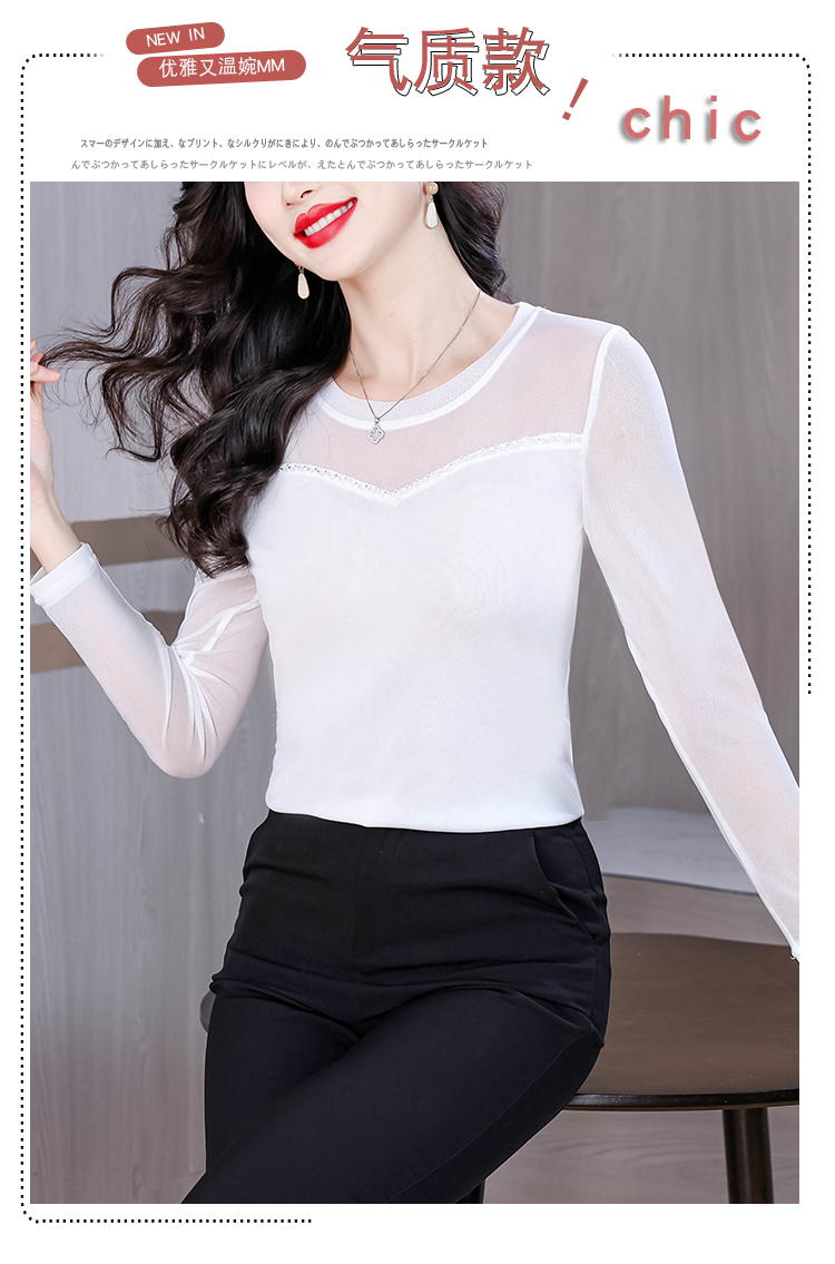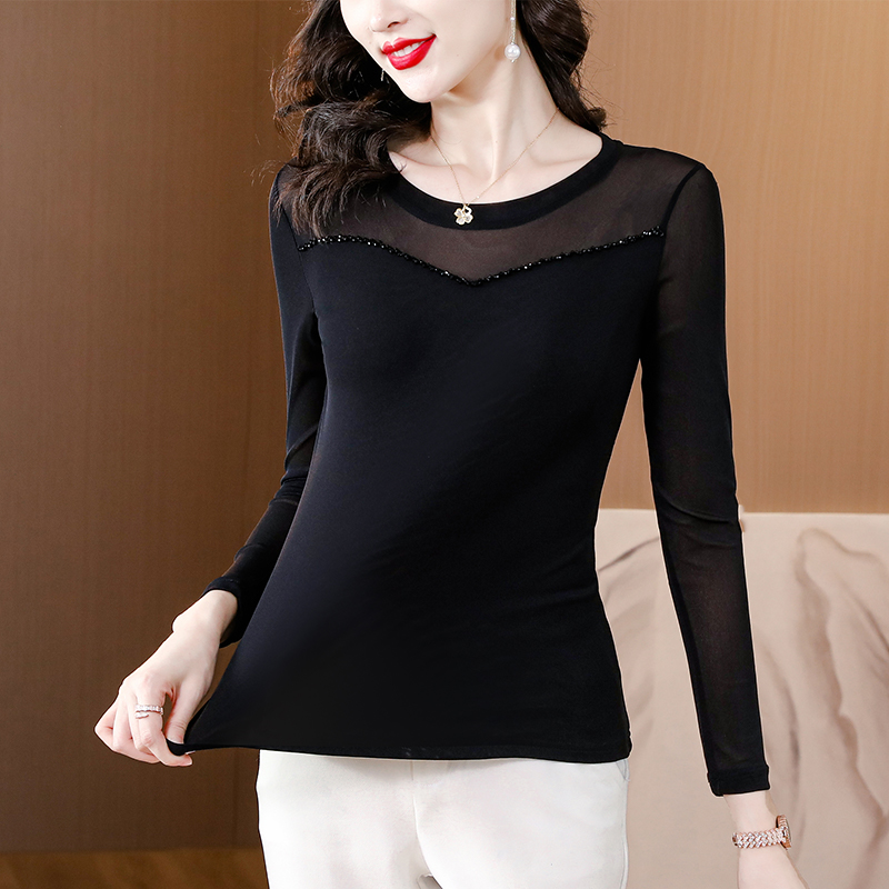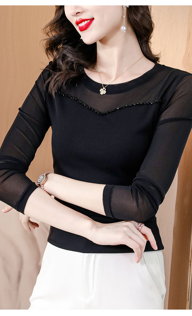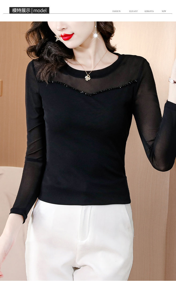 MY17749# 网纱手工钉珠修身显瘦洋气打底衫上衣T恤女裝貨源服裝批發