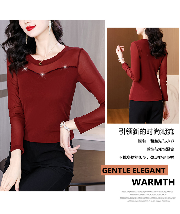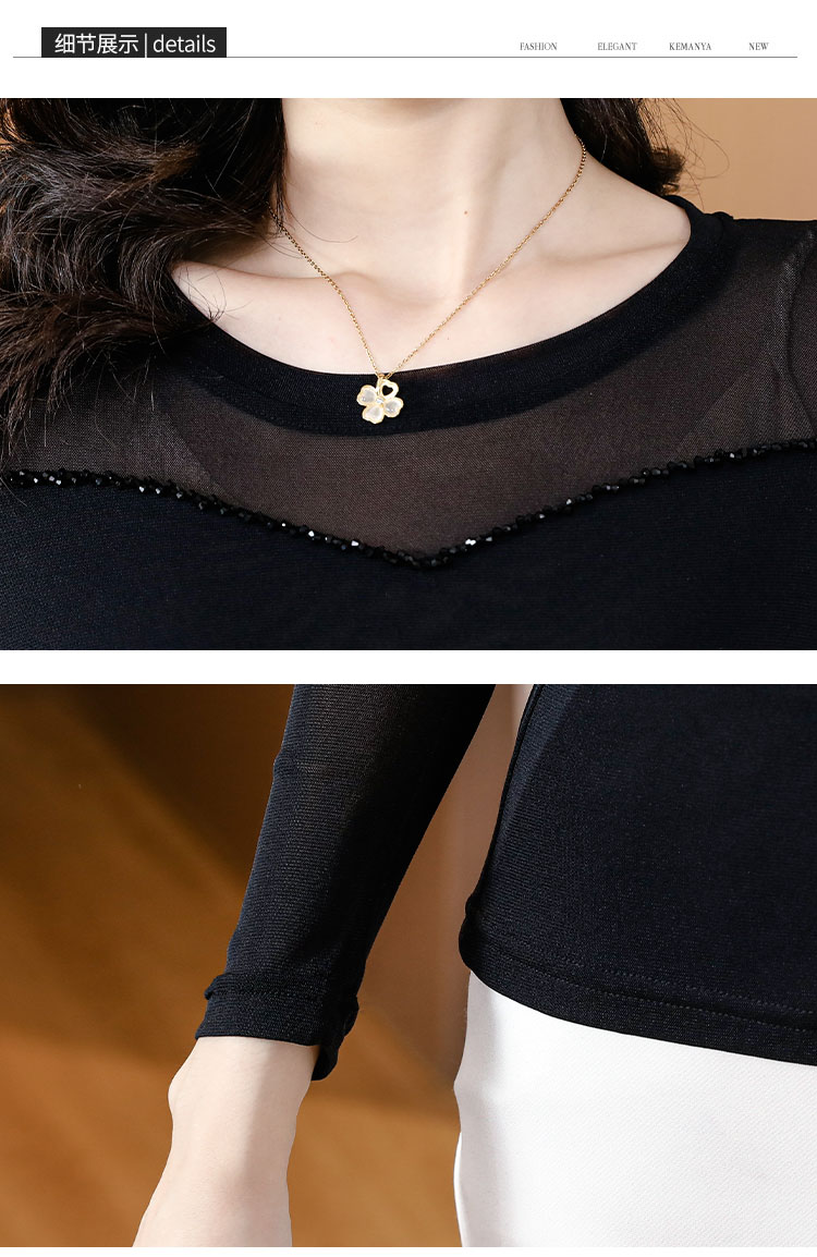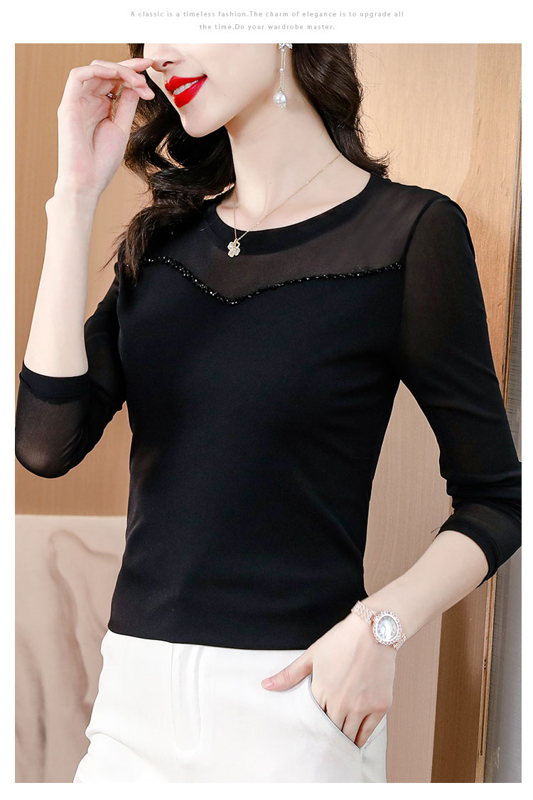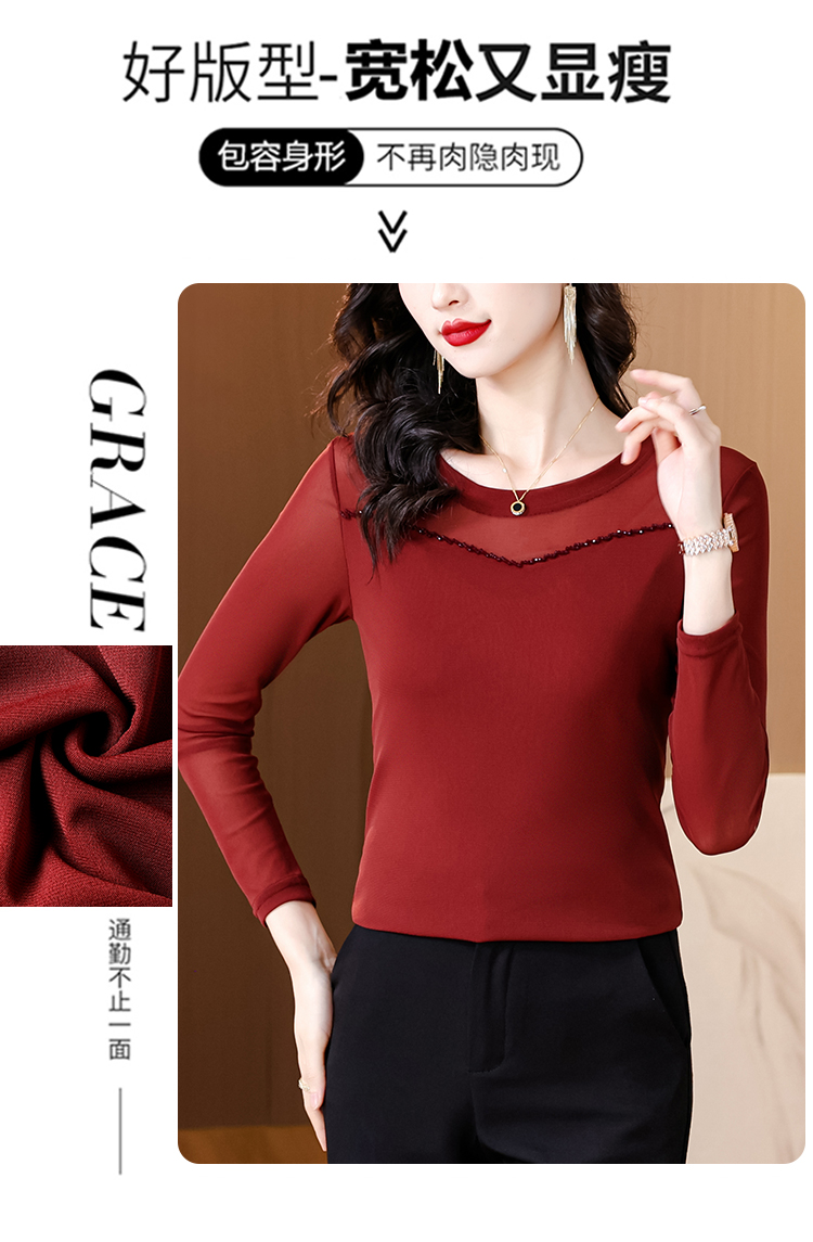 MY17749# 网纱手工钉珠修身显瘦洋气打底衫上衣T恤女裝貨源服裝批發