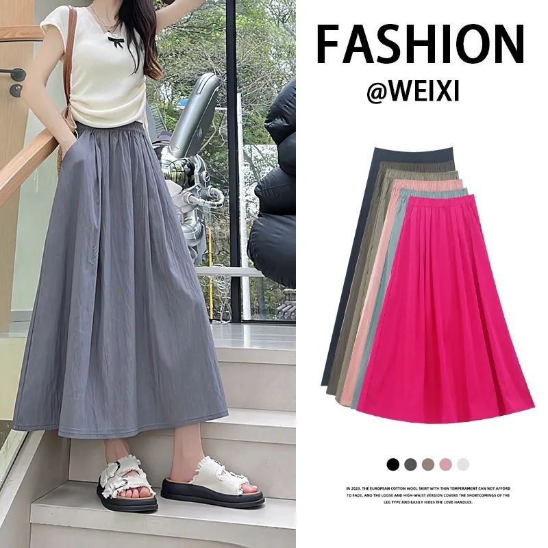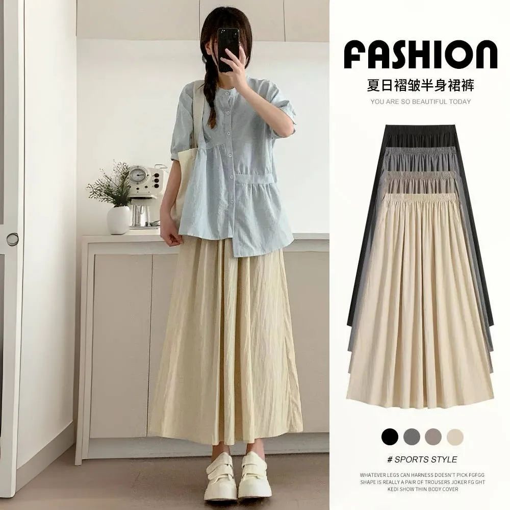 MY17754# 山本裙薄款褶皱高腰a字伞裙显瘦小个子半身中长摆裙女裝貨源服裝批發