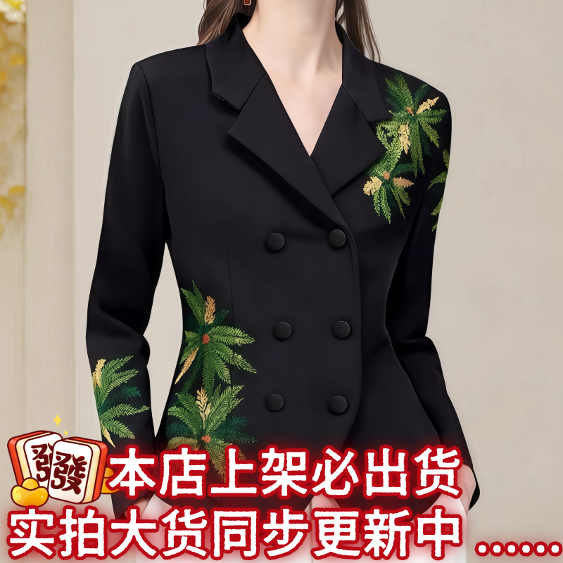 MY17755# 设计感刺绣知性OL西装小外套新款气质职业黑色修身西服女裝貨源服裝批發