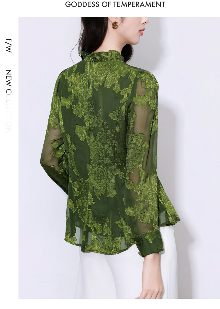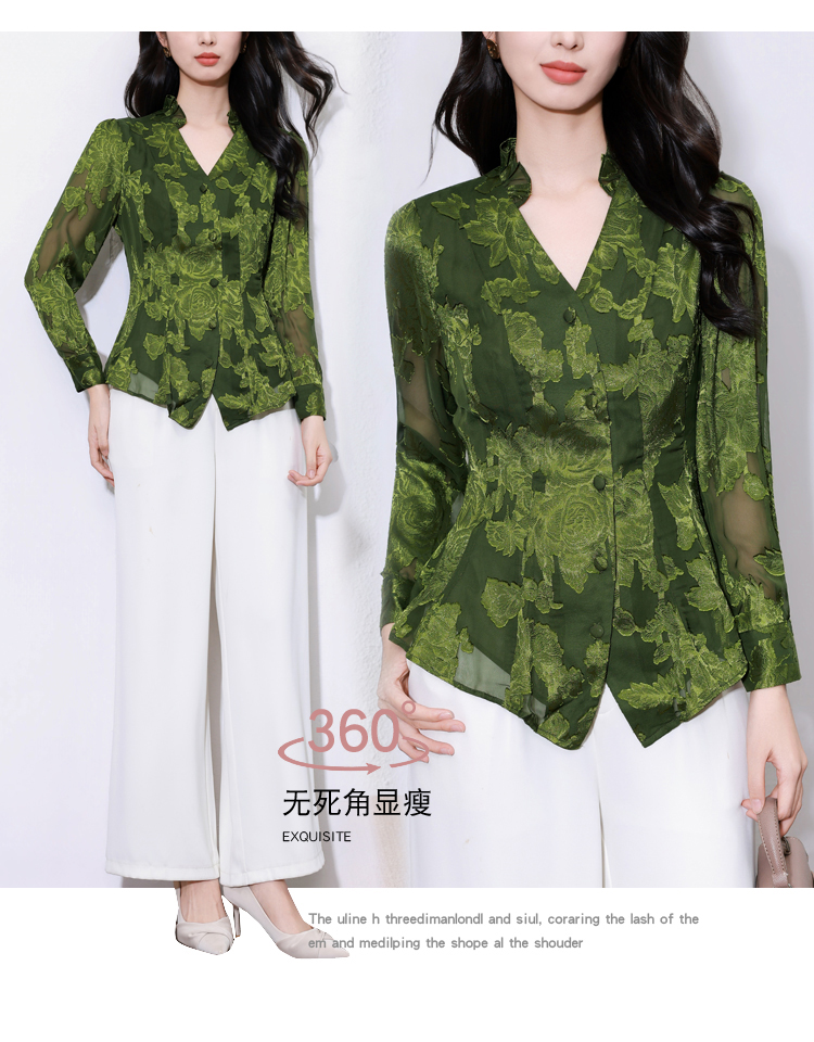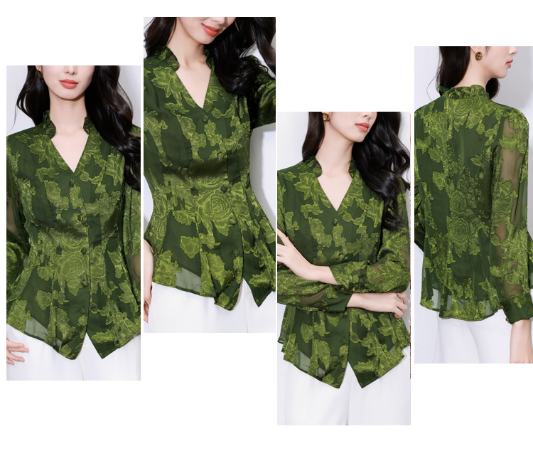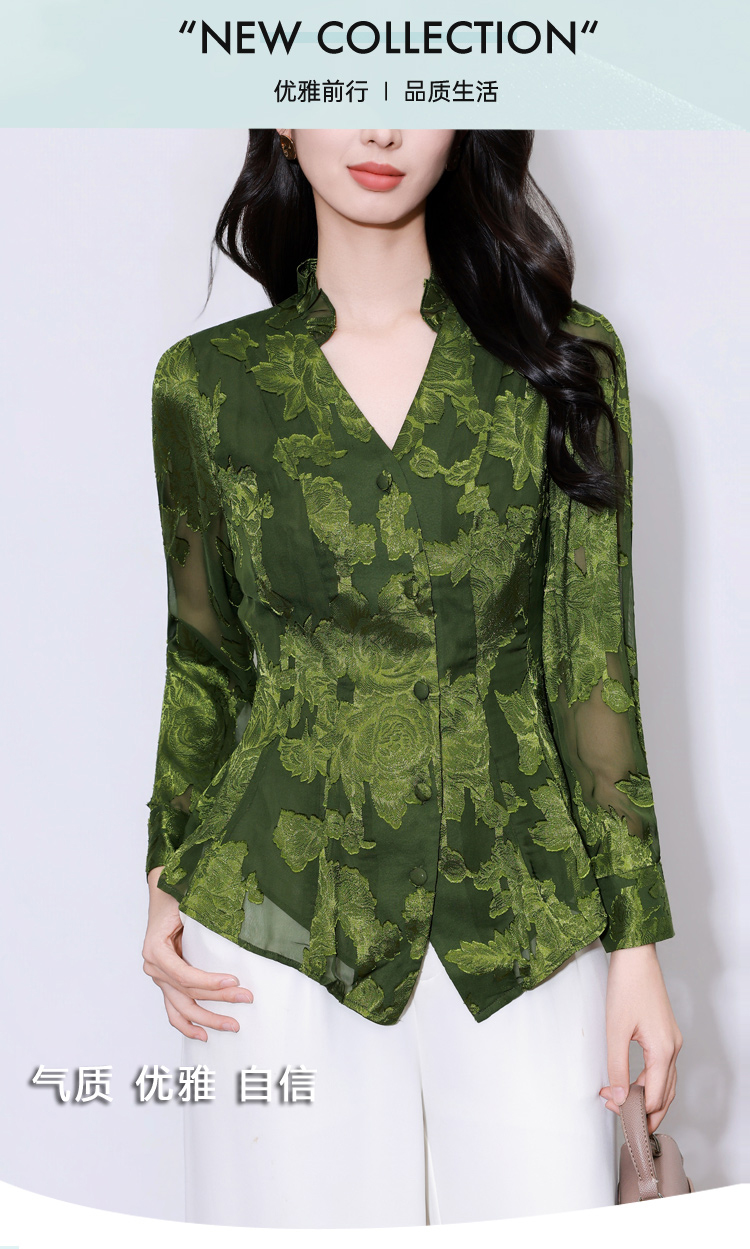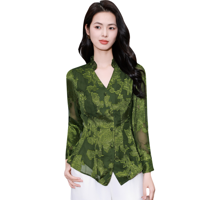 MY17757# 女长袖上衣气质v领显瘦衬衫设计感剪花修身衬衣气质女裝貨源服裝批發