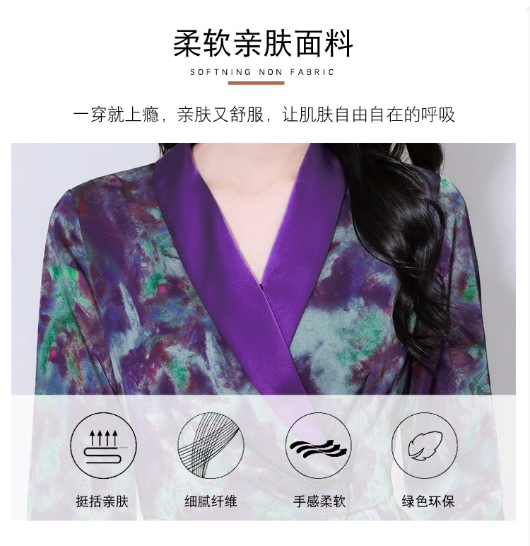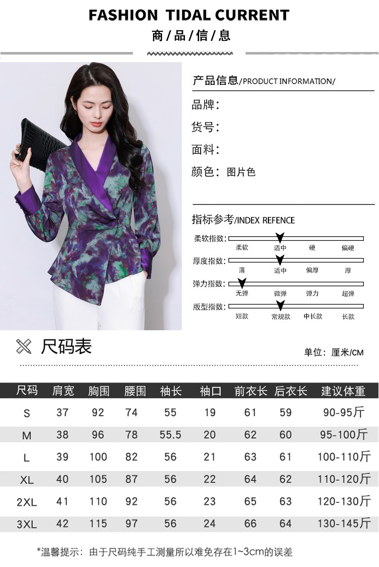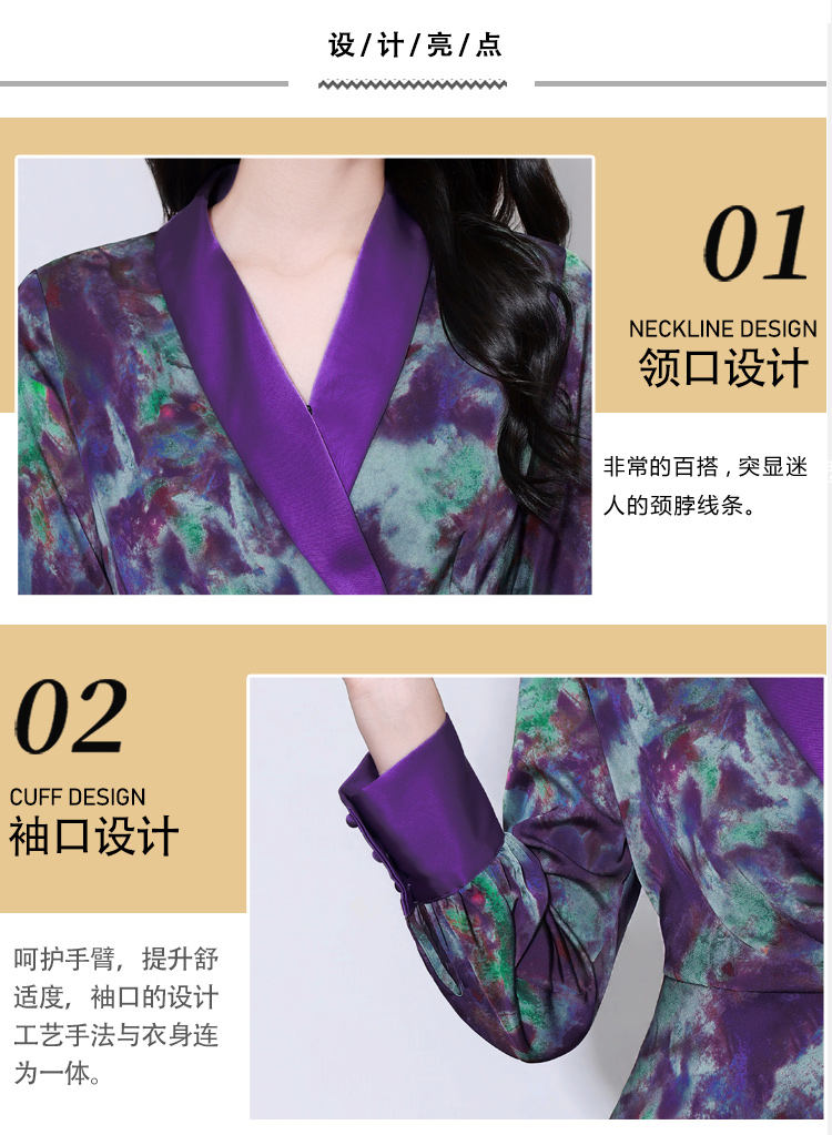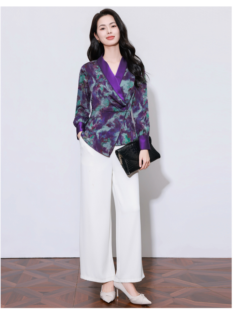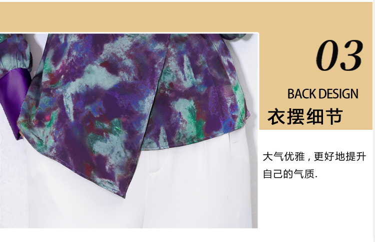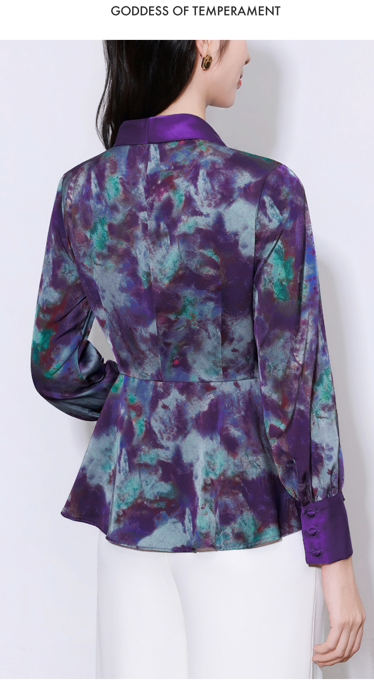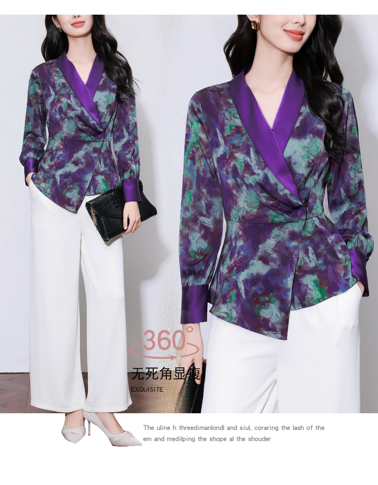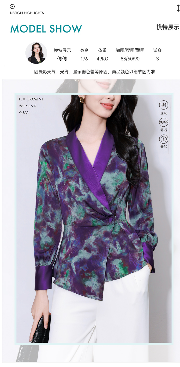 MY17758# 可定制轻奢缎面衬衫法式扎染印花西装领气质收腰女裝貨源服裝批發
