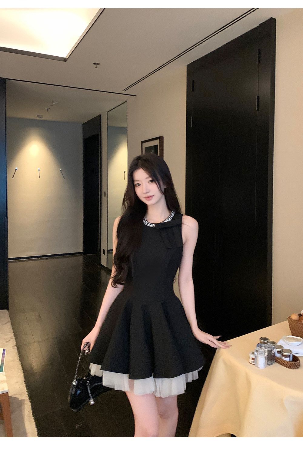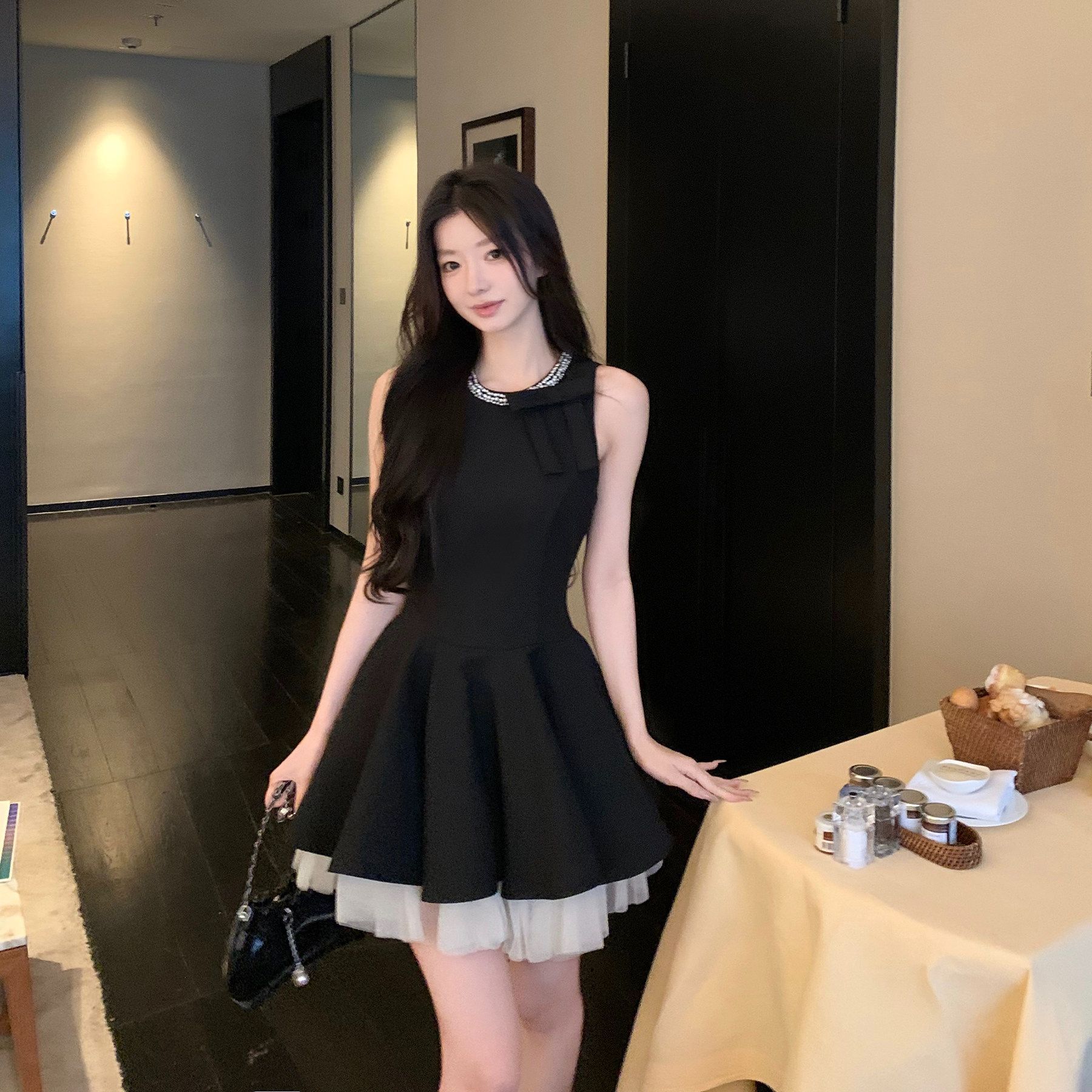 RY70049# 千金风小黑裙连衣裙女夏季高级感生日party小礼裙显瘦无袖背心裙