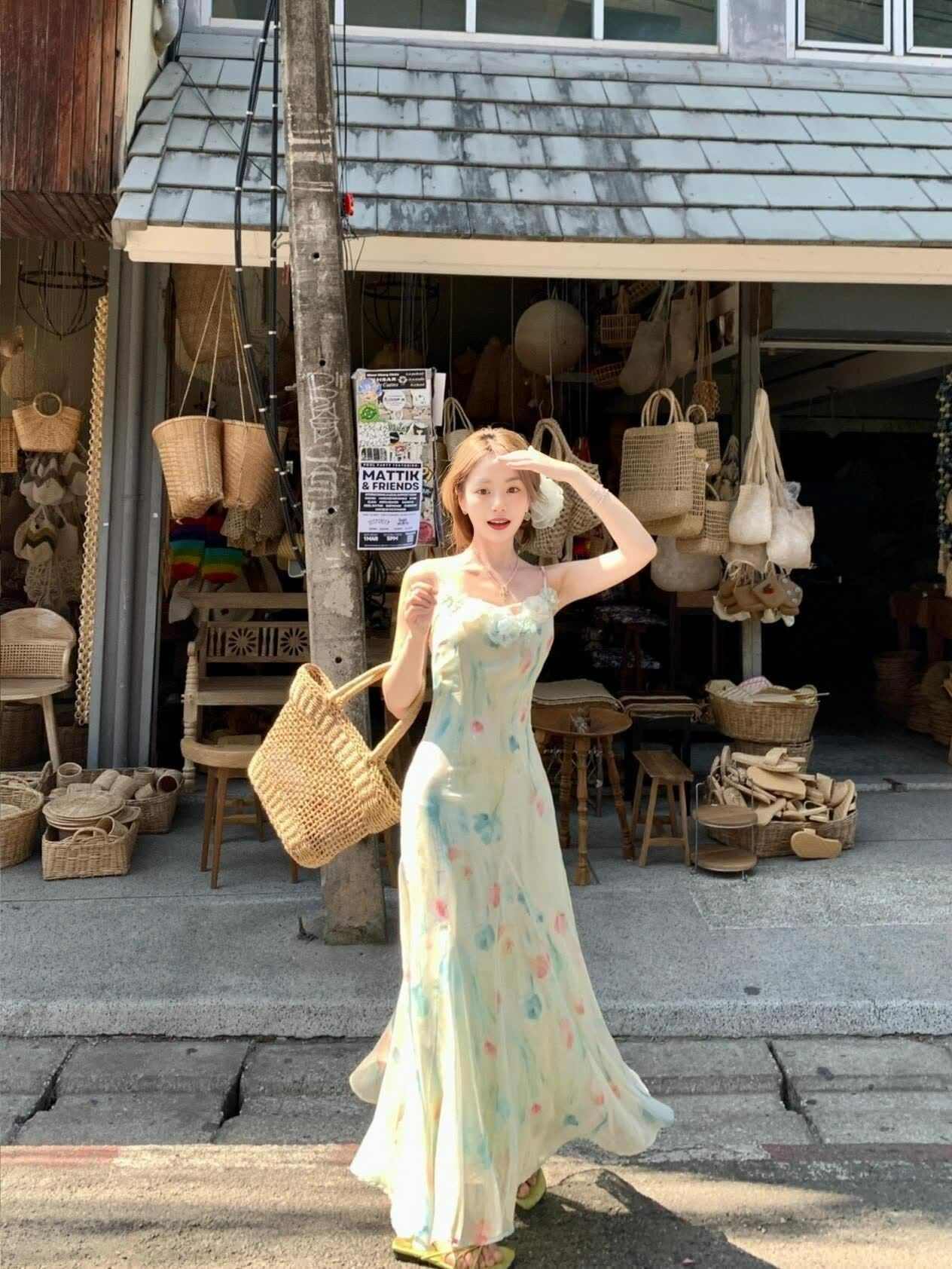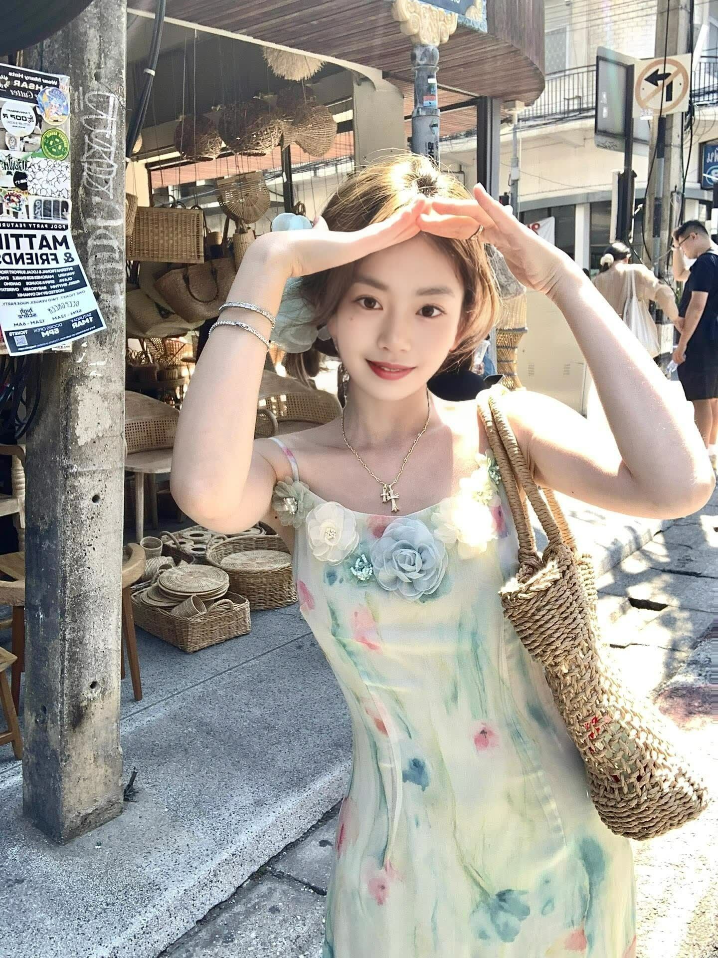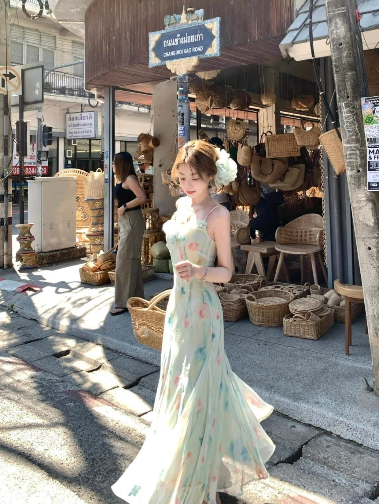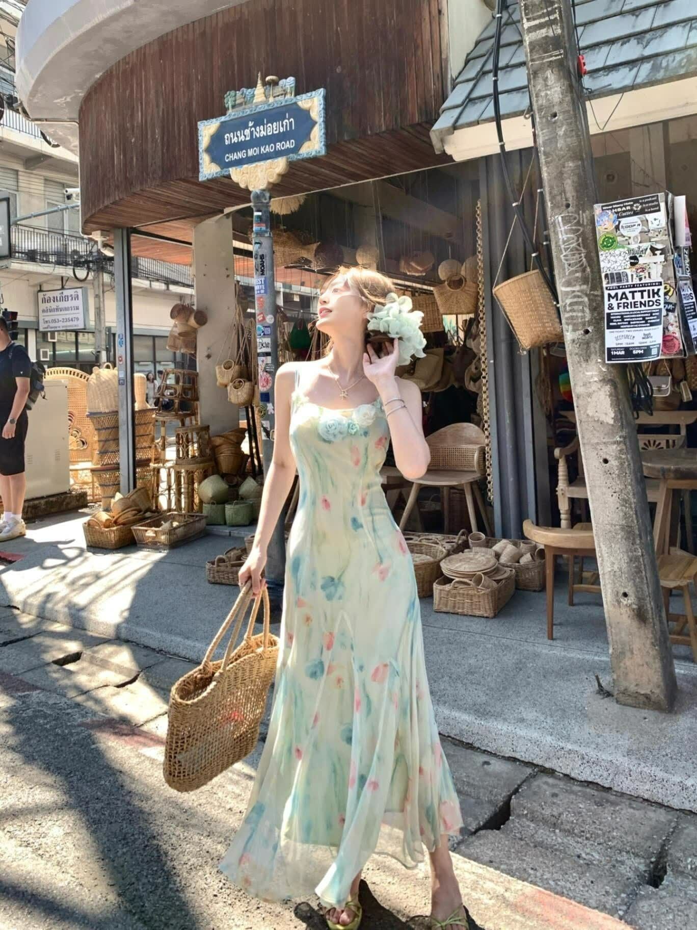 RY70051# 度假碎花吊带连衣裙女夏多巴胺大理洱海海边步步生莲鱼尾