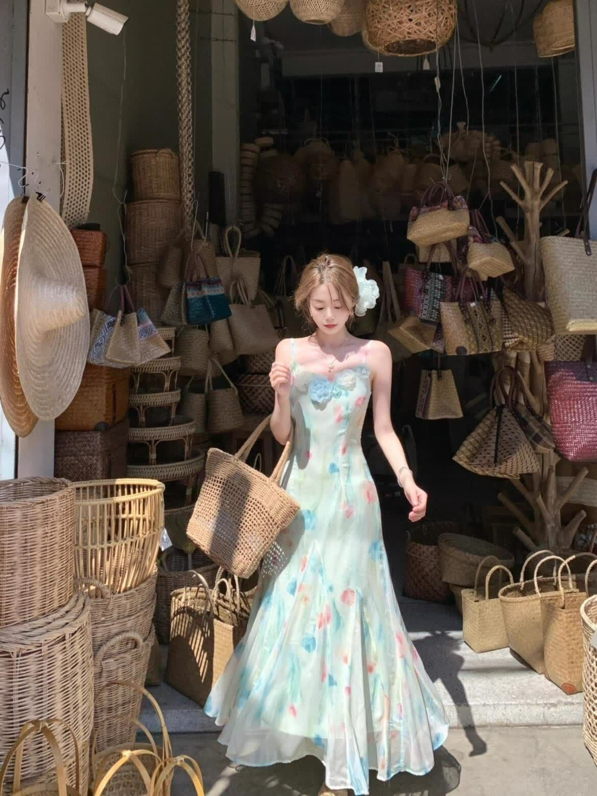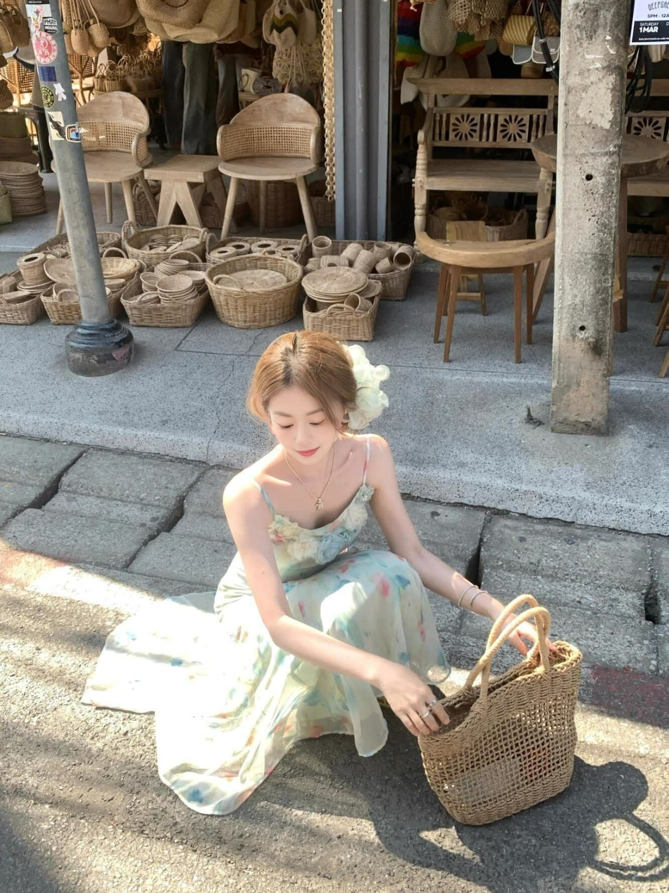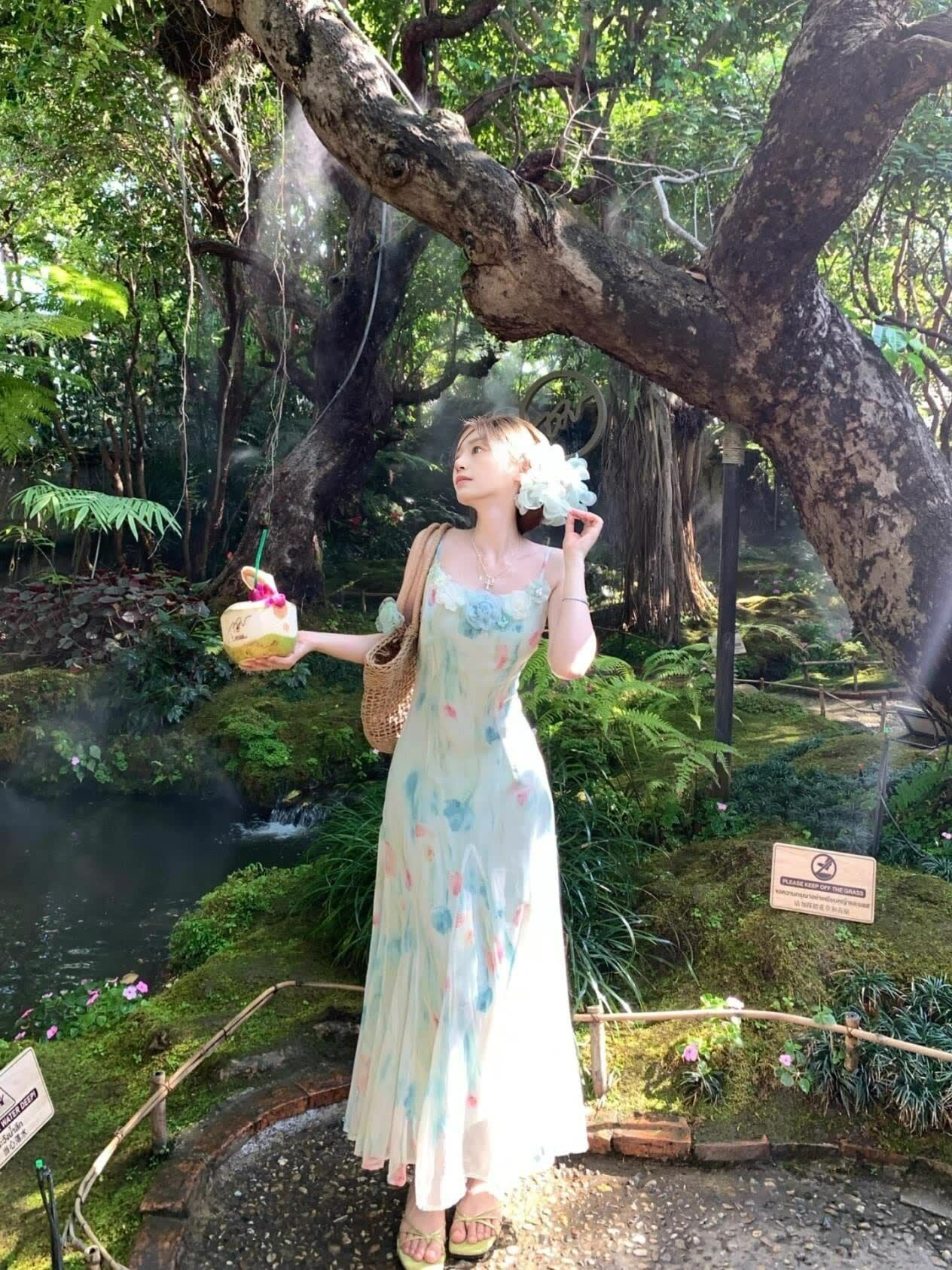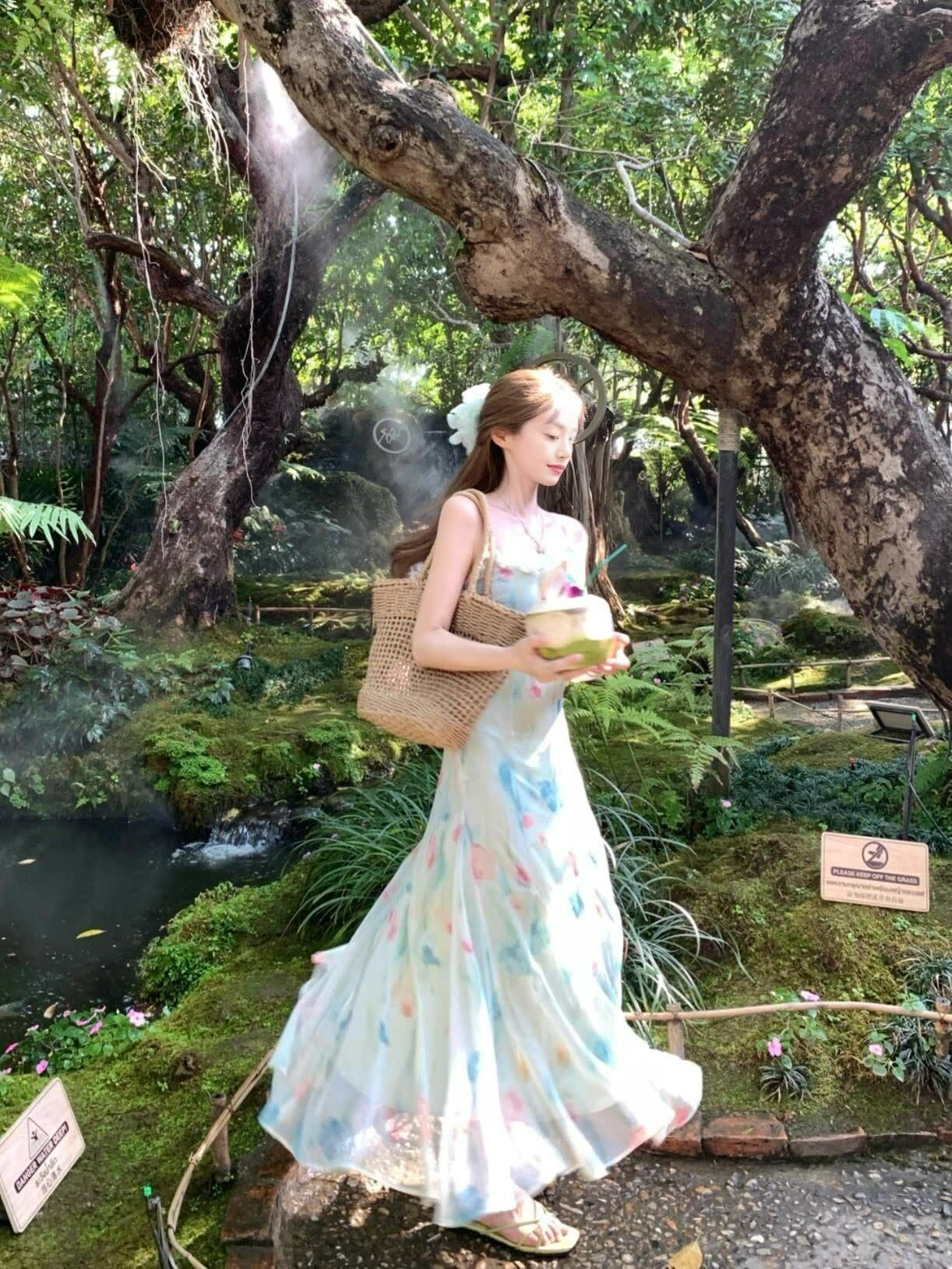 RY70051# 度假碎花吊带连衣裙女夏多巴胺大理洱海海边步步生莲鱼尾