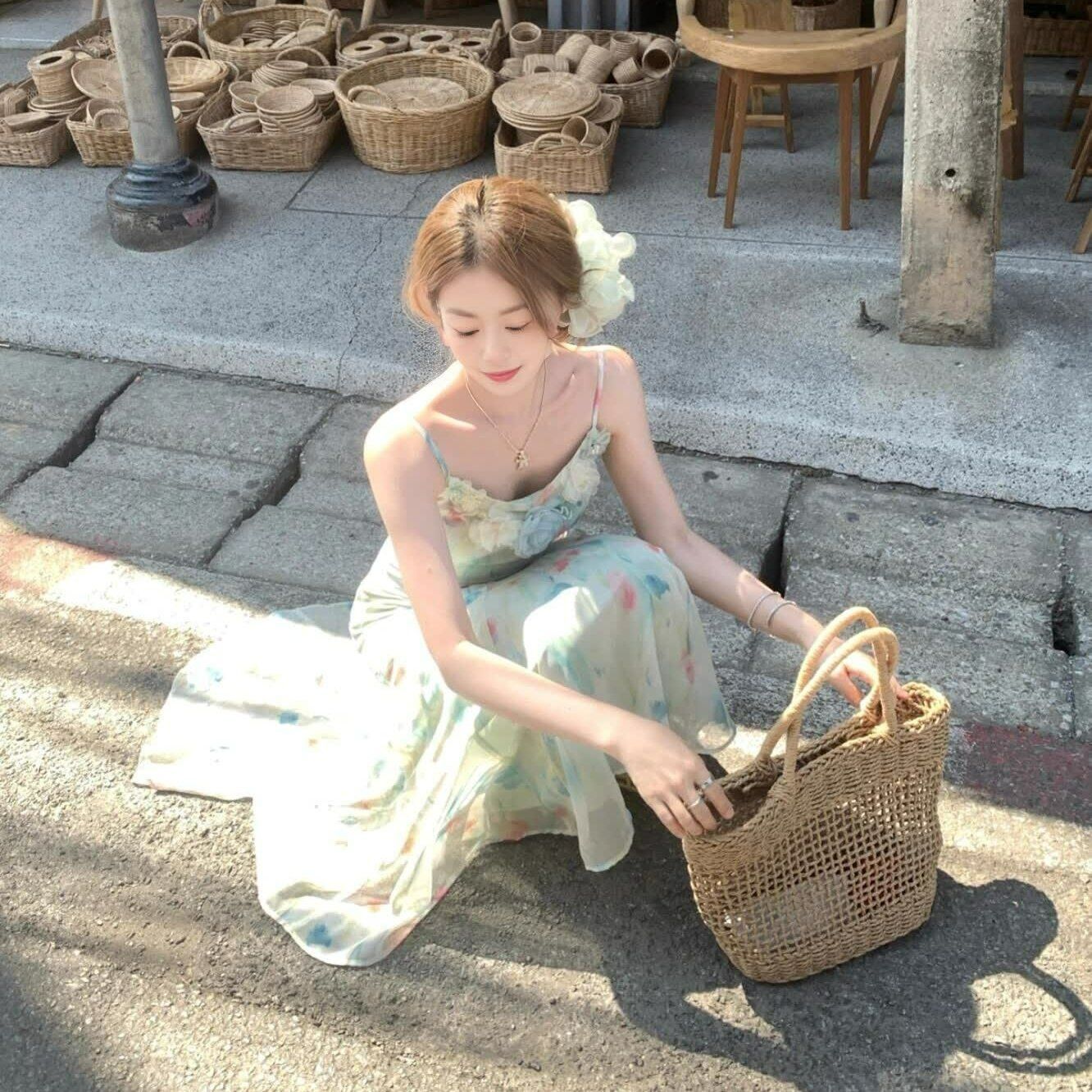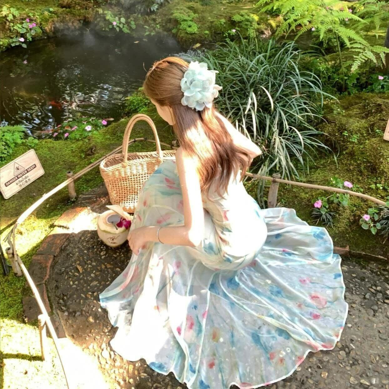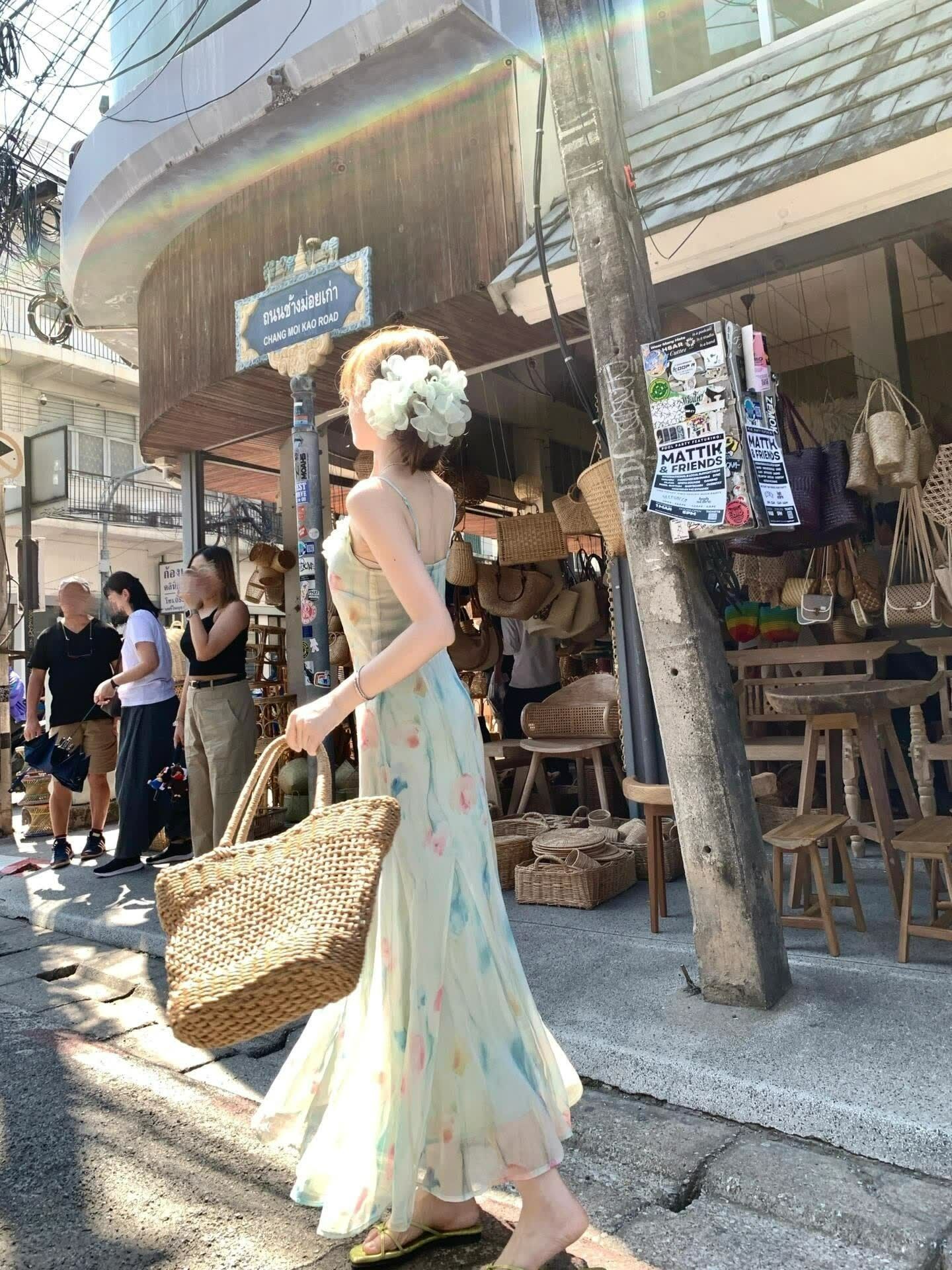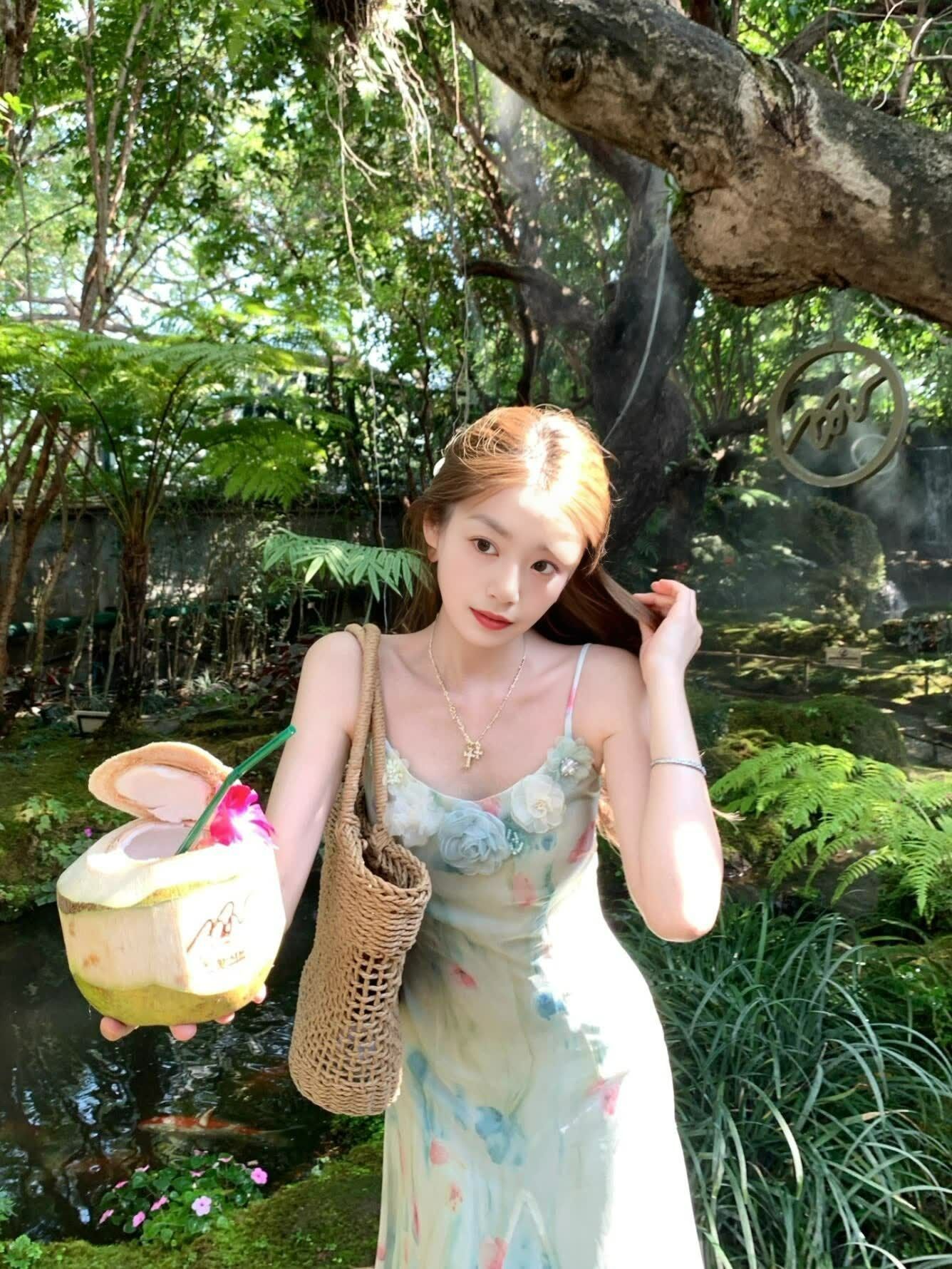 RY70051# 度假碎花吊带连衣裙女夏多巴胺大理洱海海边步步生莲鱼尾