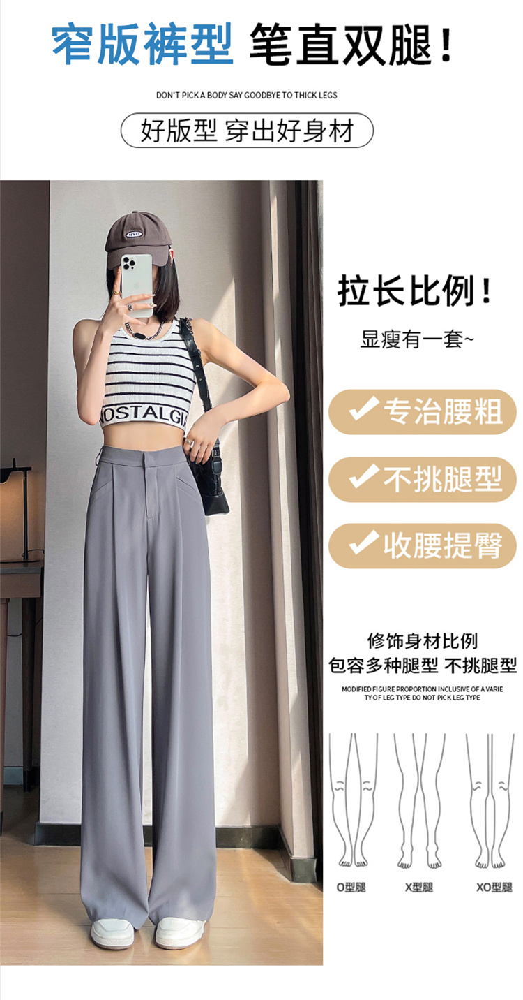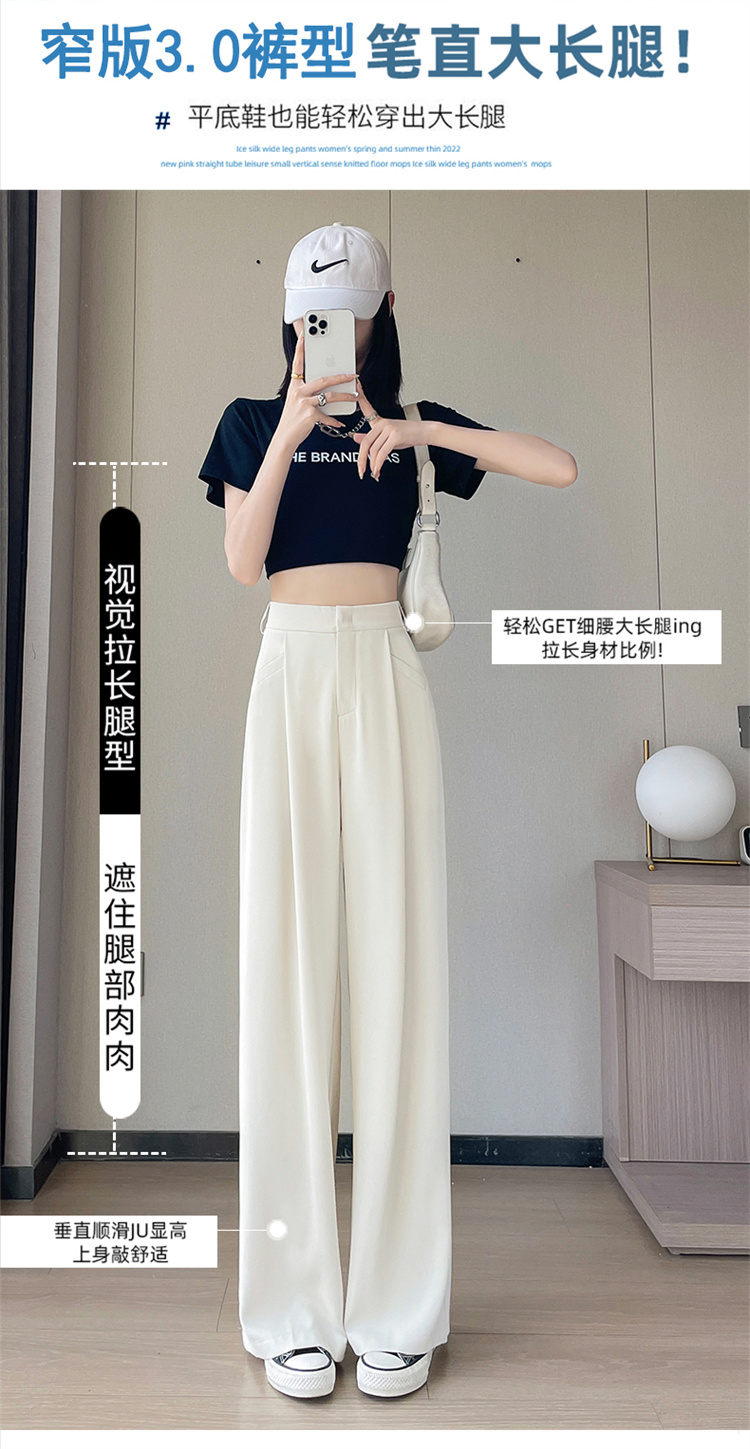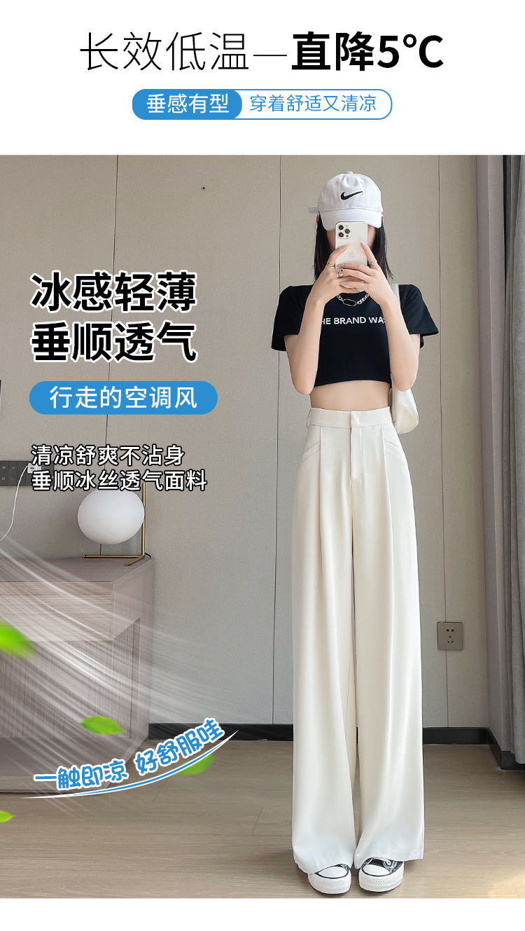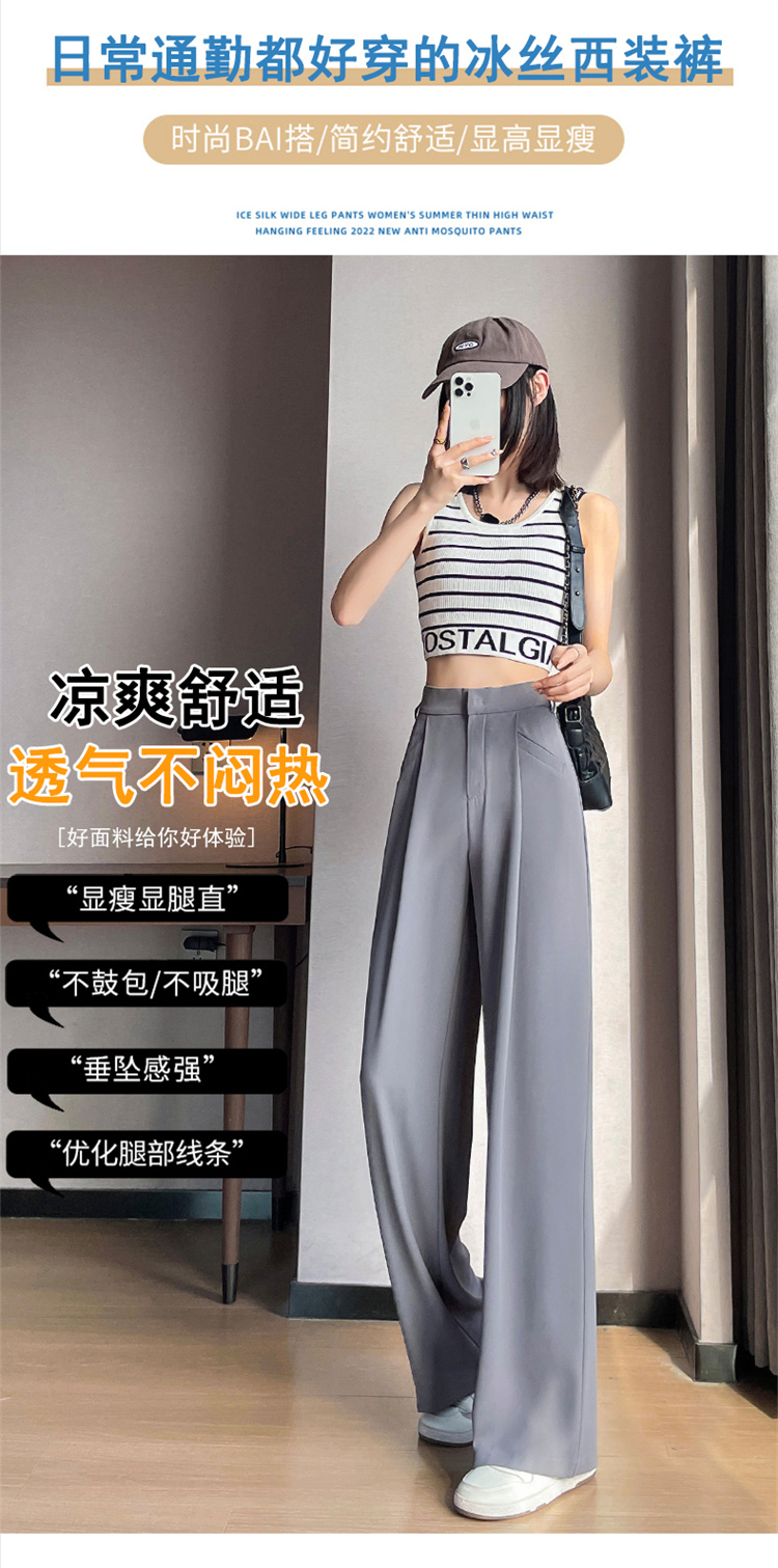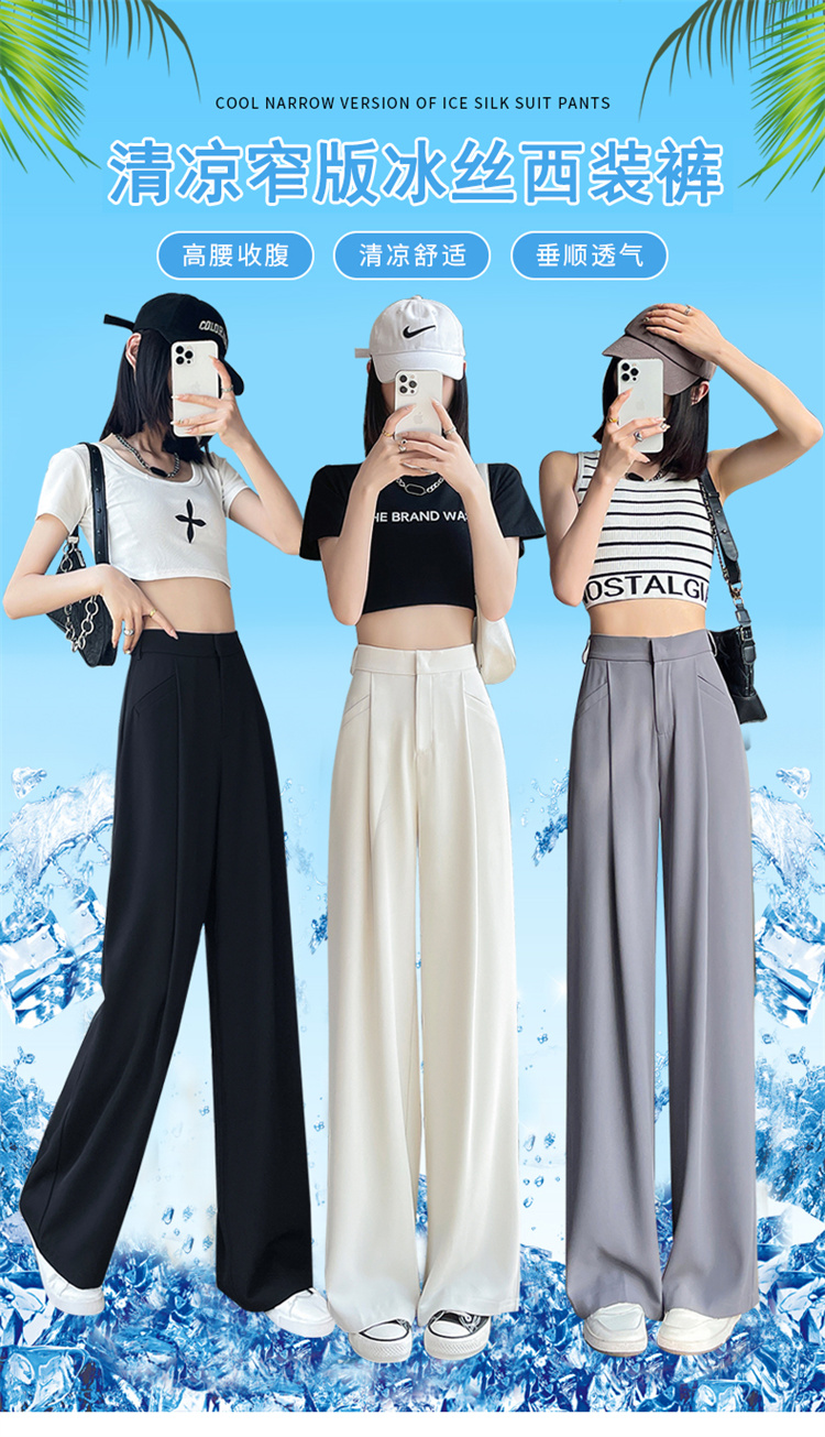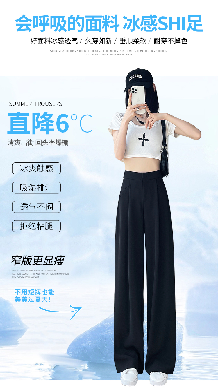 RY70062# 实拍2026夏季新款冰丝西装裤高腰窄版阔腿裤直筒薄款休闲拖地裤女