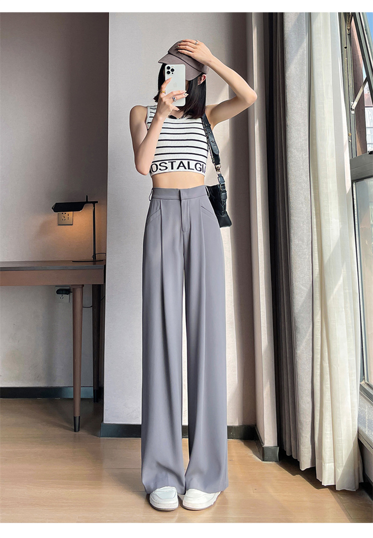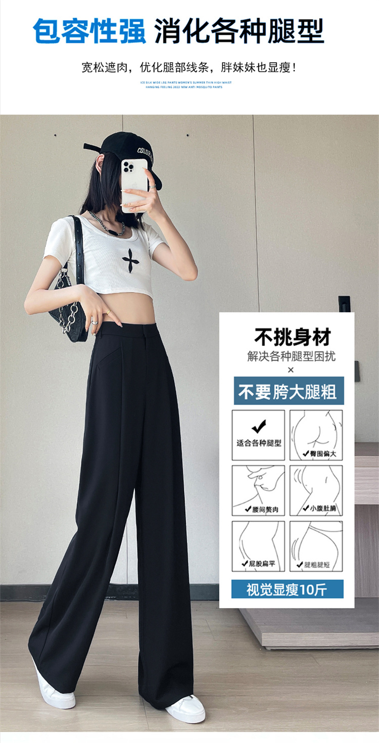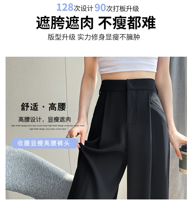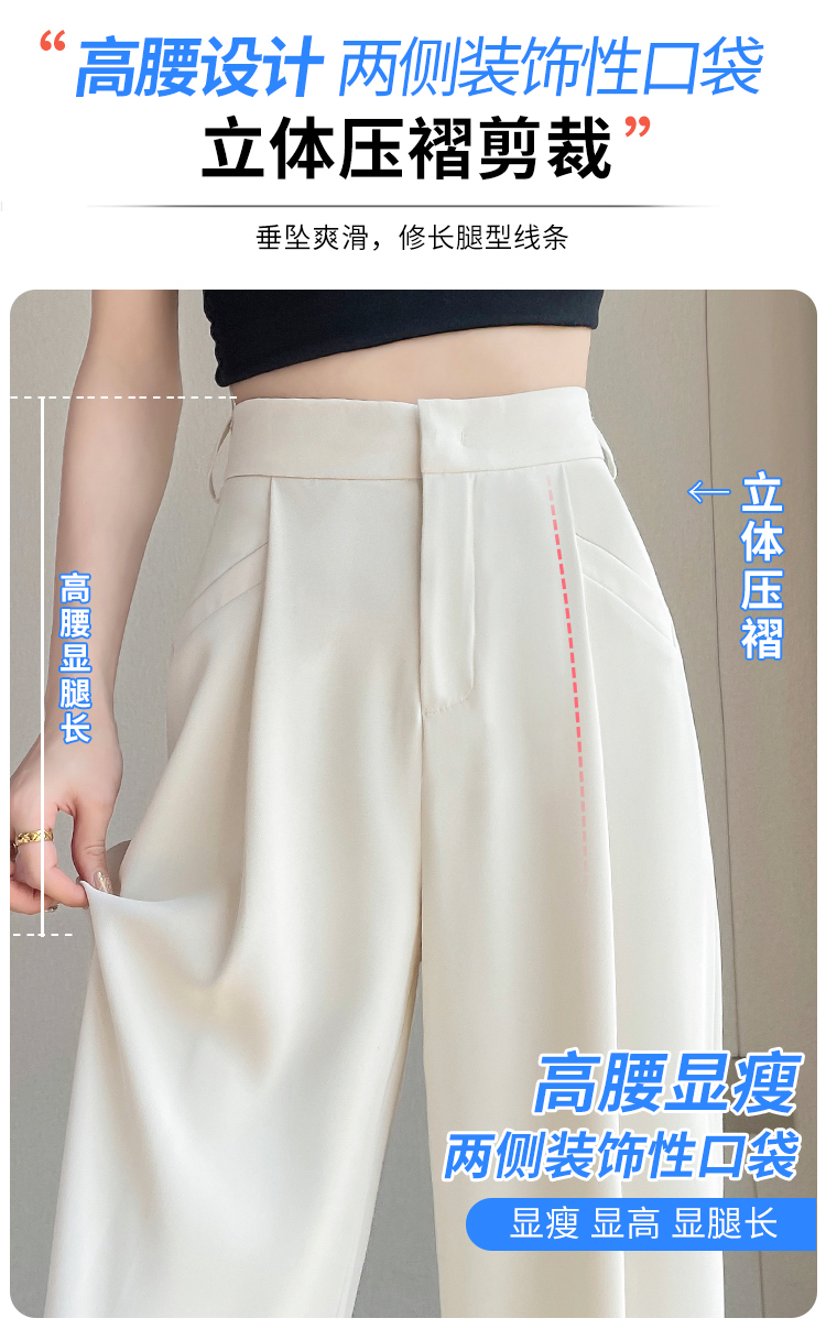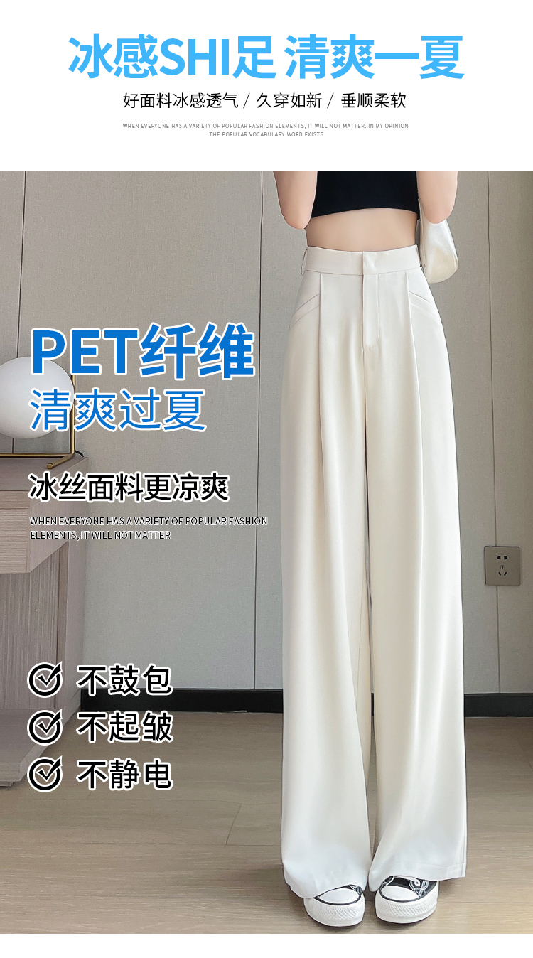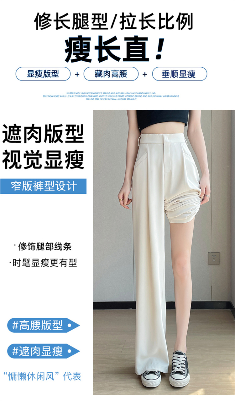 RY70062# 实拍2026夏季新款冰丝西装裤高腰窄版阔腿裤直筒薄款休闲拖地裤女